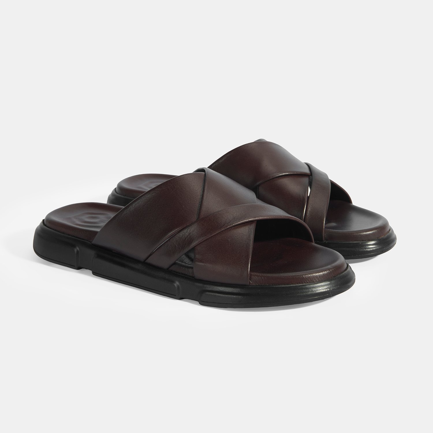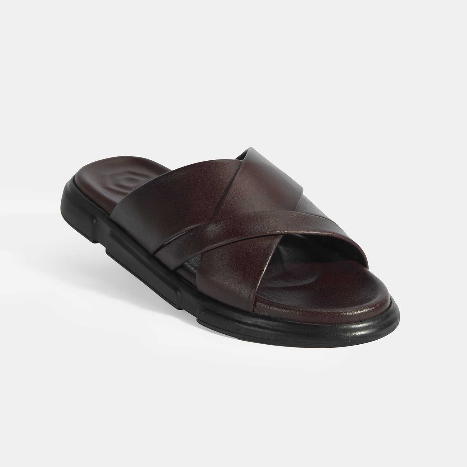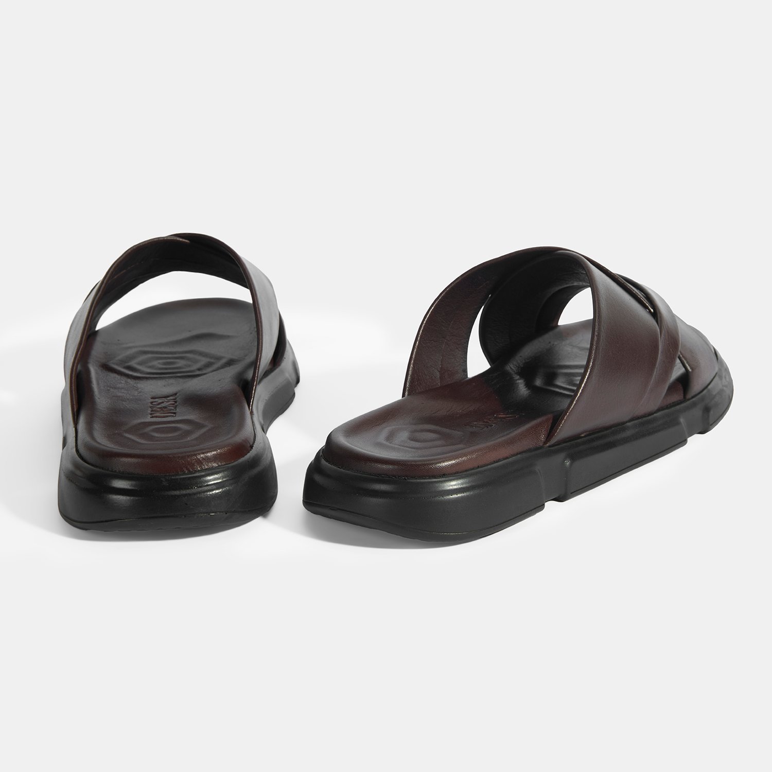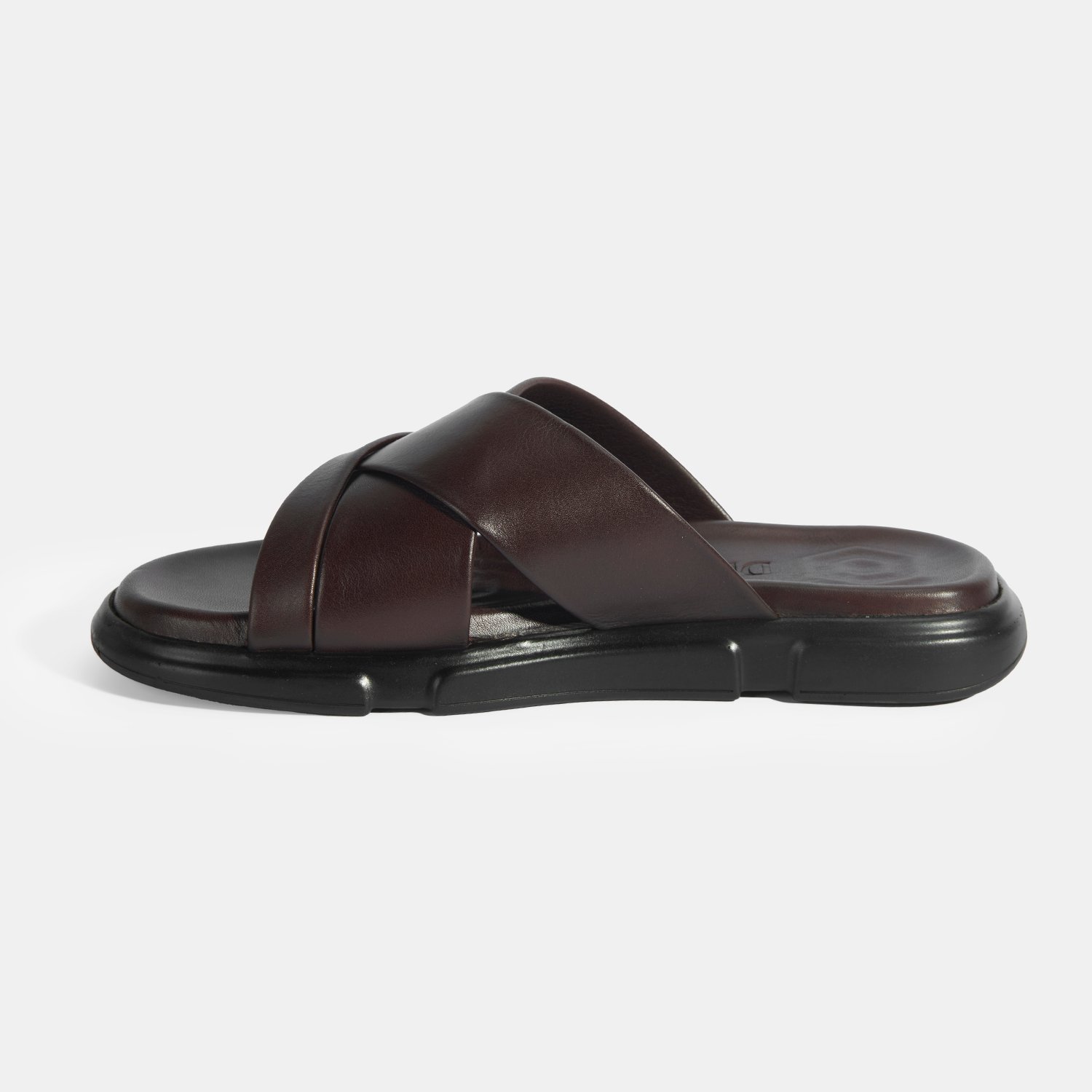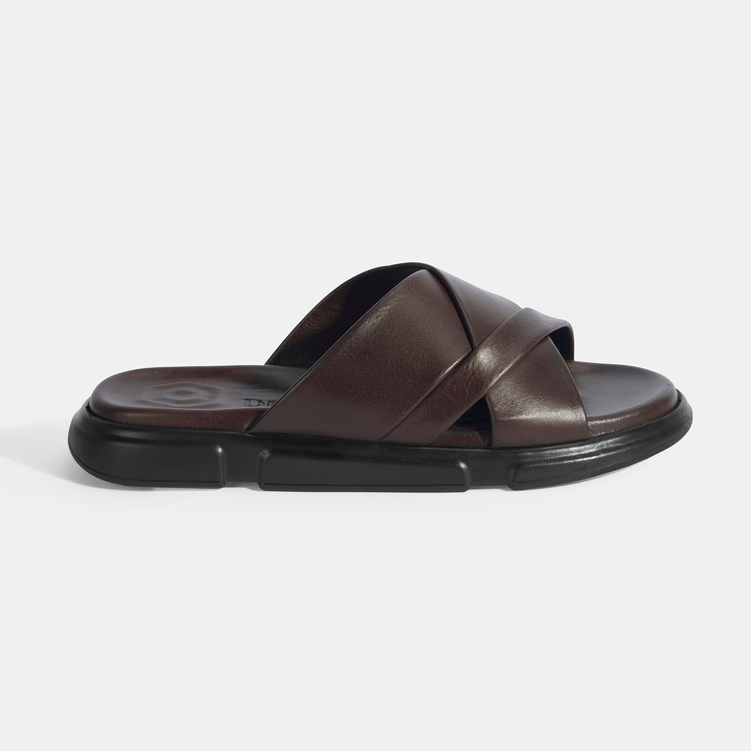 %100 deri, %100 deri astar ve mostra poli tabanlı erkek terlik.