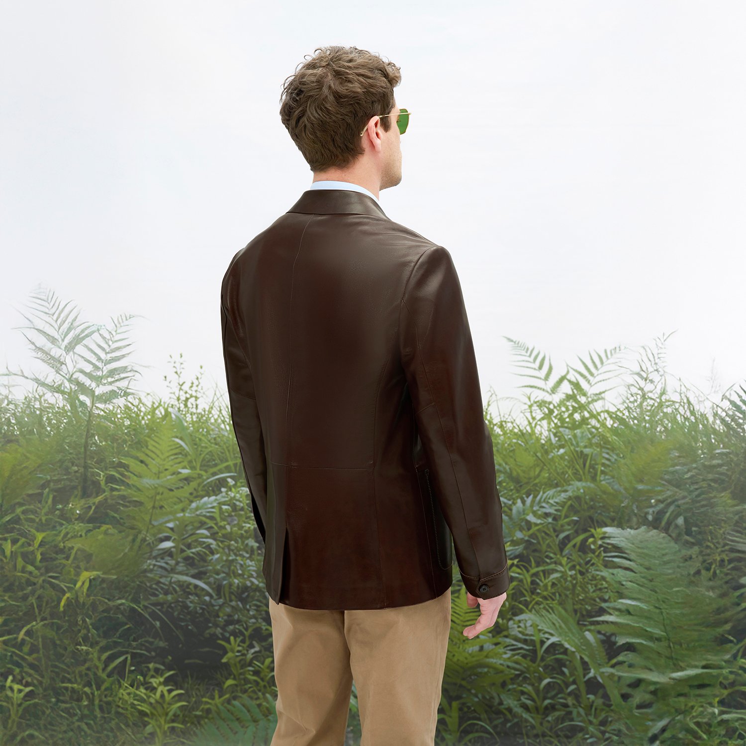 Erkek Kahve Gömlek Yaka Deri Blazer Ceket