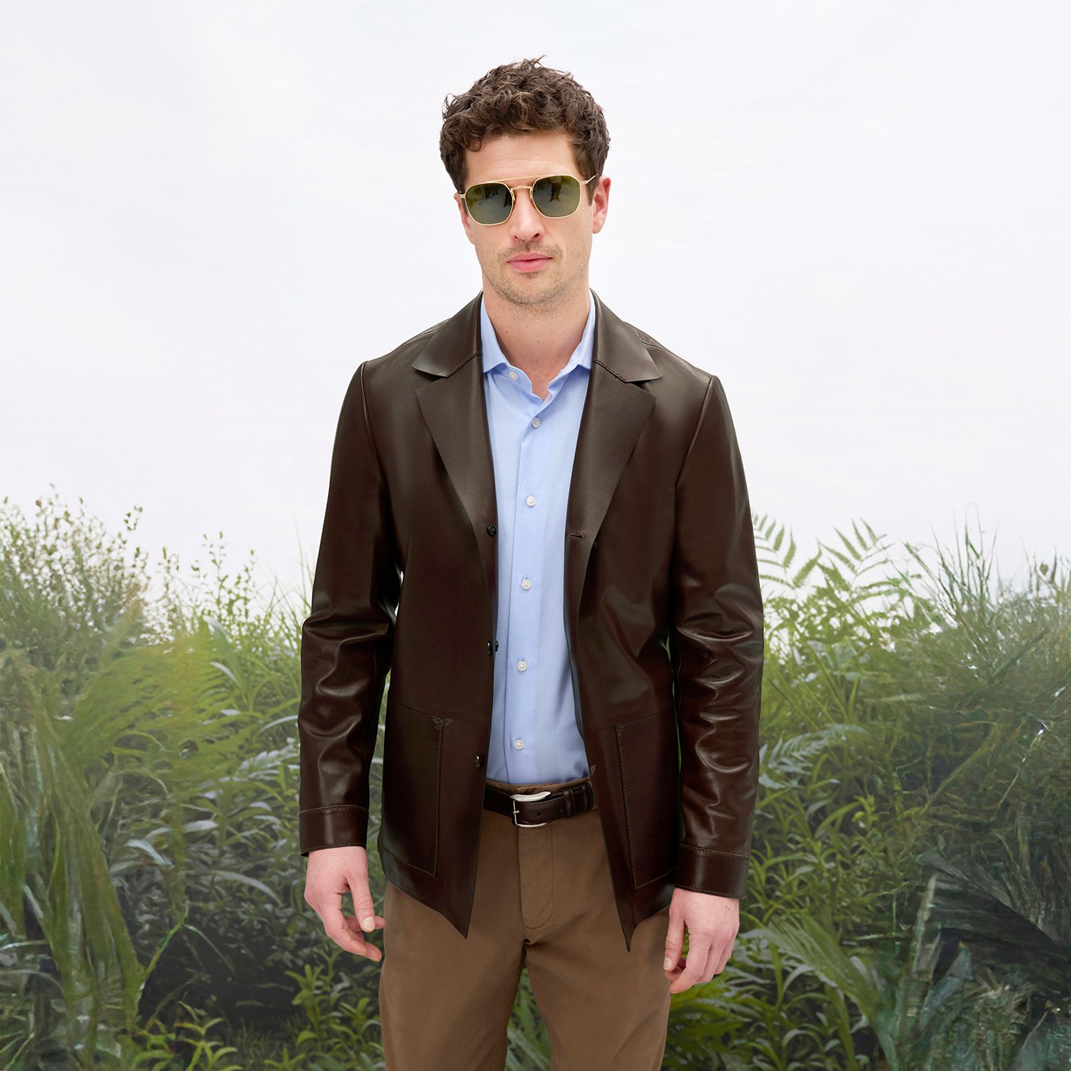 Auburn Siyah Erkek Deri Blazer Ceket Erkek Kahve Gömlek Yaka Deri Blazer Ceket Auburn Kahverengi Erkek Deri Blazer Ceket