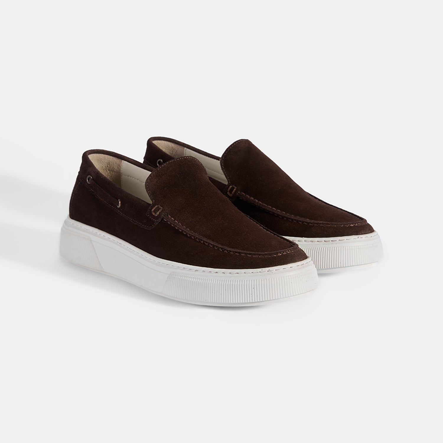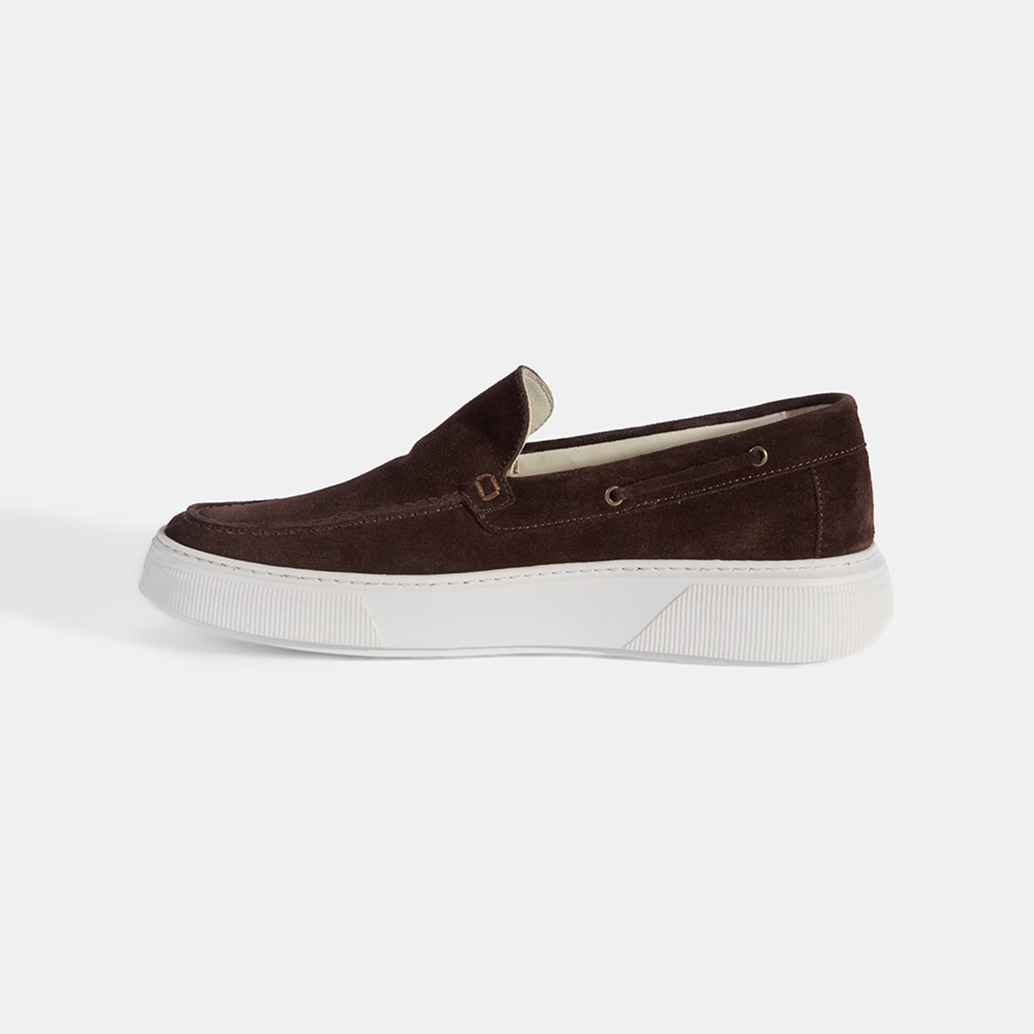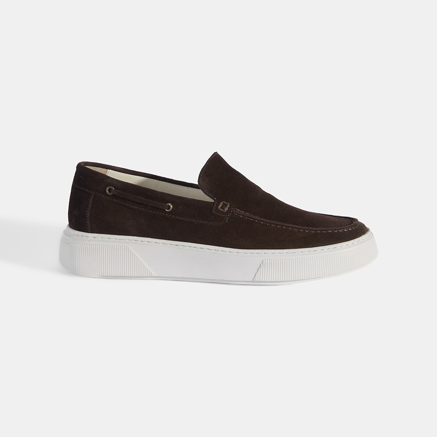 Erkek Kahve Kalın Beyaz Tabanlı Süet Loafer