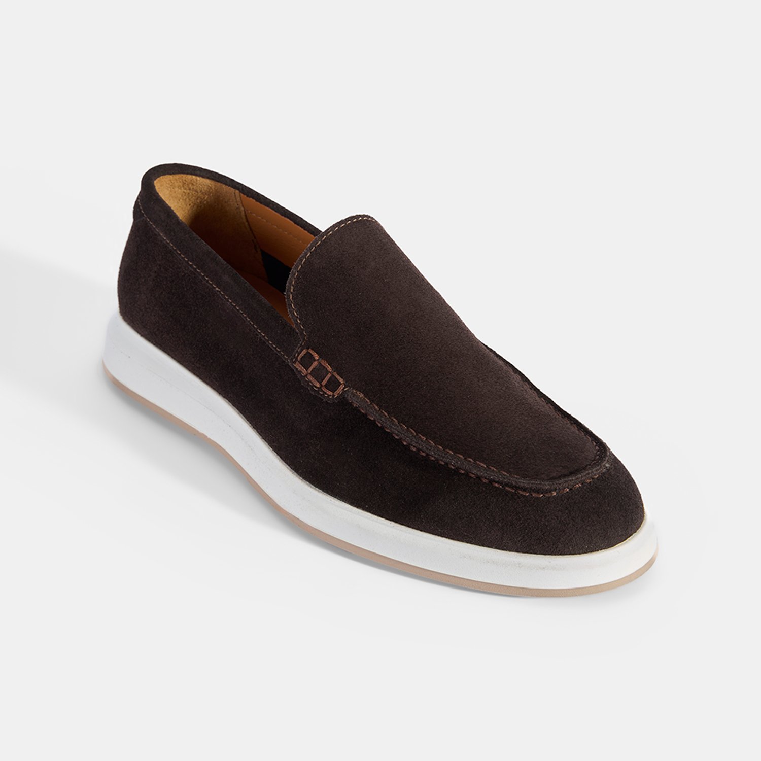 Erkek Kahve Klasik Beyaz Tabanlı Süet Loafer