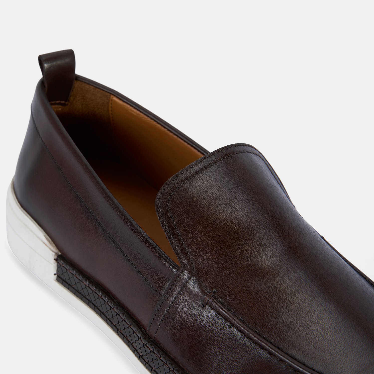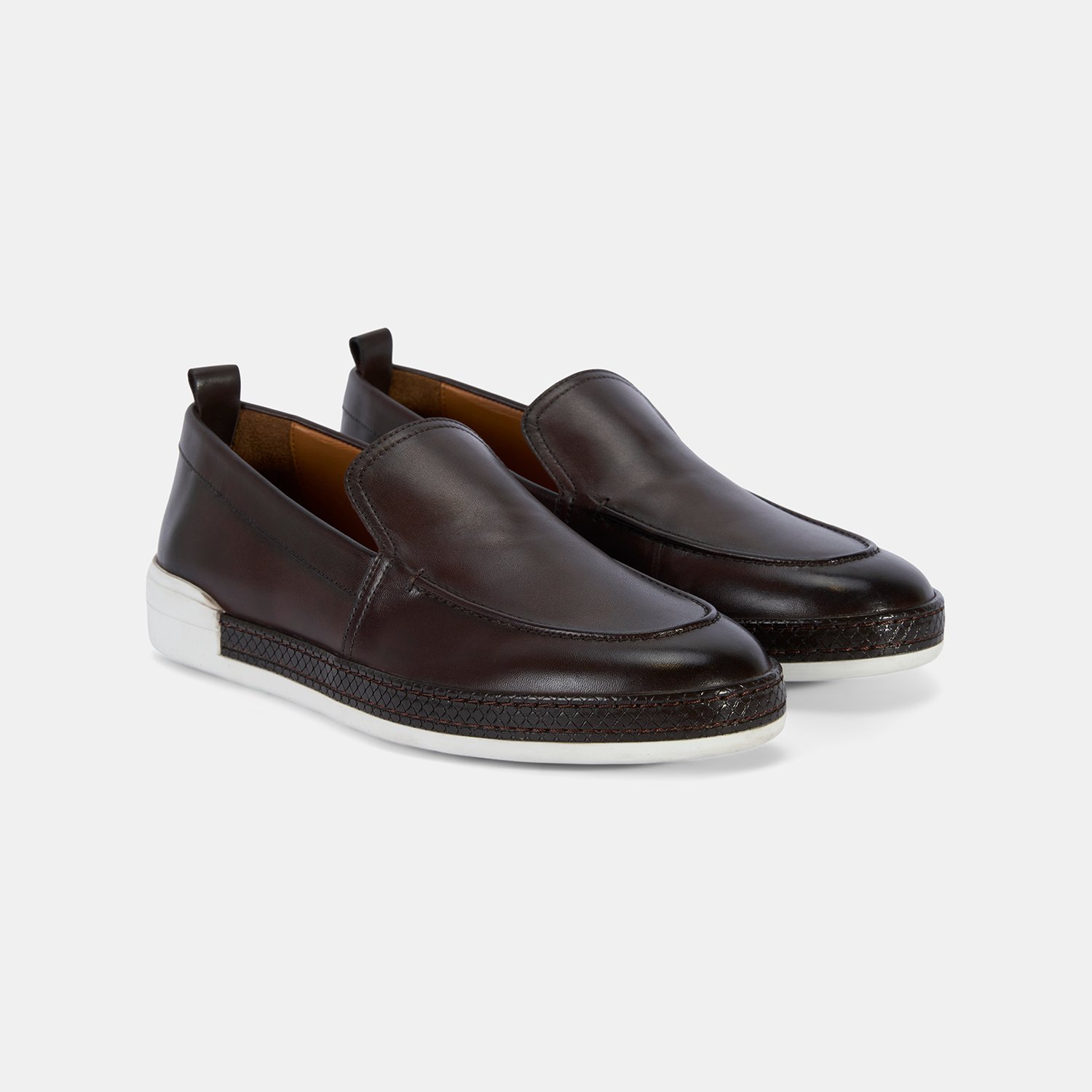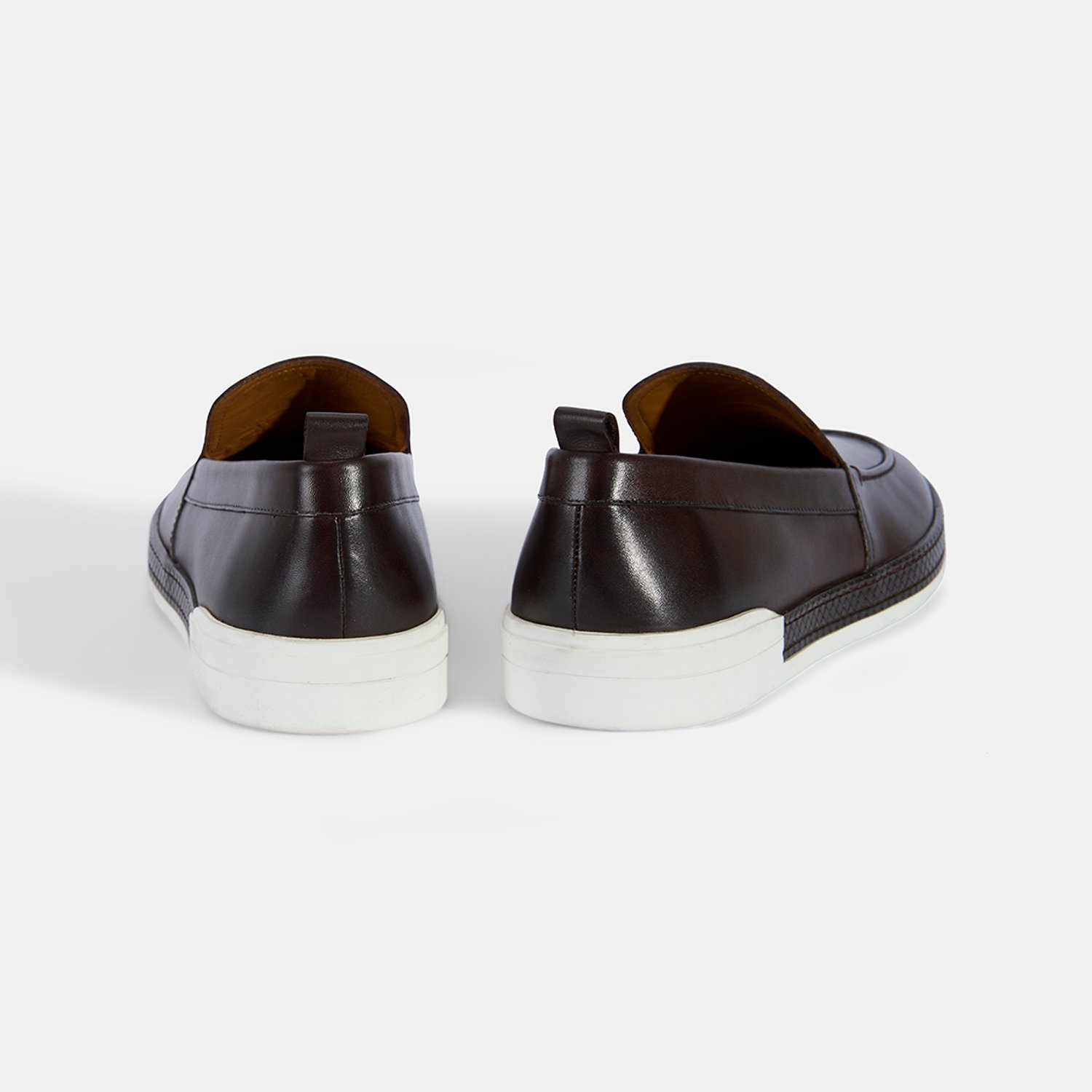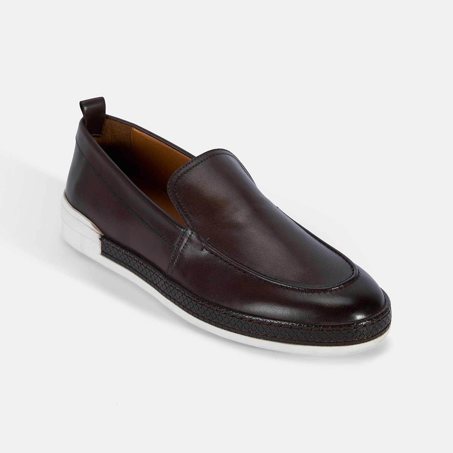 Erkek Kahve Spor Beyaz Tabanlı Deri Loafer