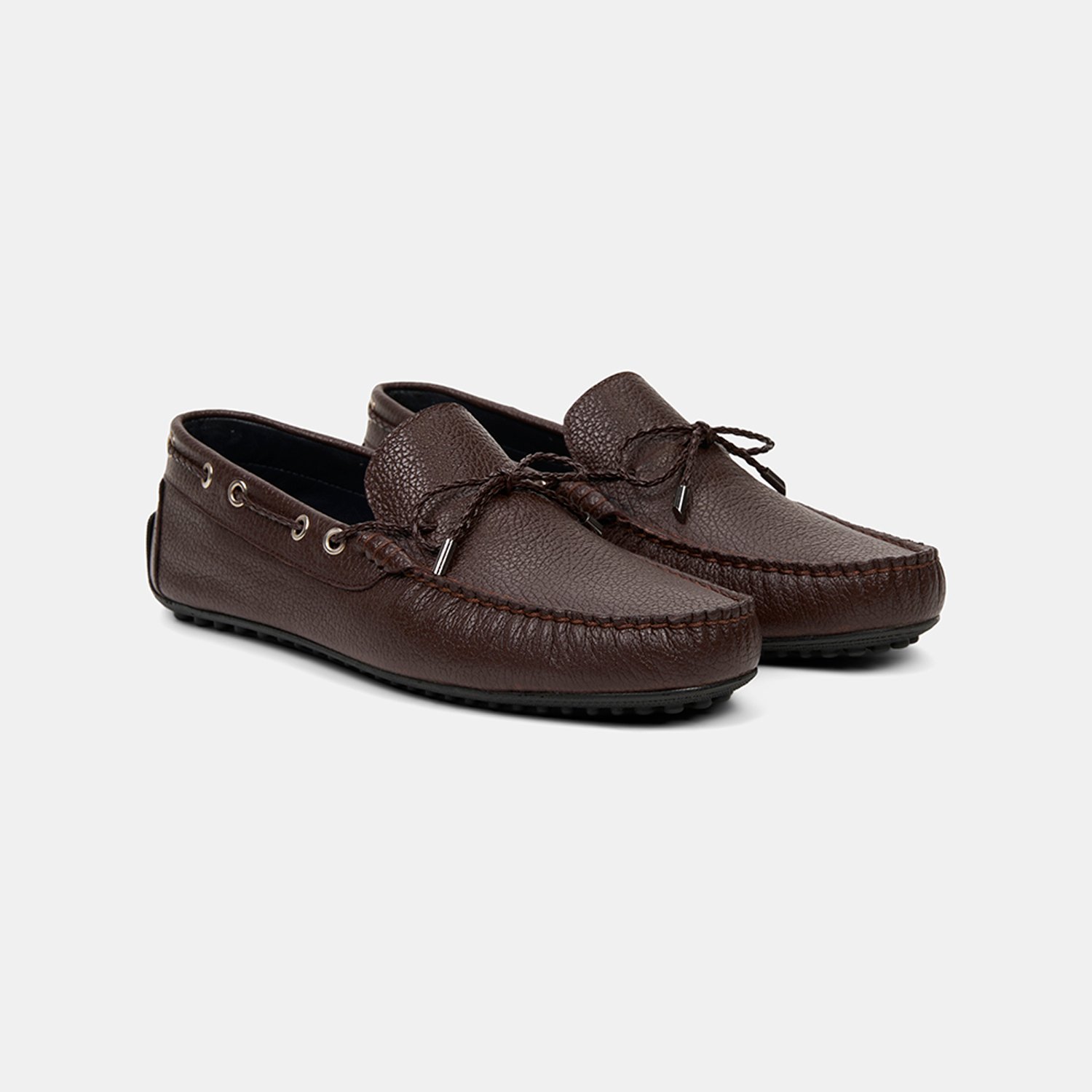 Erkek Kahve Zımba Detaylı İpli Deri Loafer