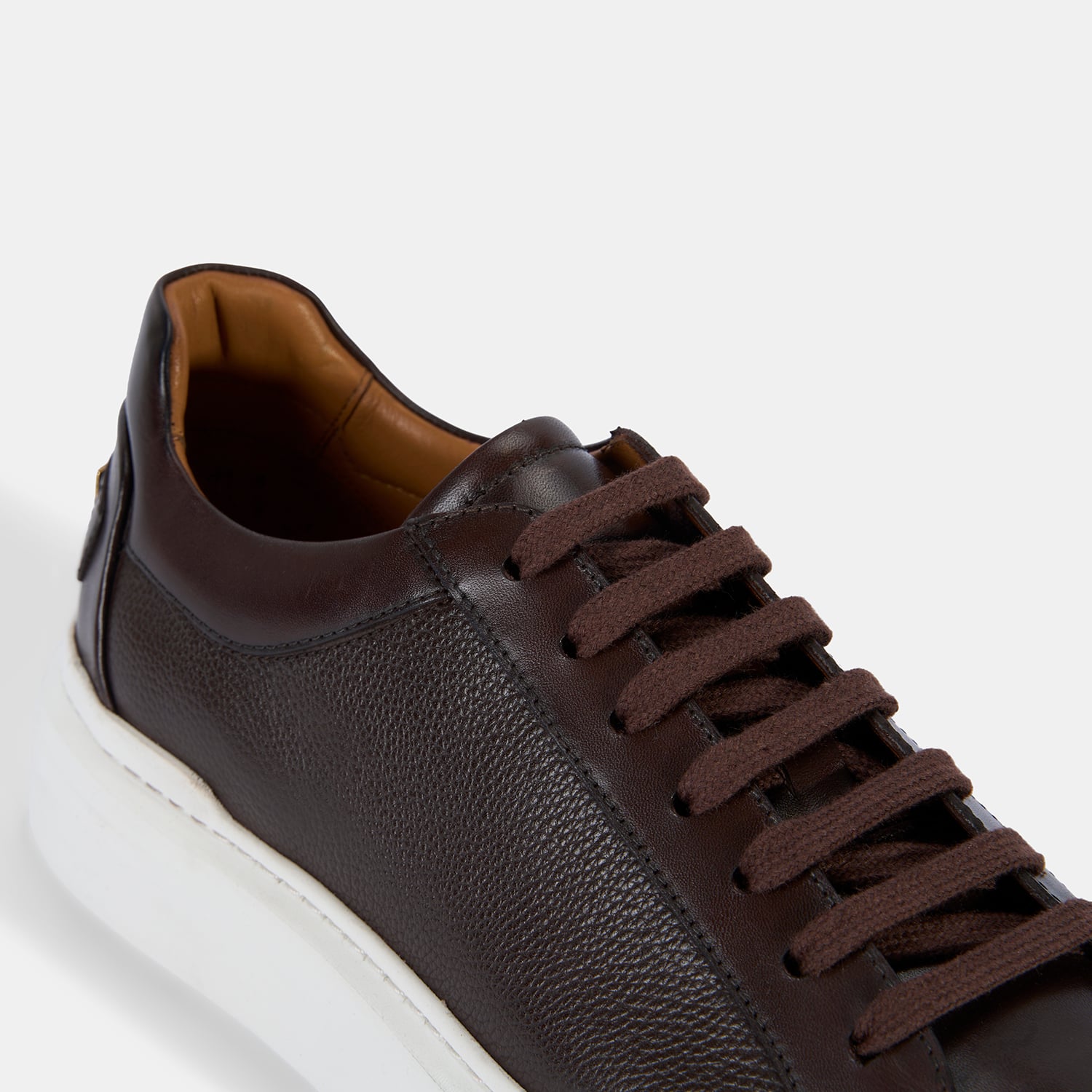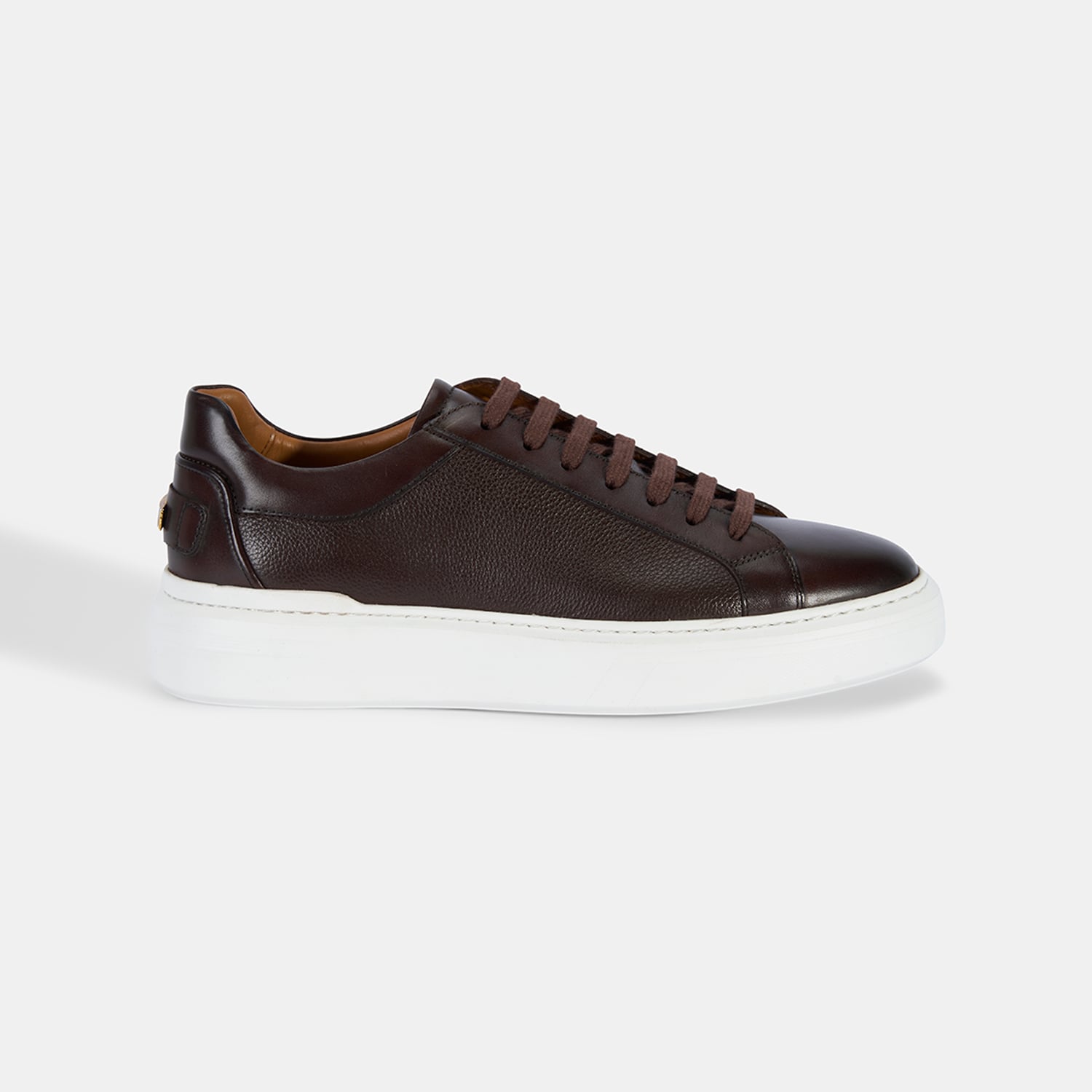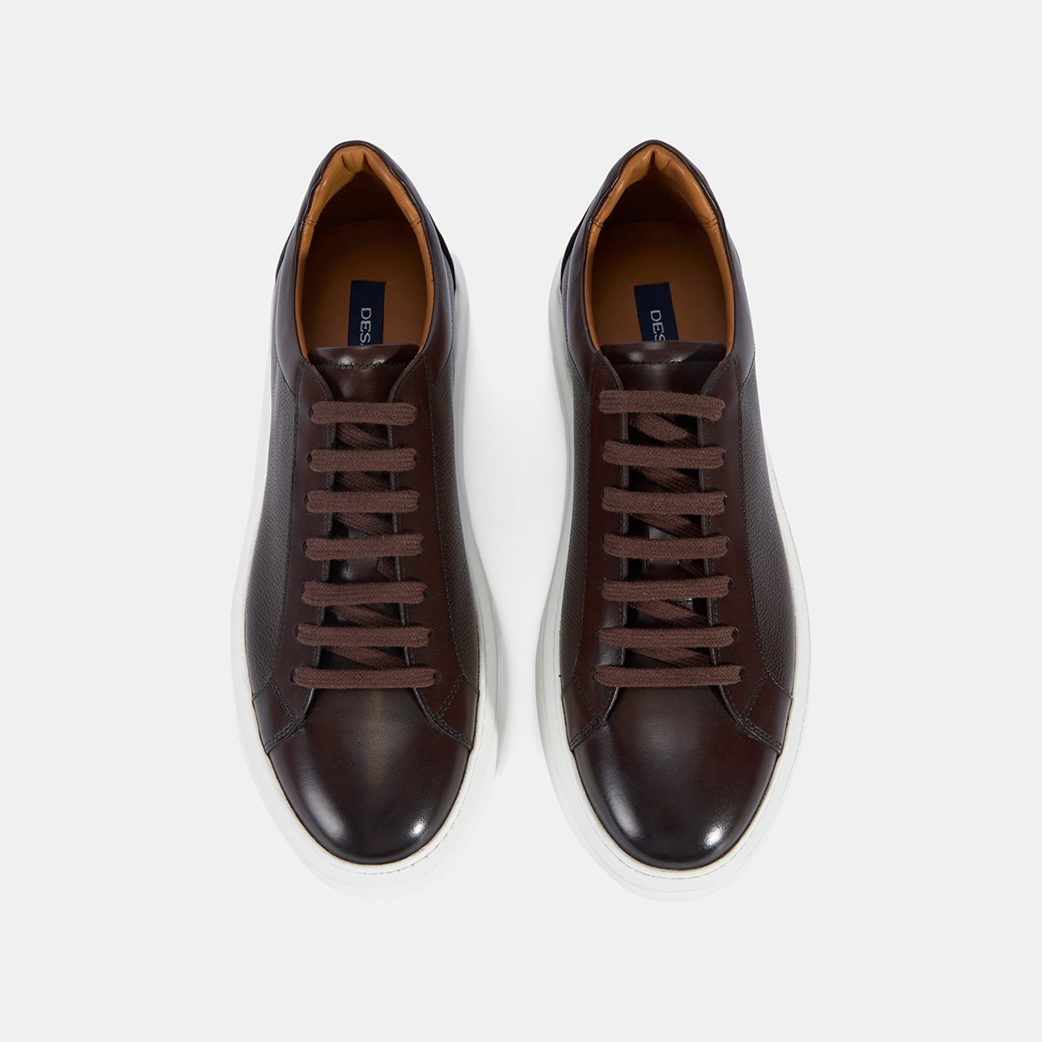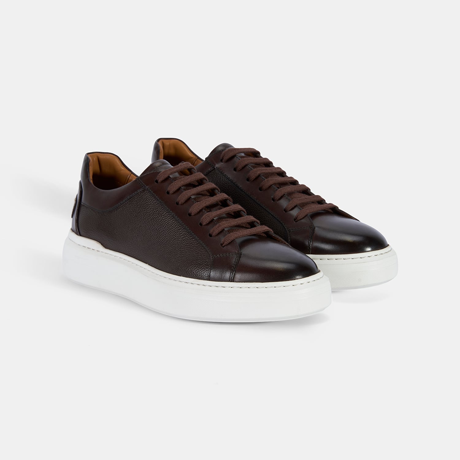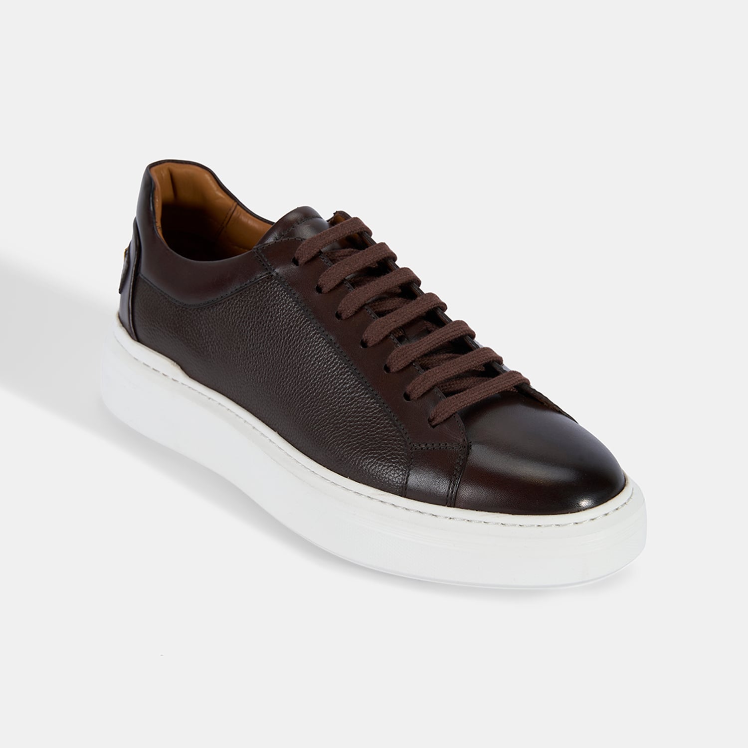 Erkek Koyu Kahve Bağcıklı Beyaz Tabanlı Deri Spor Ayakkabı
