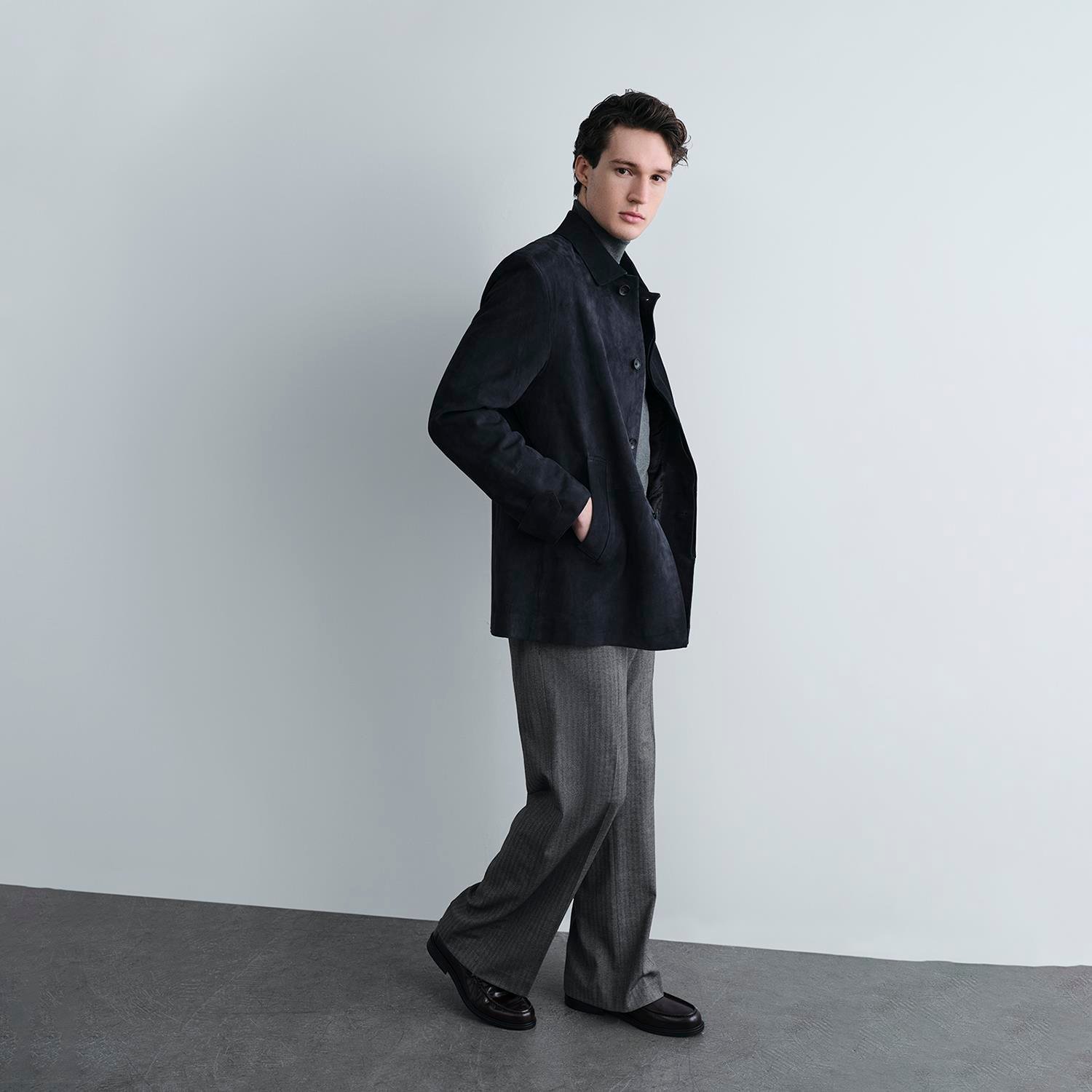 Erkek süet uzun ceket.