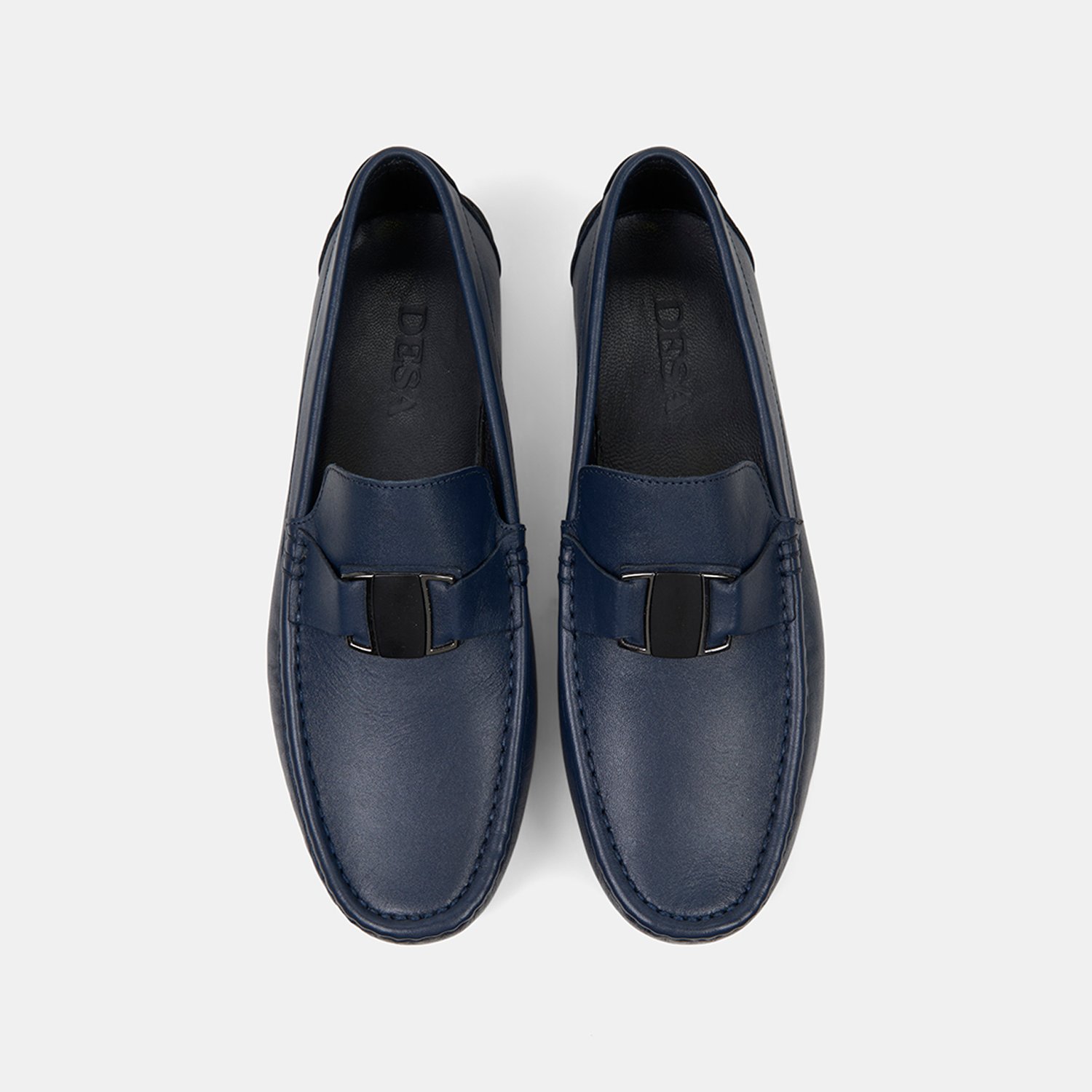 Erkek Lacivert Metal Detaylı Deri Loafer