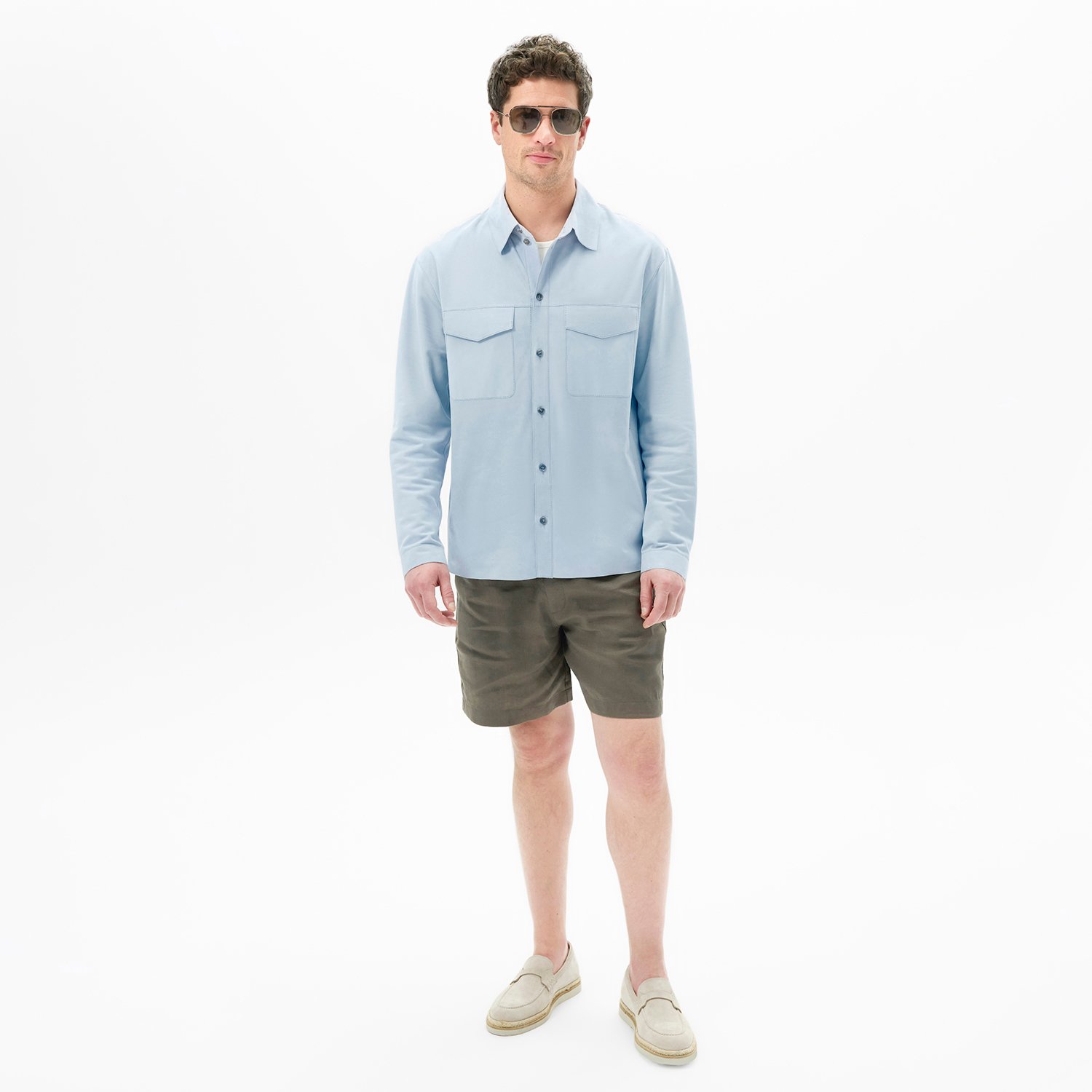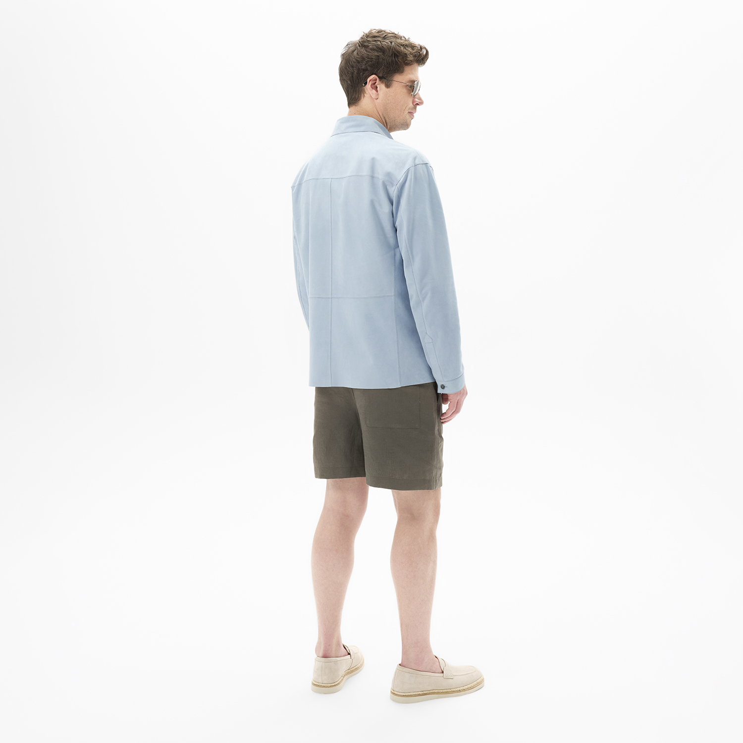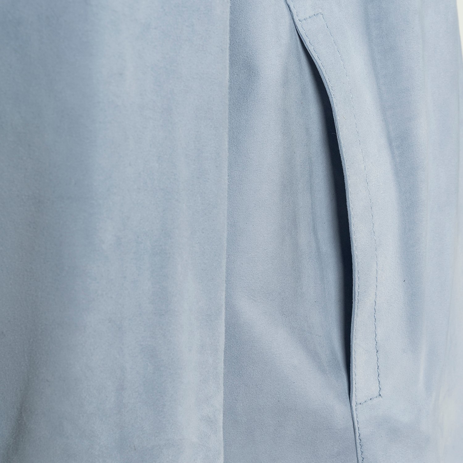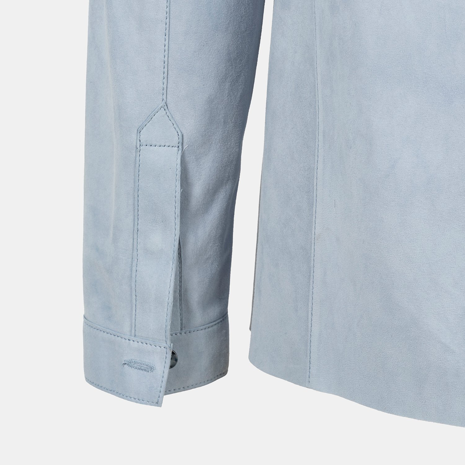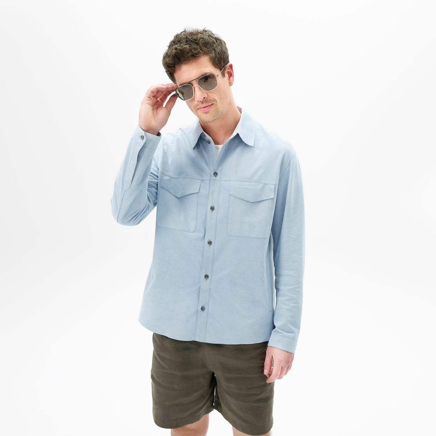 Erkek yakalı süet gömlek, önden düğme kapamalıdır.