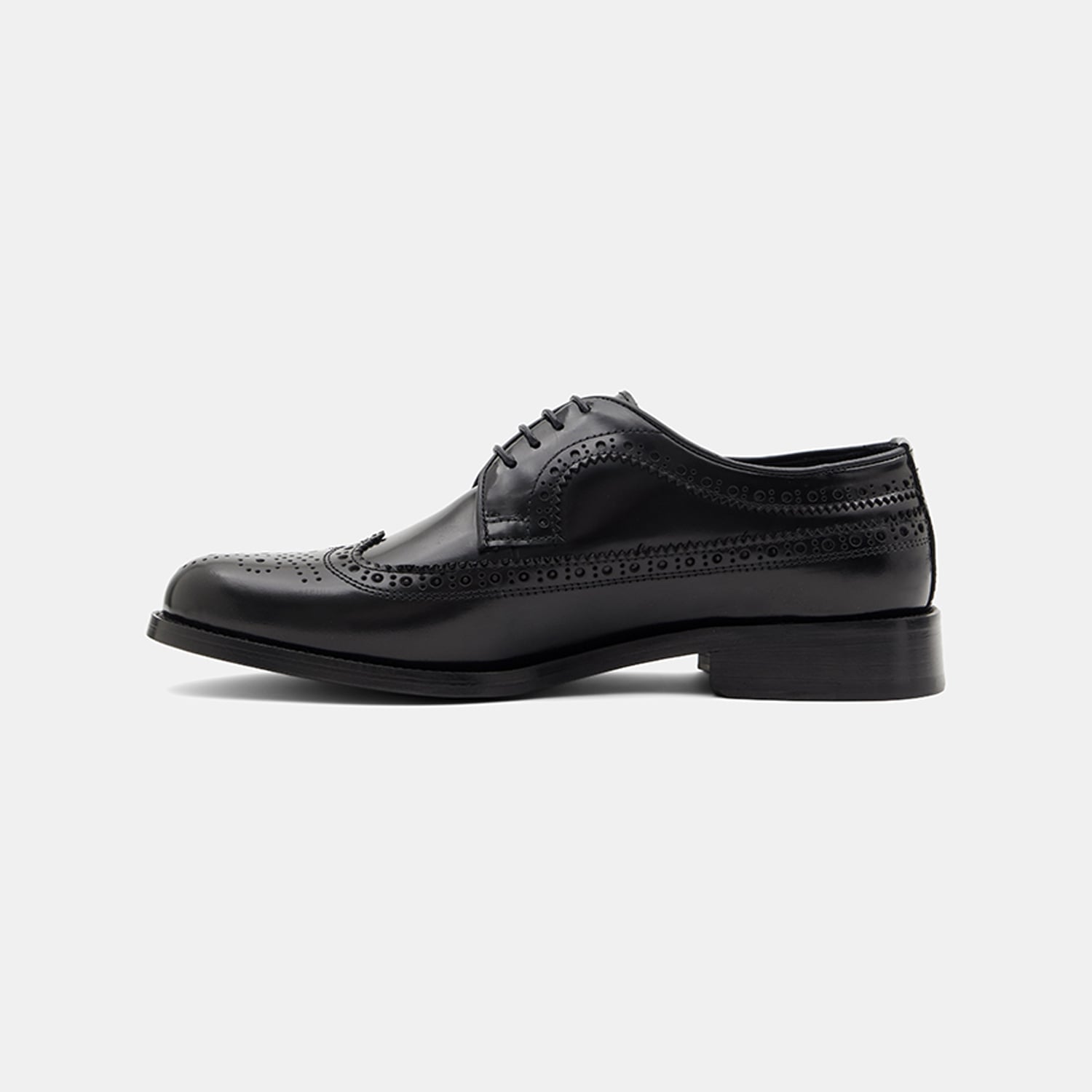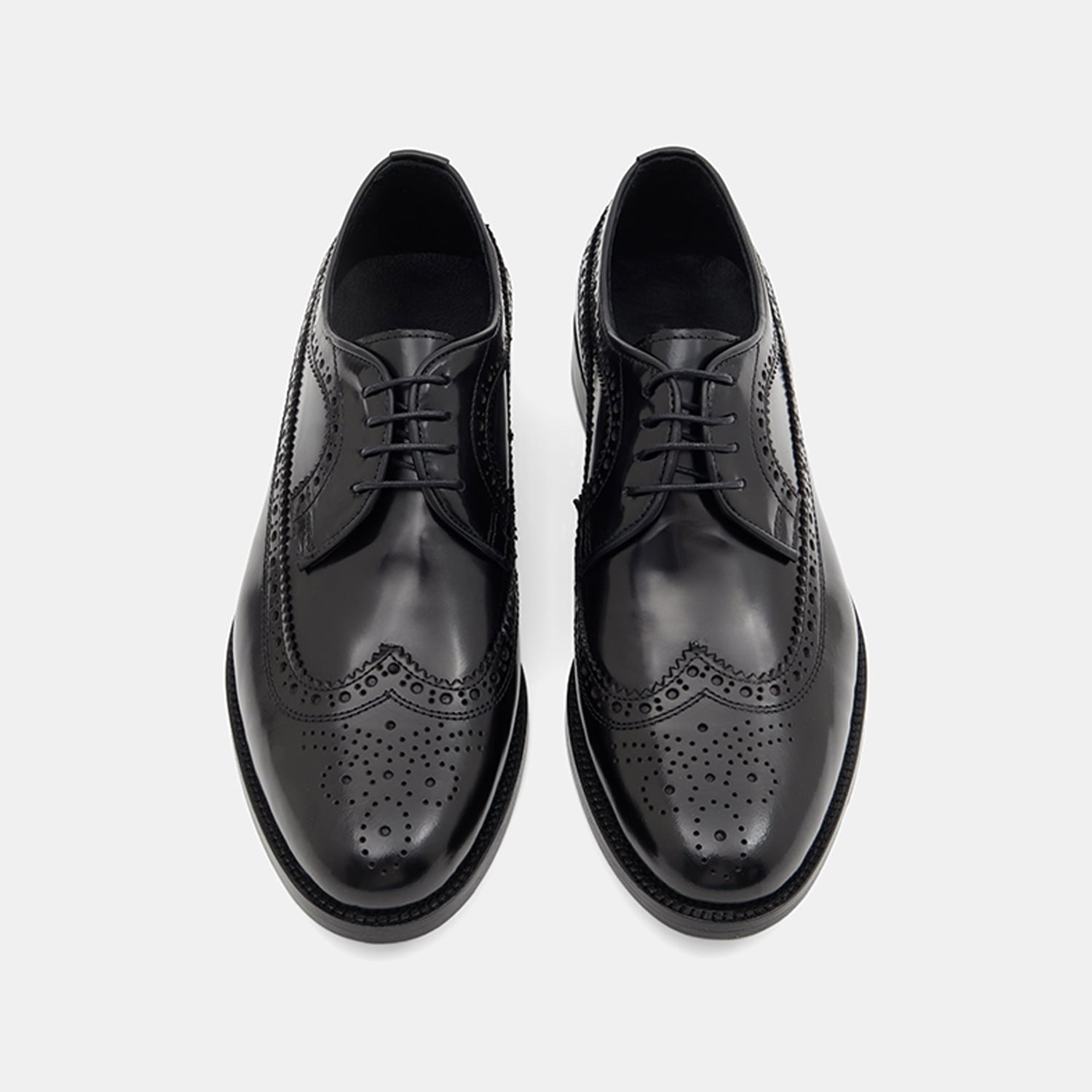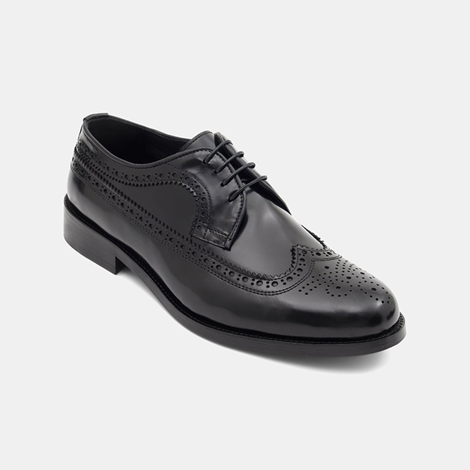 Erkek Siyah Bağcıklı Brogue Klasik Deri Ayakkabı