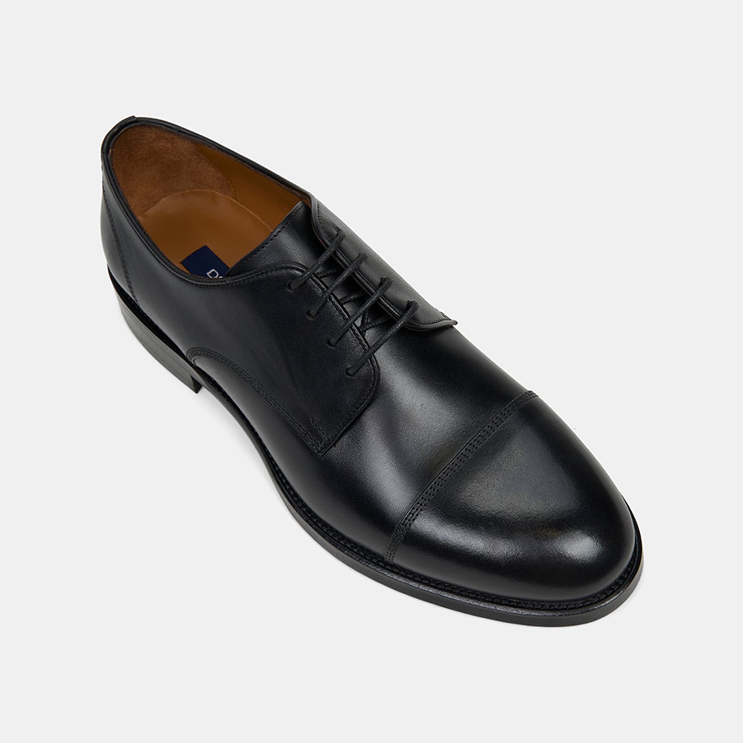 Erkek Siyah Bağcıklı Dikiş Detaylı Klasik Deri Ayakkabı