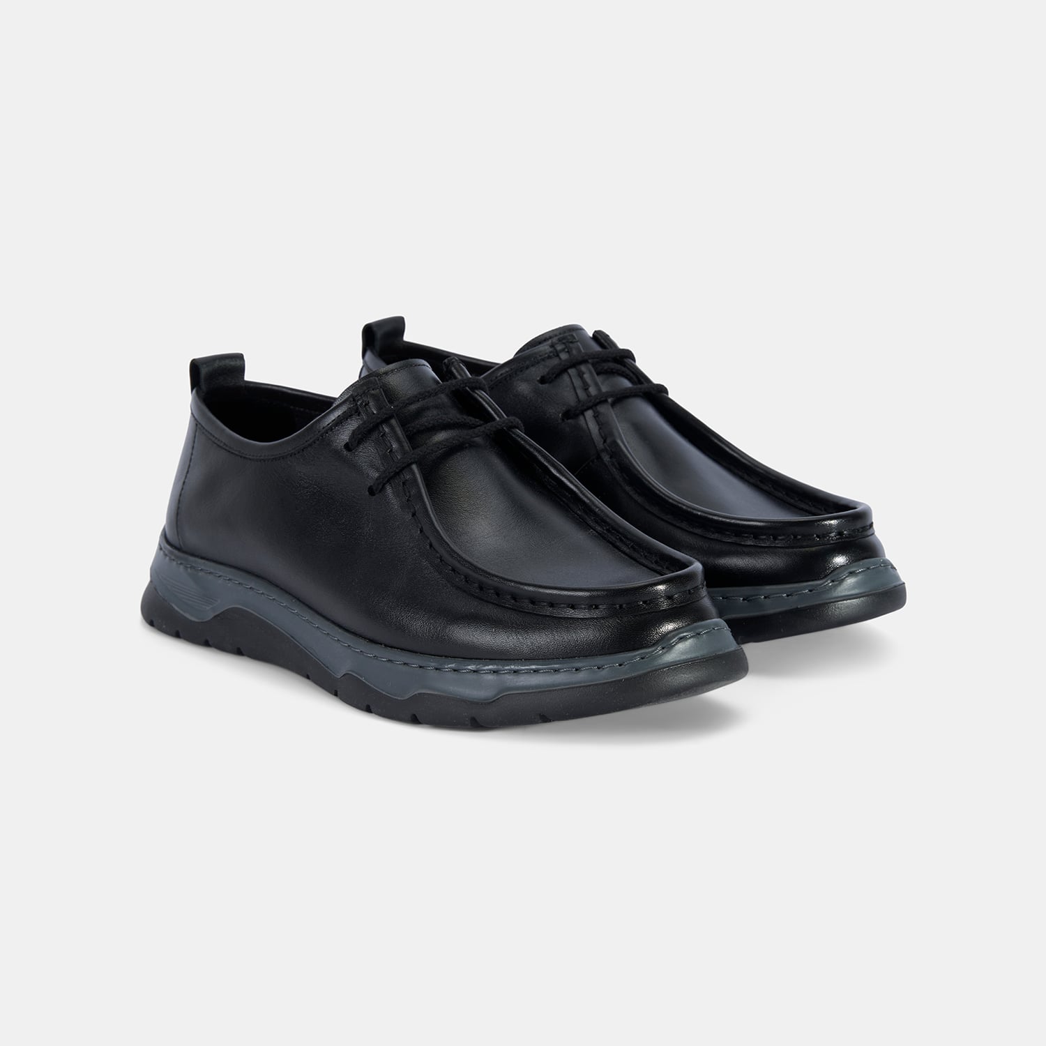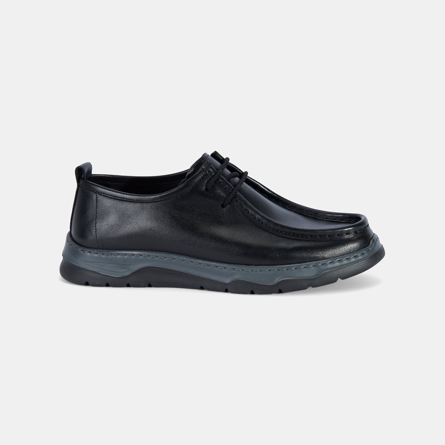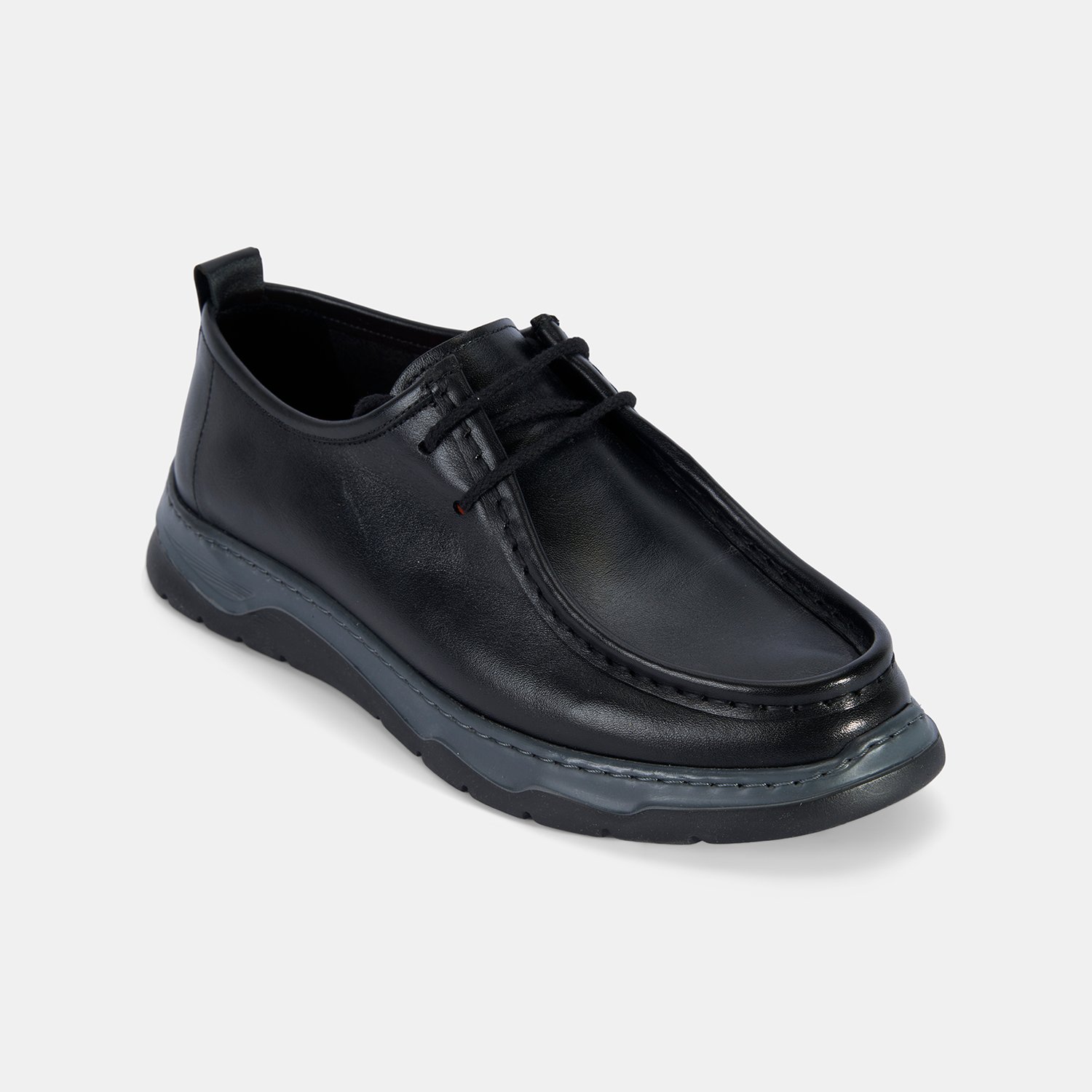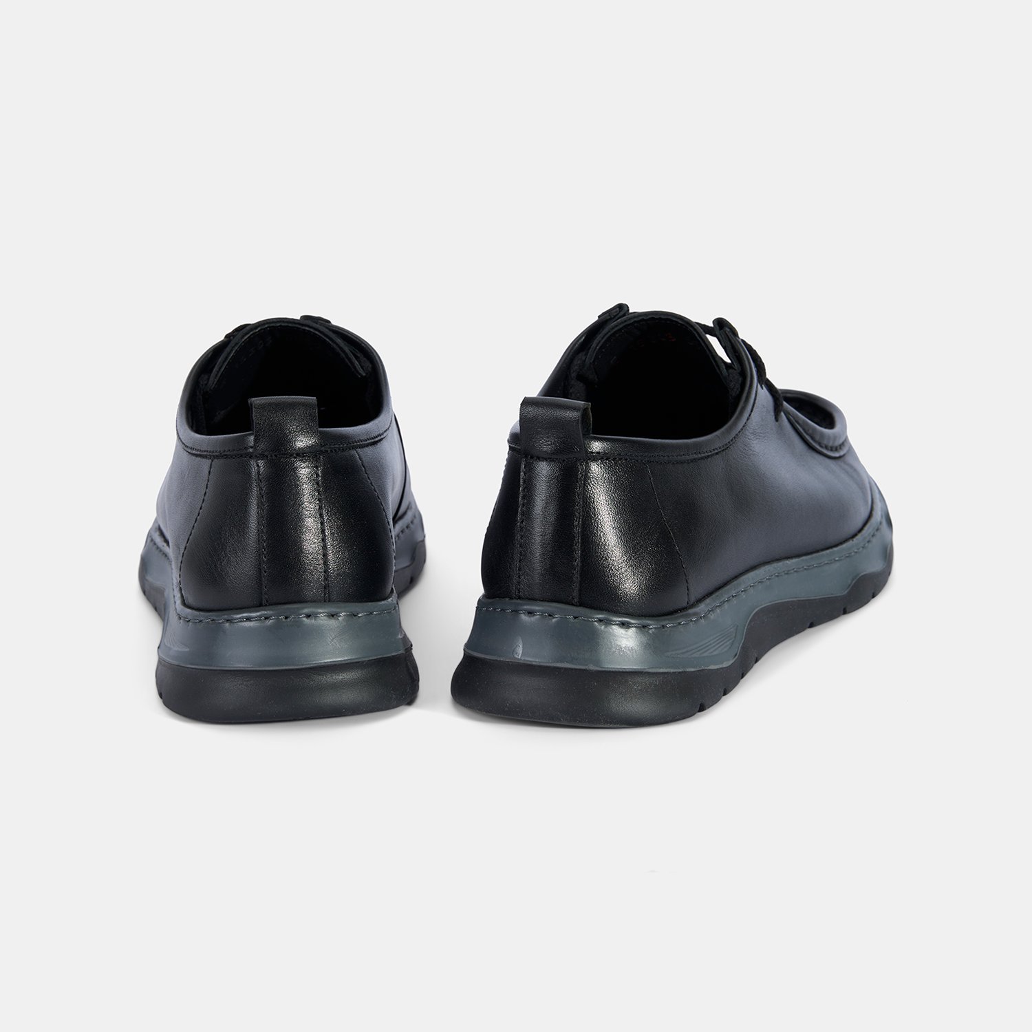 Erkek Siyah Bağcıklı Kalın Tabanlı Deri Günlük Ayakkabı