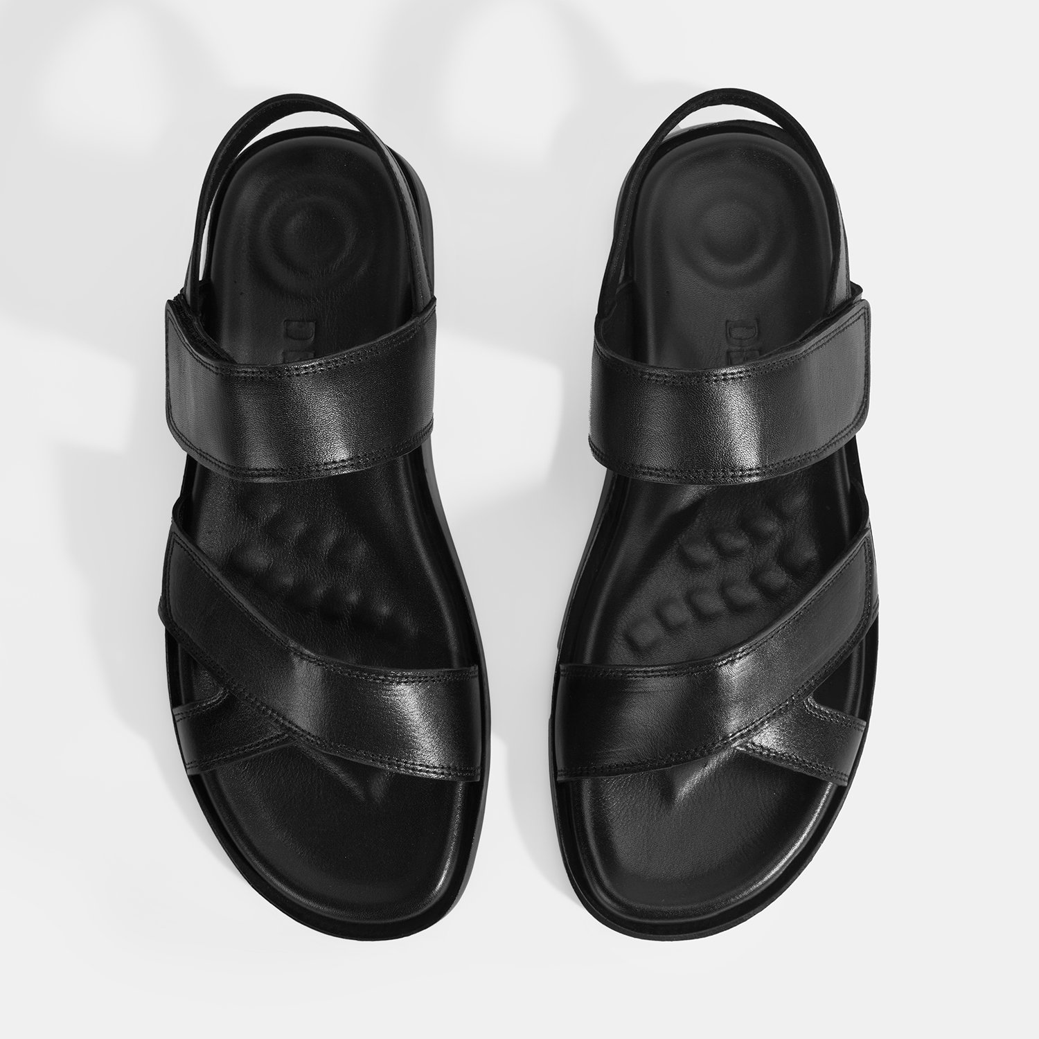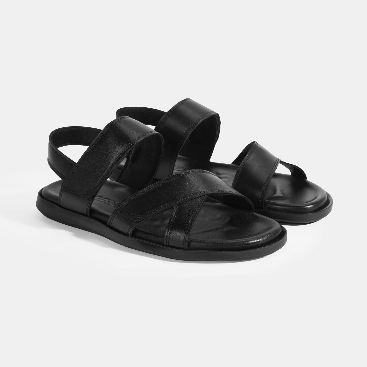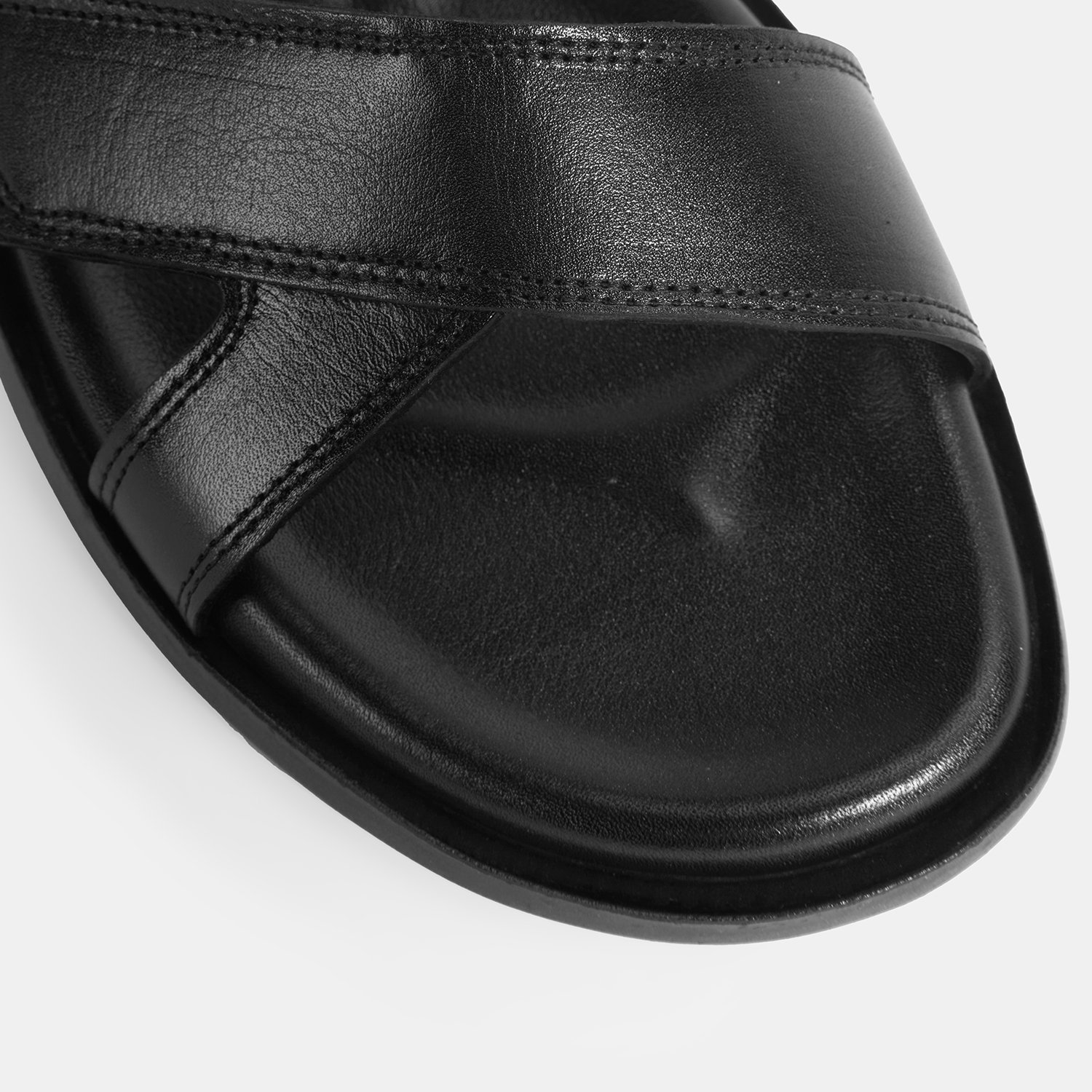 Erkek Siyah Cırt Detaylı Deri Sandalet
