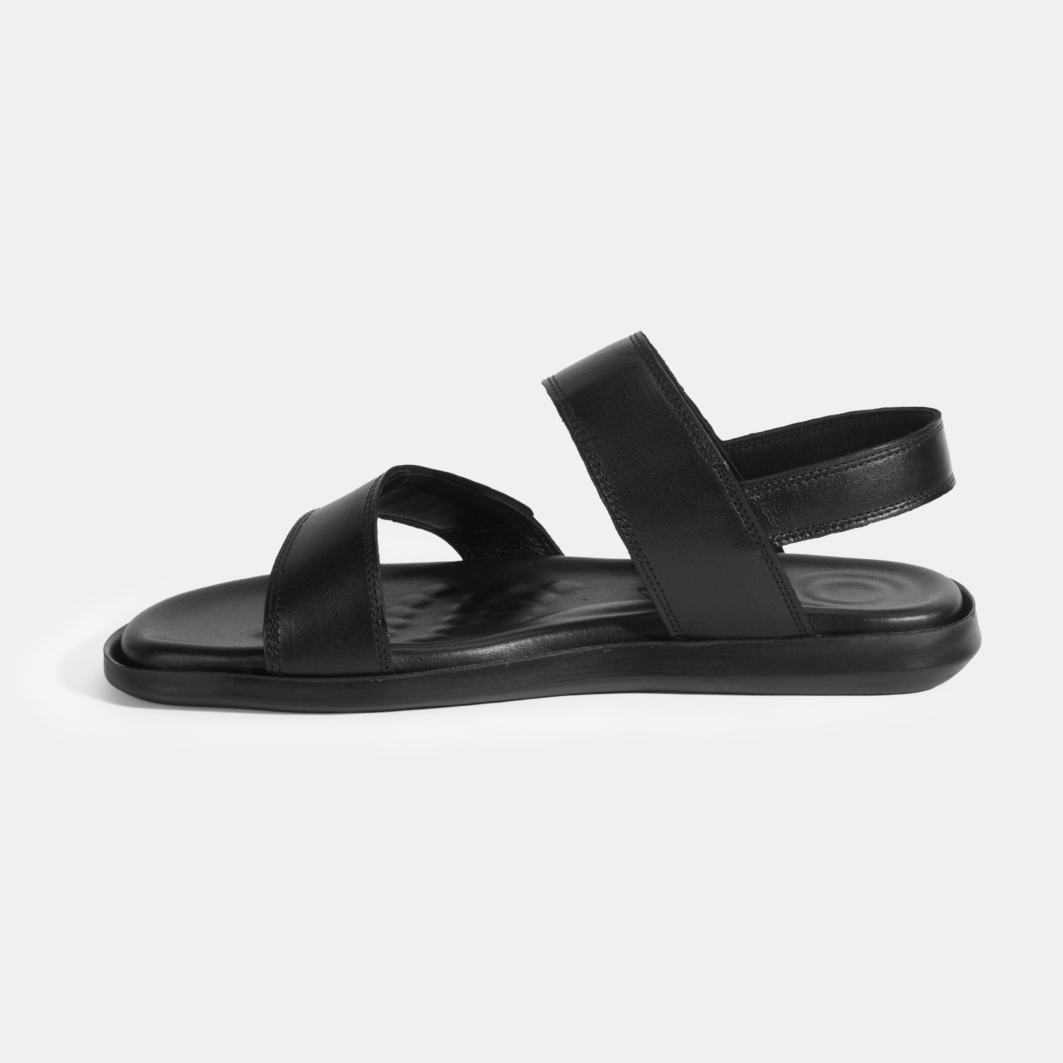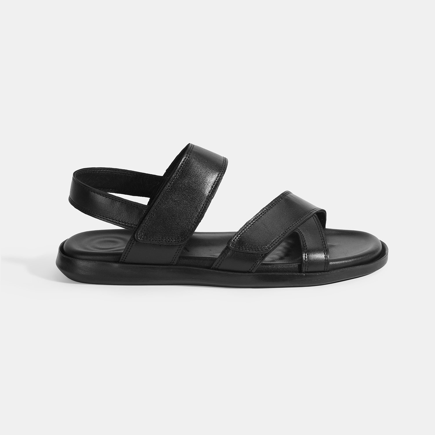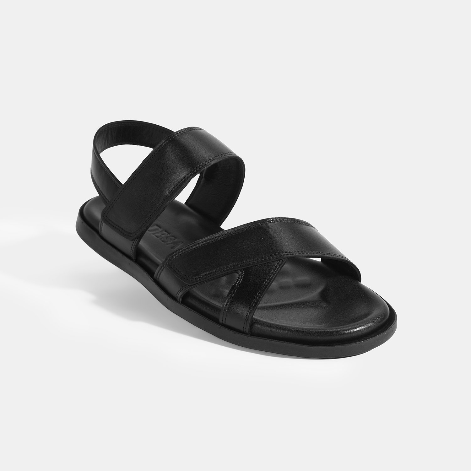 Erkek Siyah Cırt Detaylı Deri Sandalet