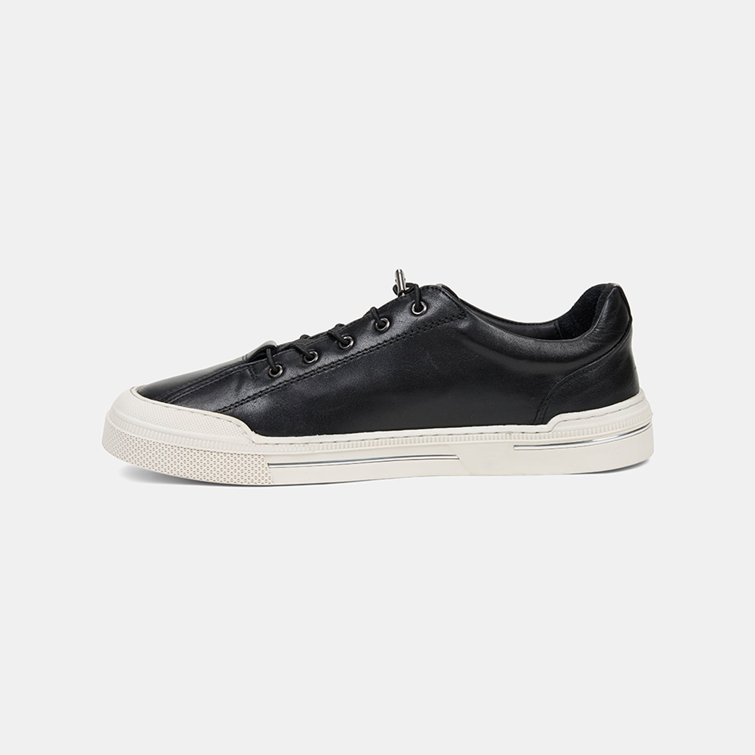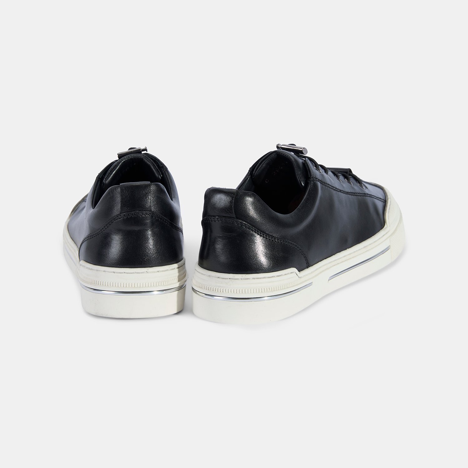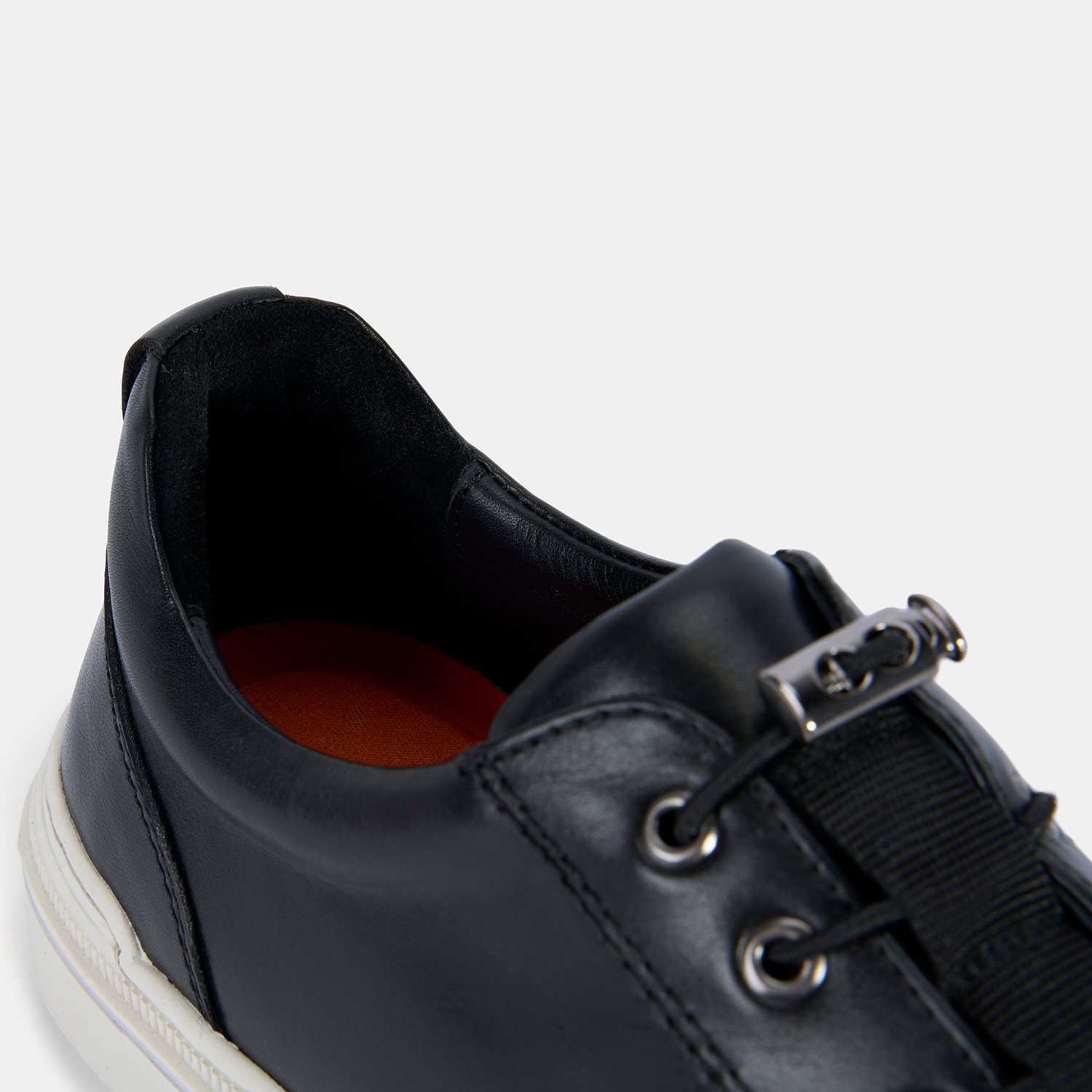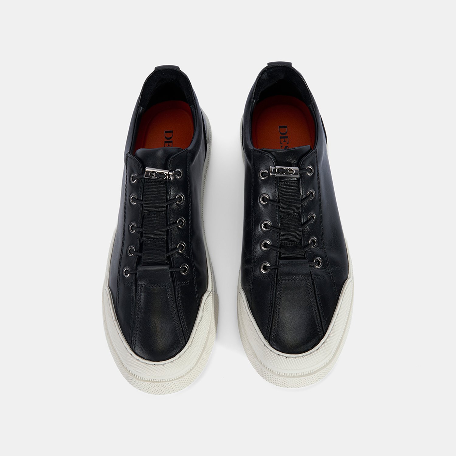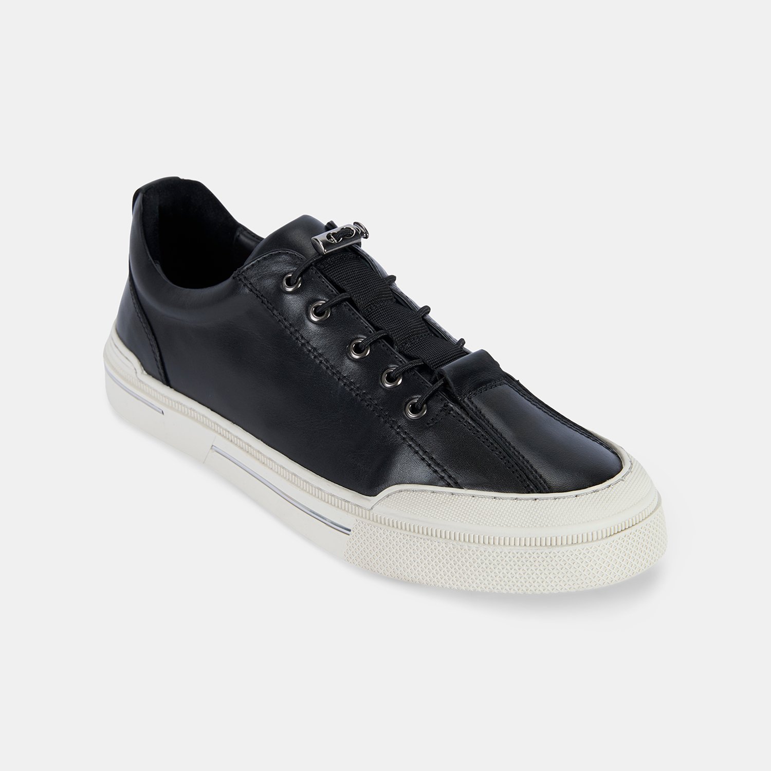 Erkek Siyah Lastik Bağcıklı Deri Sneaker