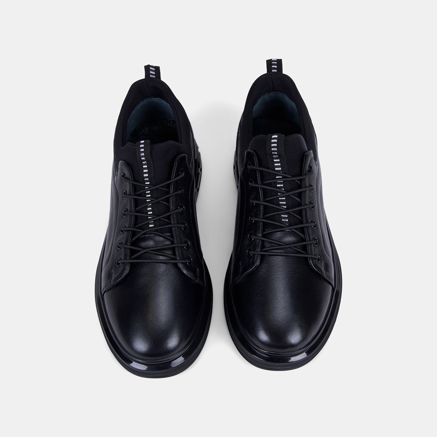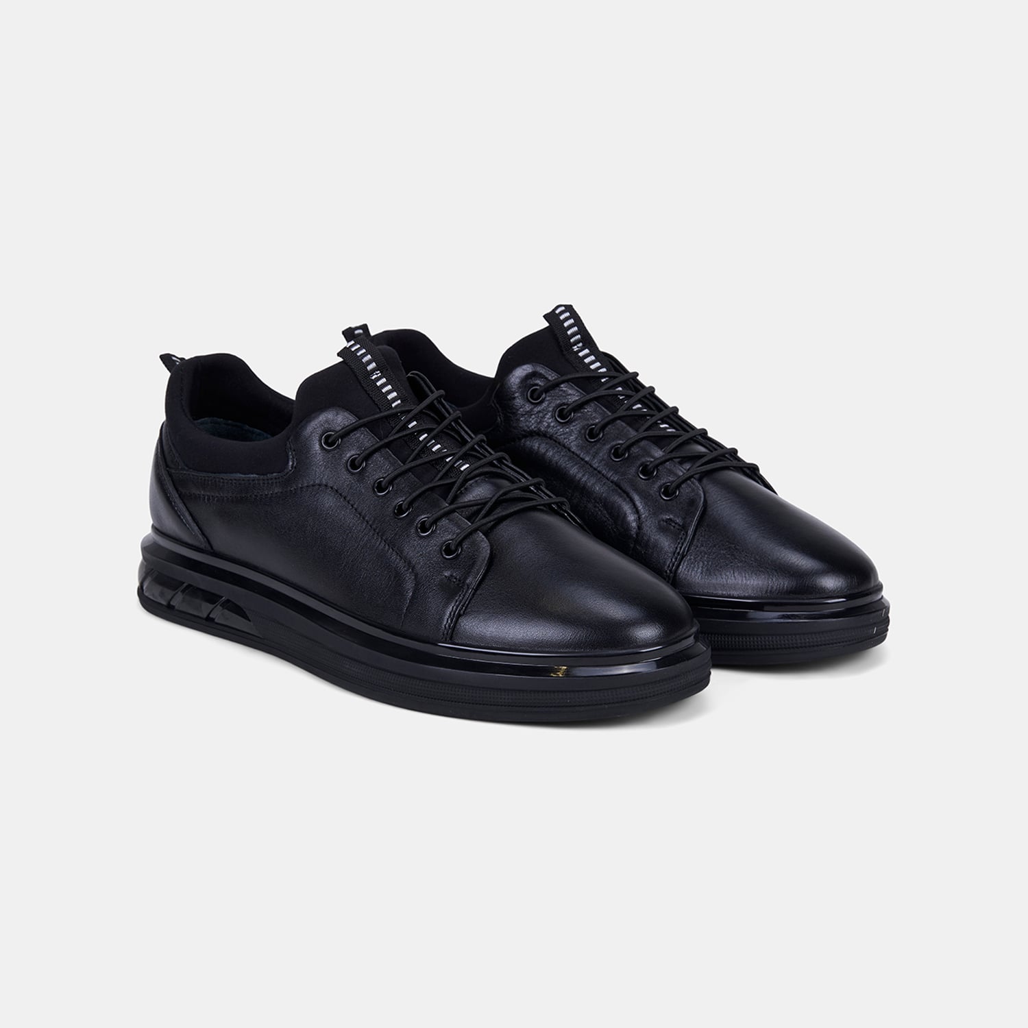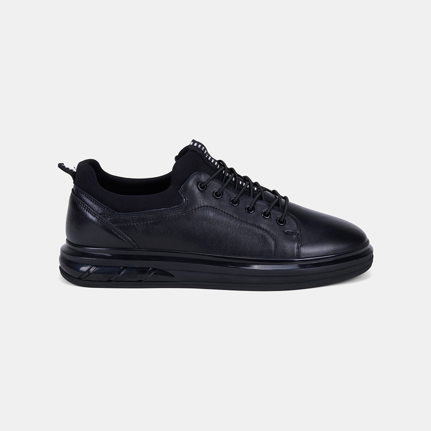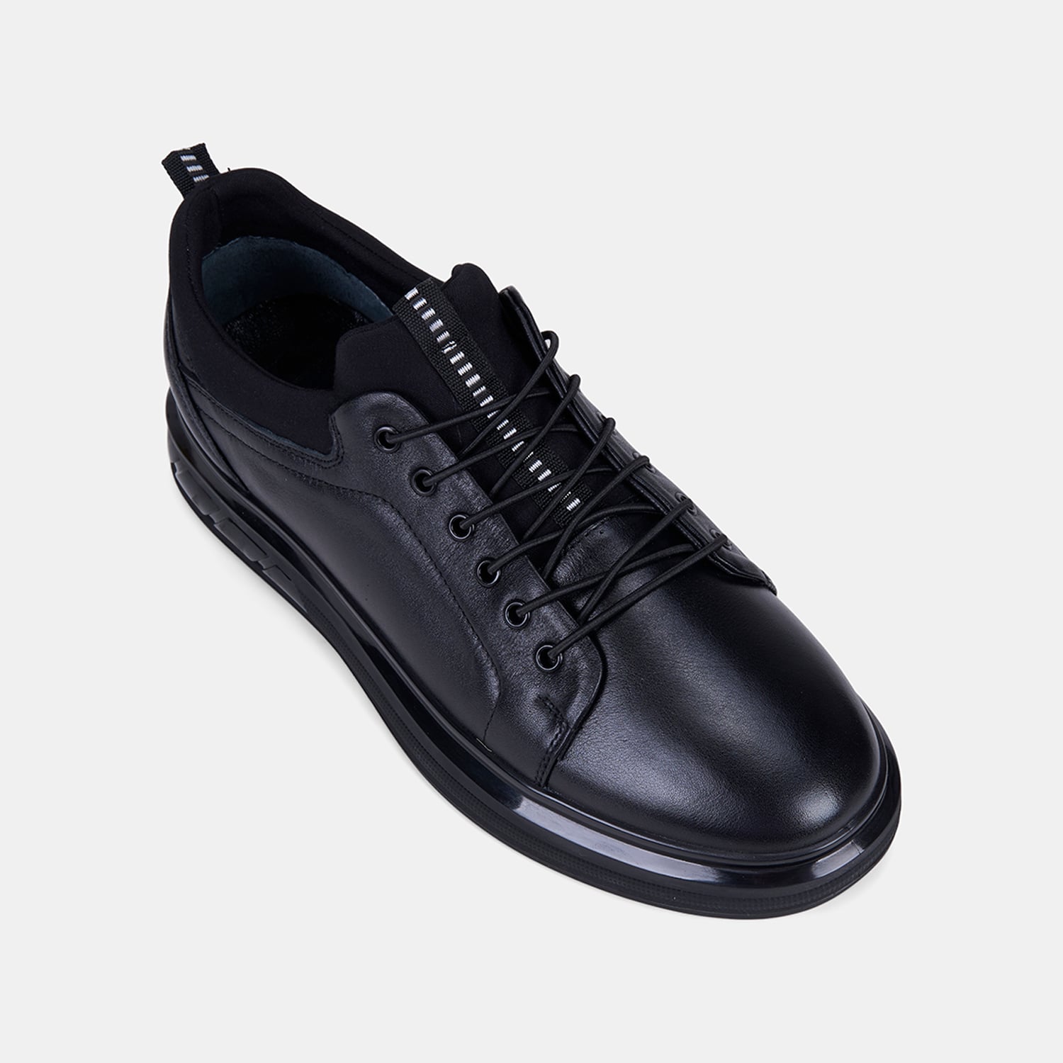 Erkek Siyah Lastik Bağcıklı Deri Sneaker