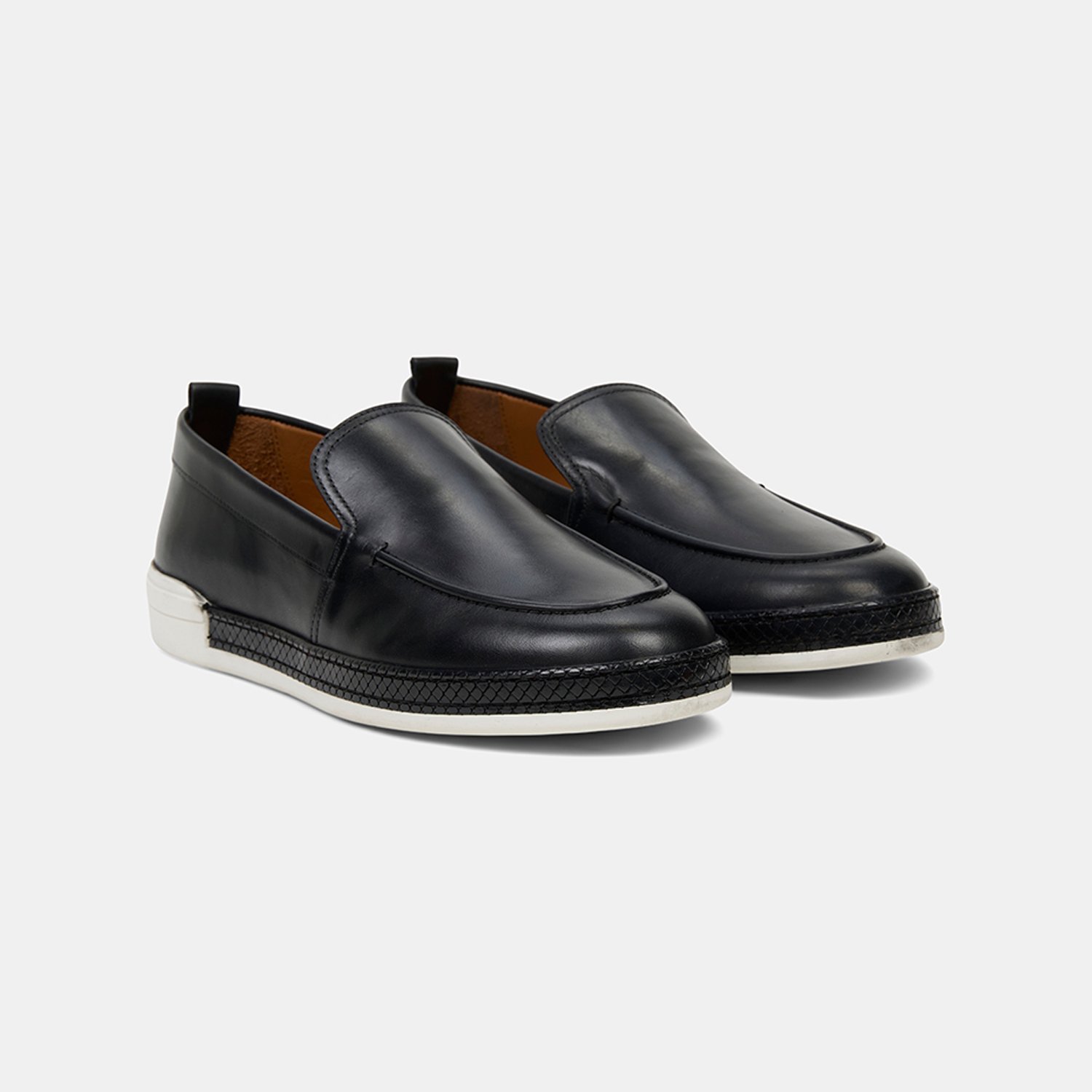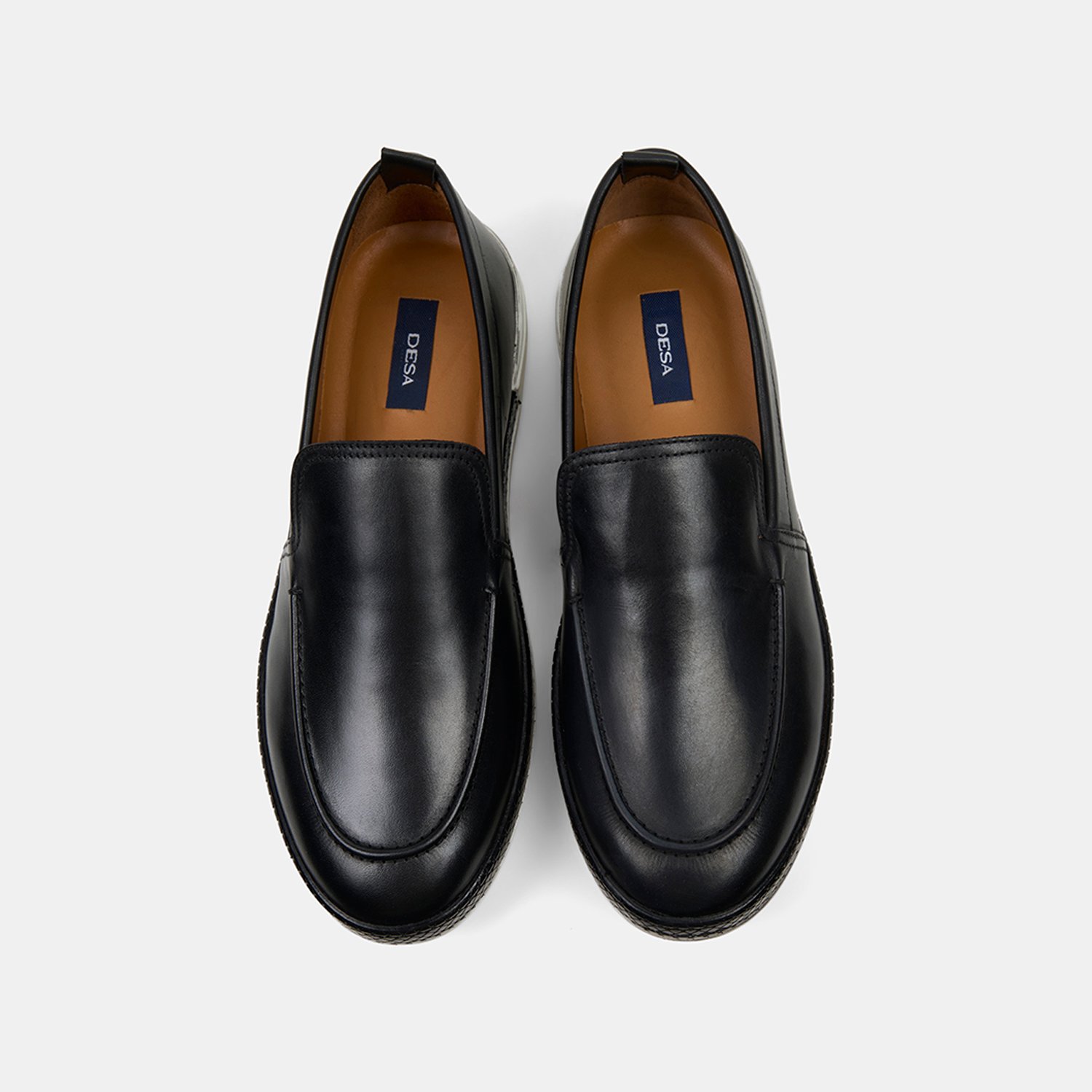 Erkek Siyah Spor Beyaz Tabanlı Deri Loafer