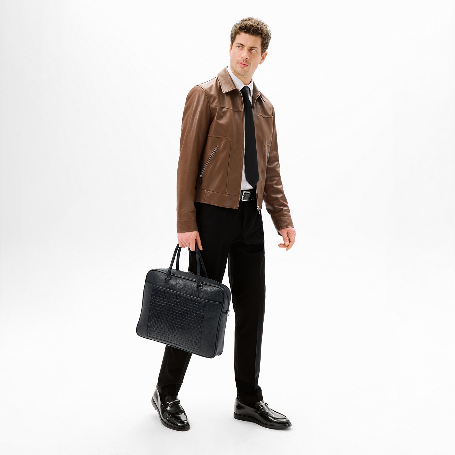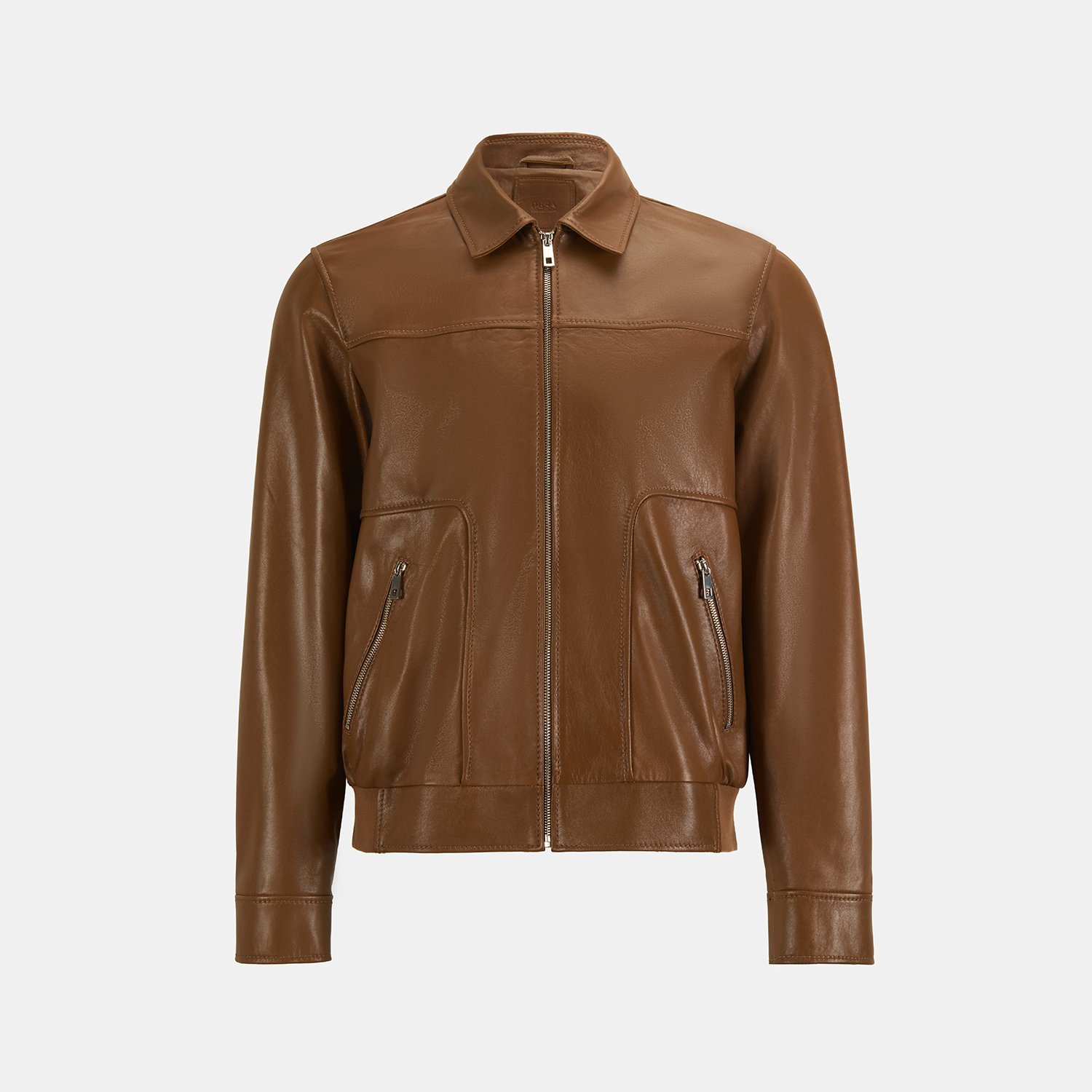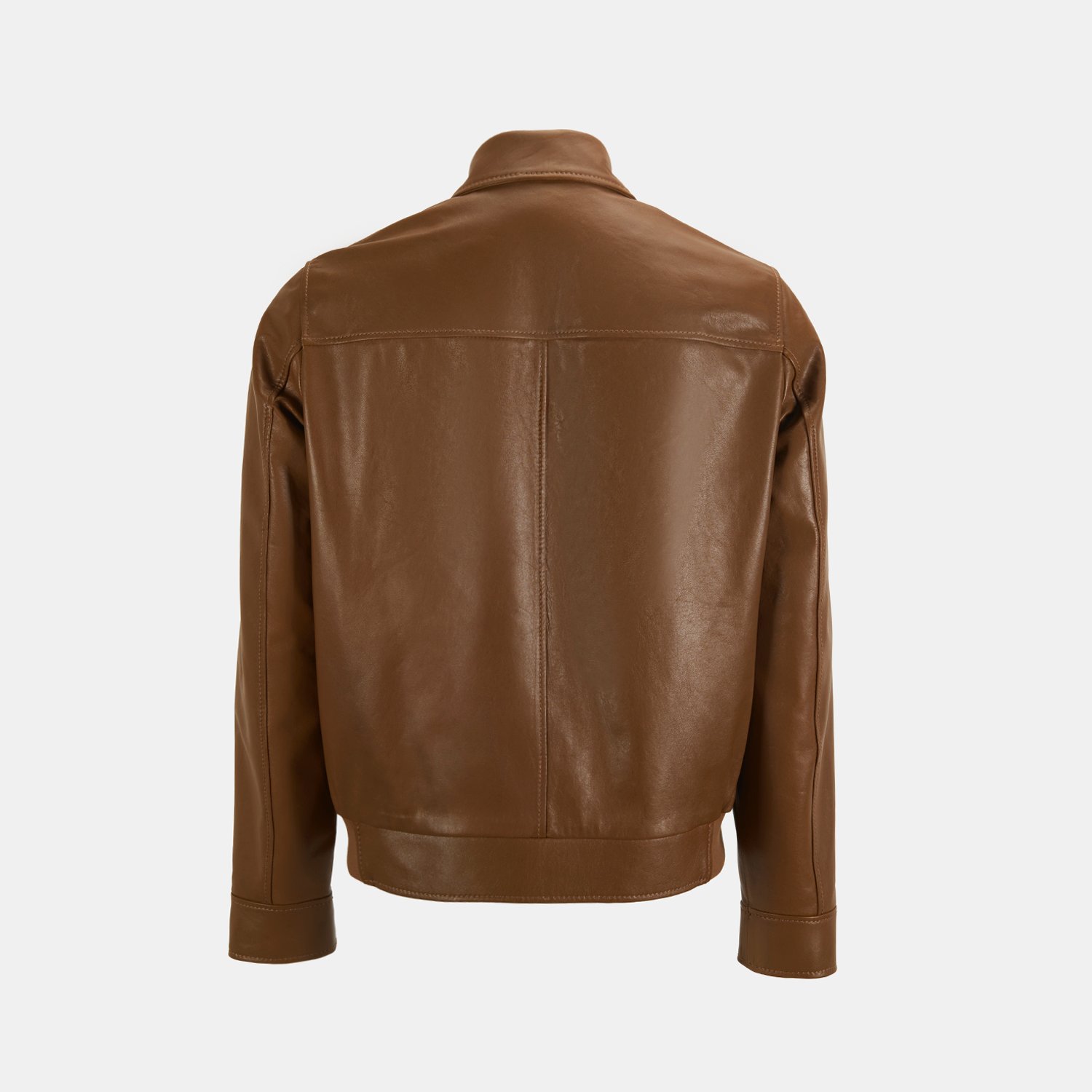 Erkek Taba Fermuarlı Gömlek Yaka Deri Ceket