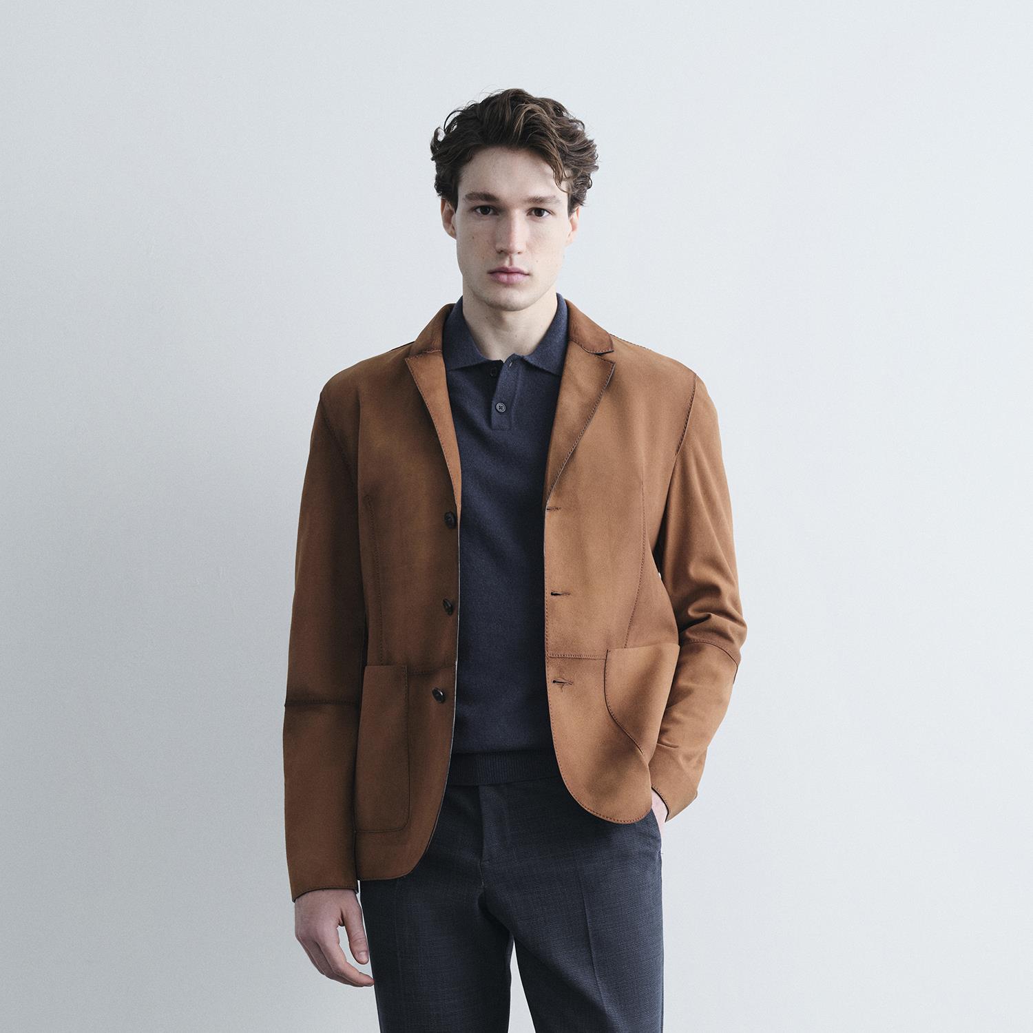 Erkek Taba Yakalı Süet Deri Blazer Ceket