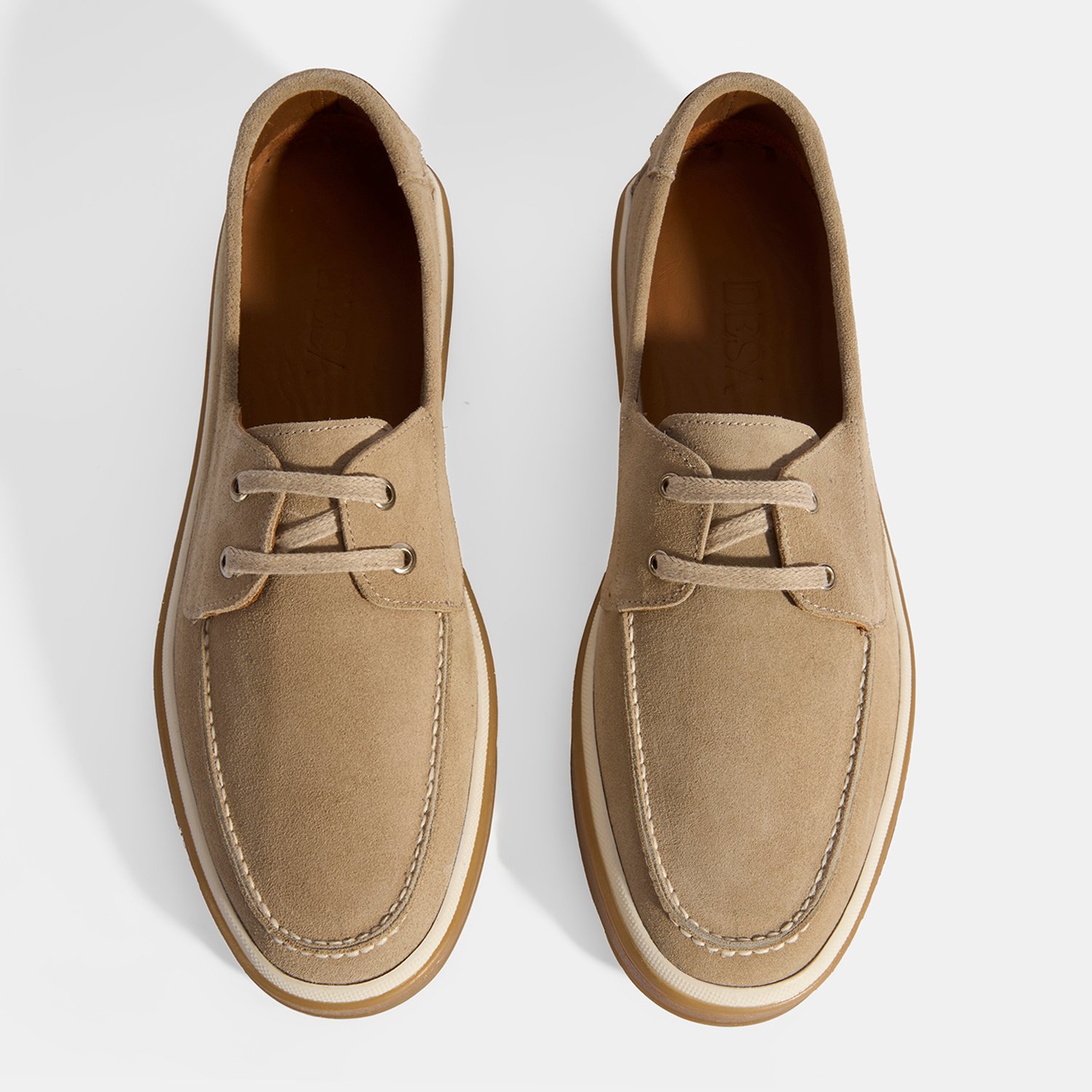 %100 süet deri, %100 deri mostra, astarsız, termo tabanlı bağcıklı erkek ayakkabı.