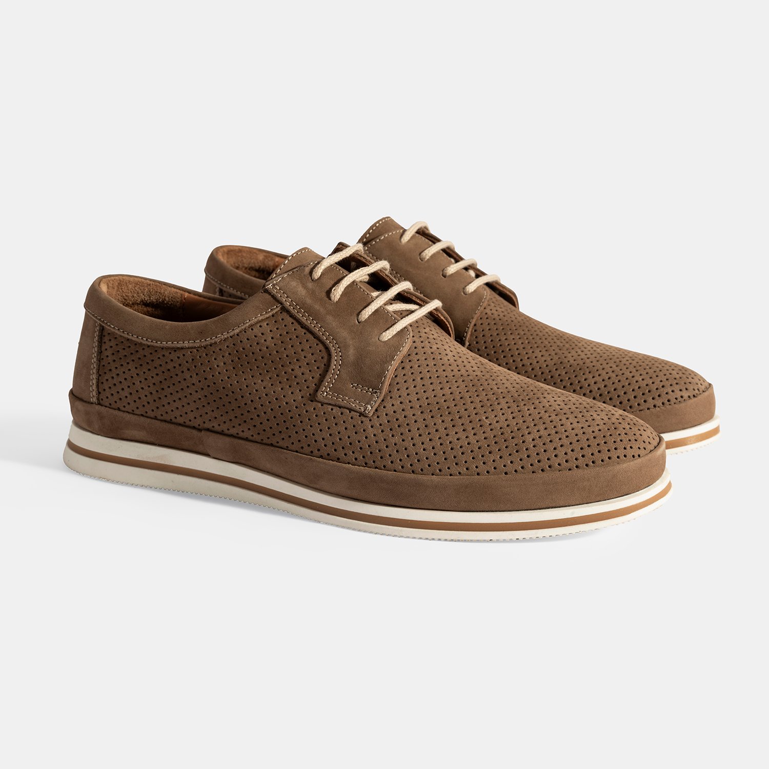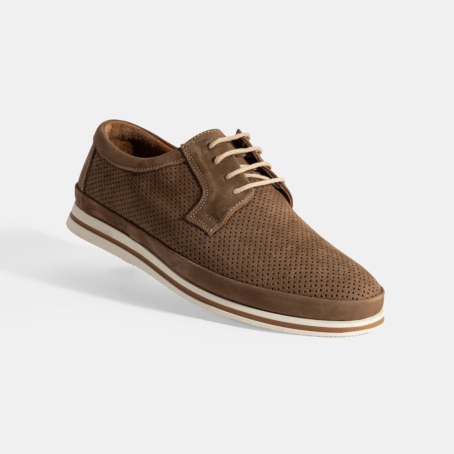Erkek Vizon Nubuk Deri Bağcıklı Günlük Ayakkabı