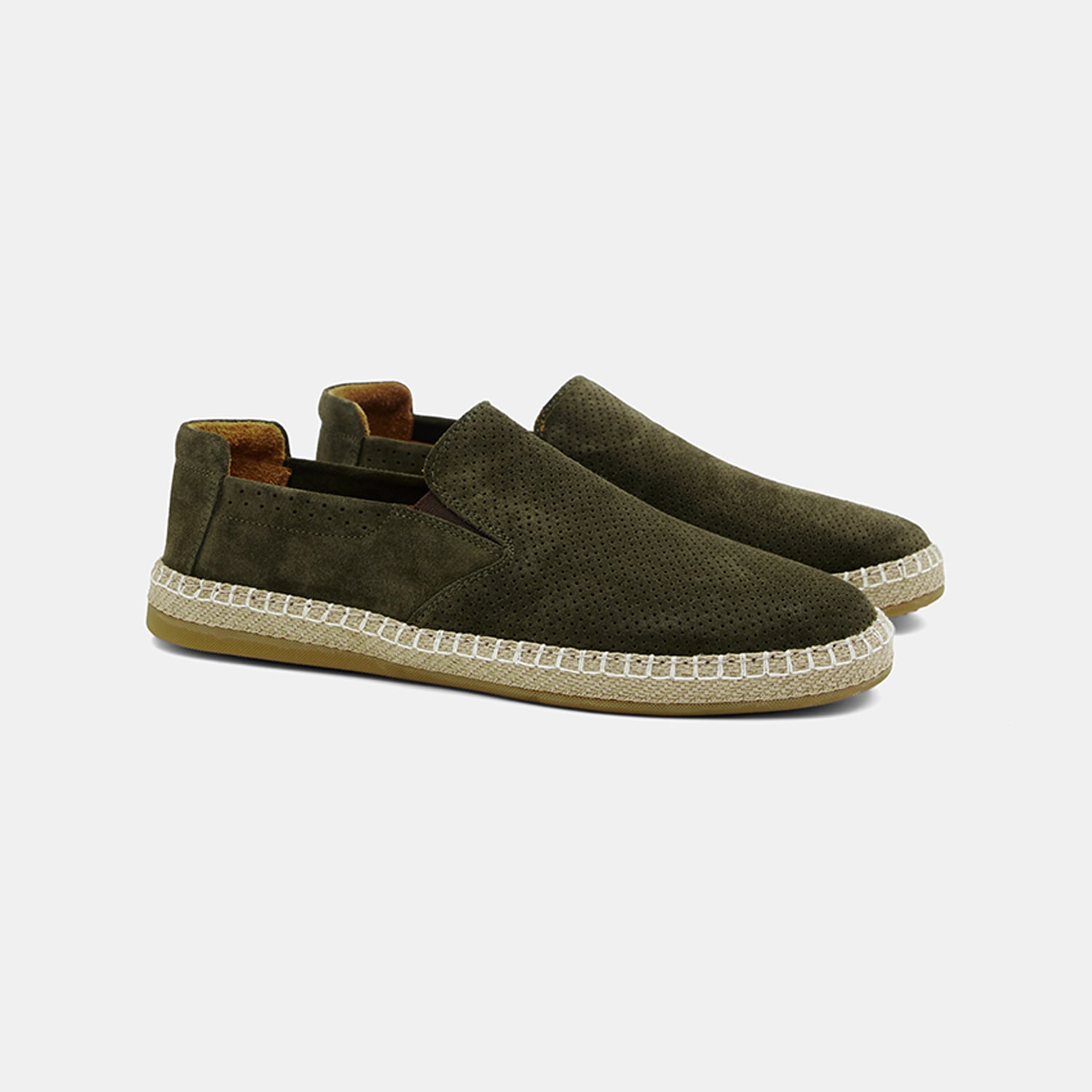 Erkek Yeşil Perforeli Günlük Süet Deri Loafer
