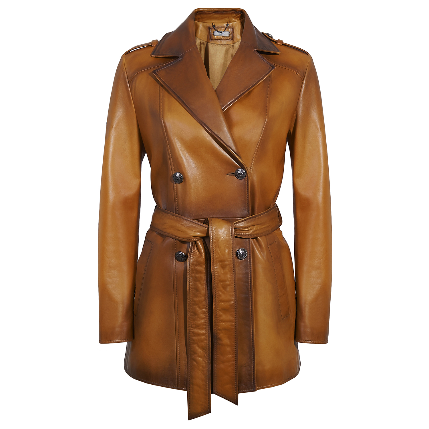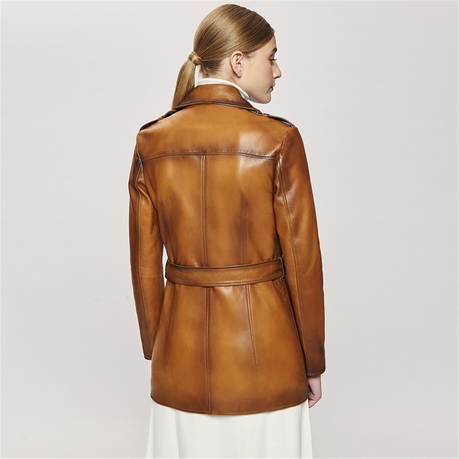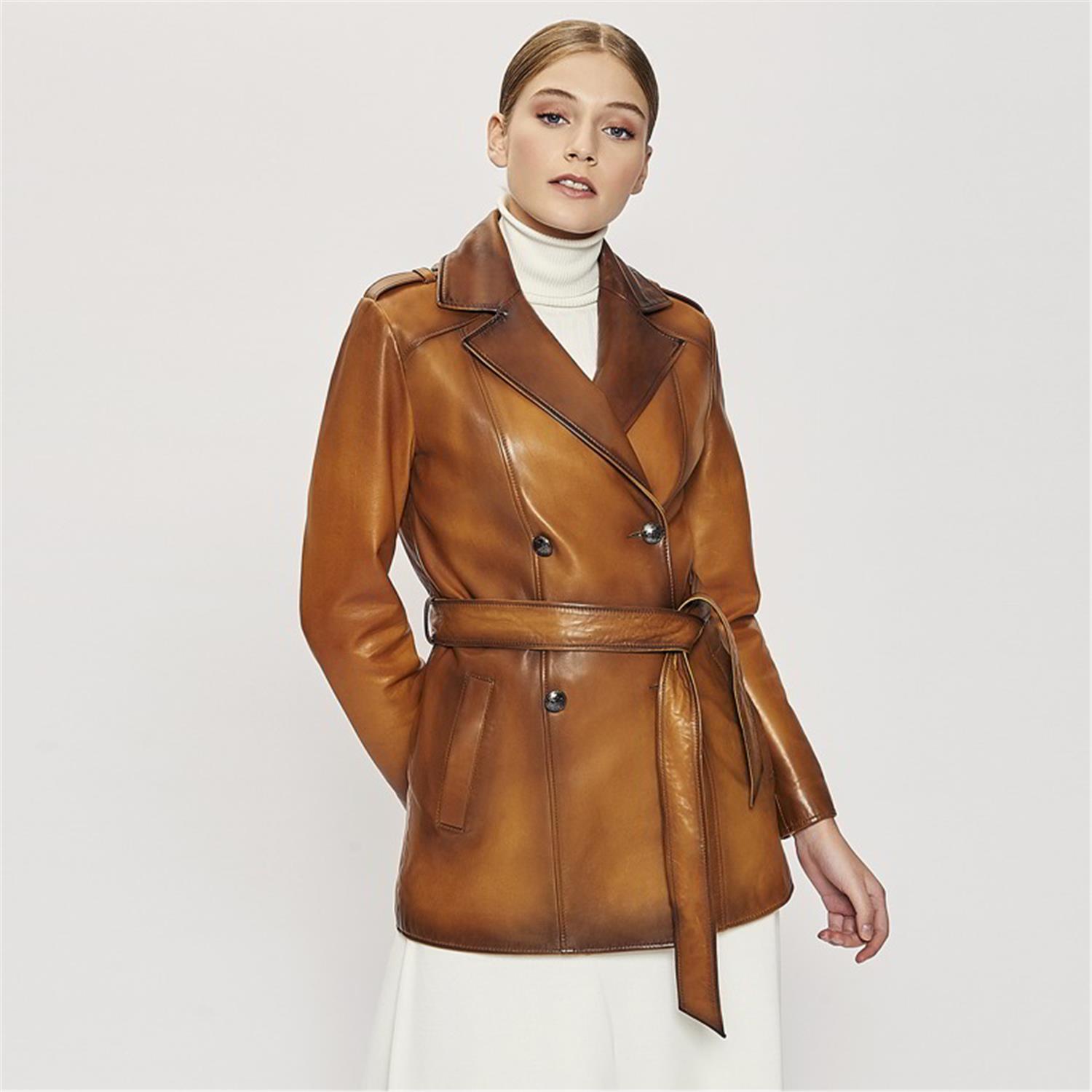 Klasik şıklığı benimseyen kadınlara, deri trençkot.