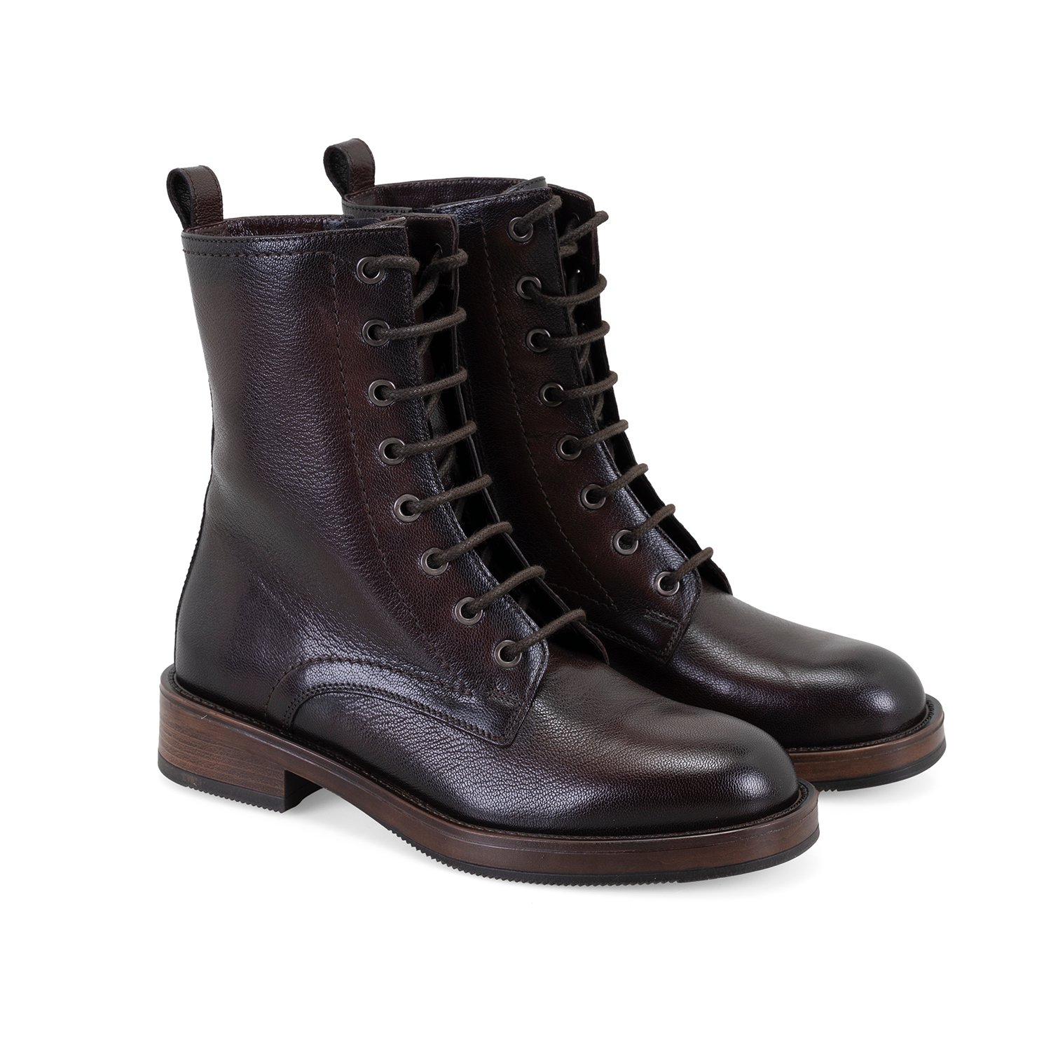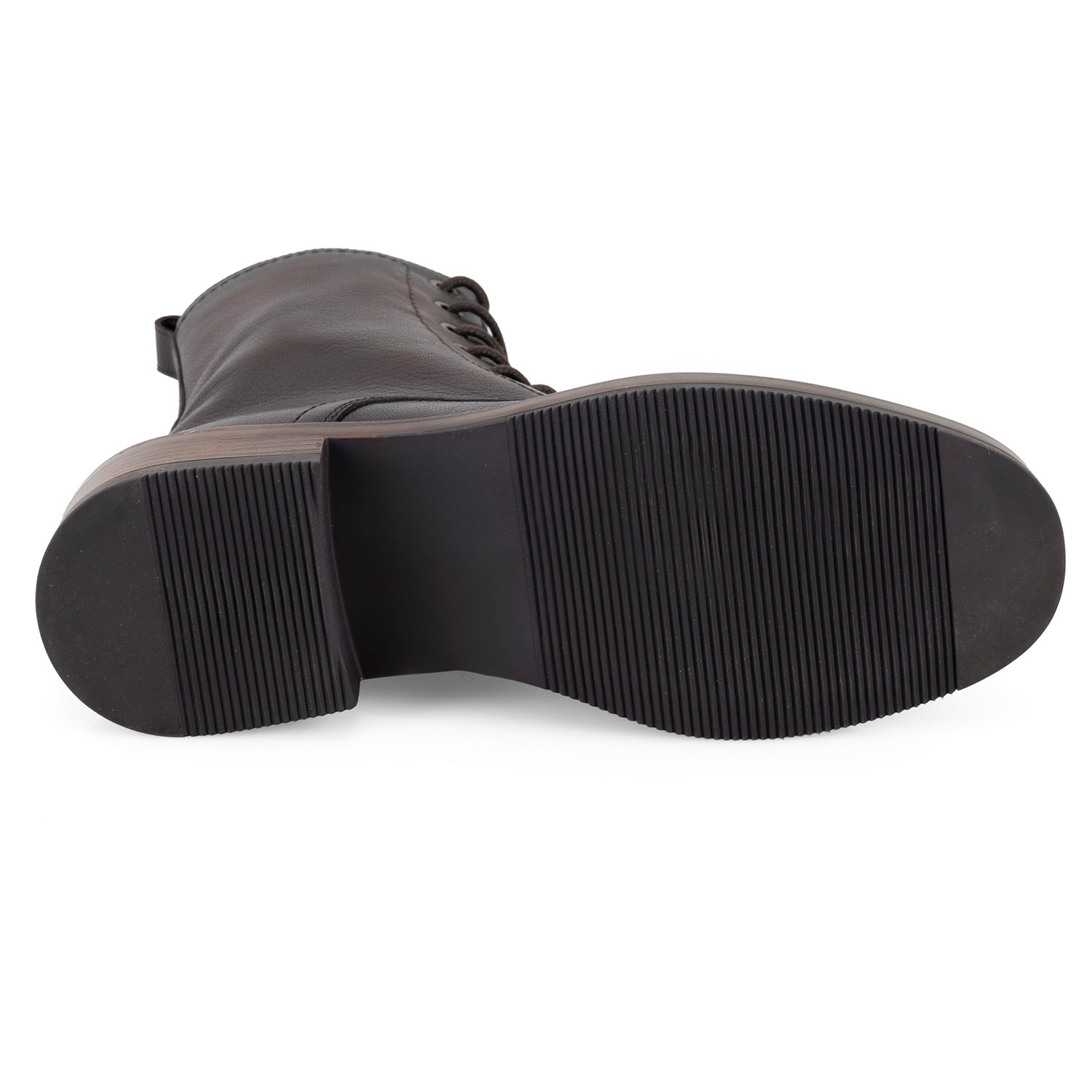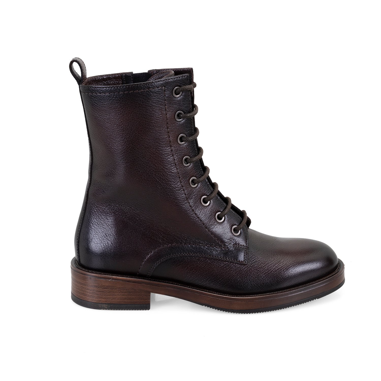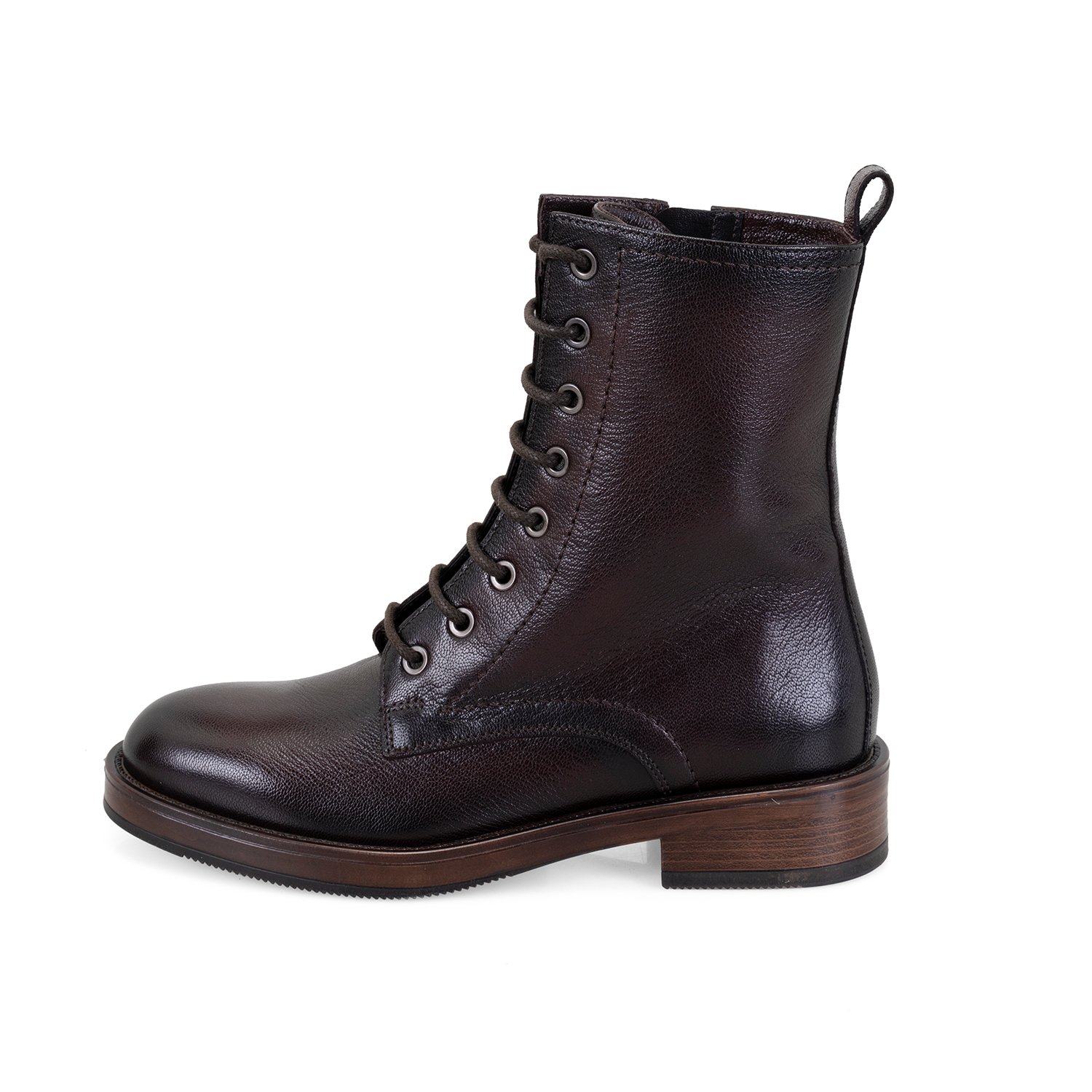 İçten fermuar detayı sayesinde giyip çıkarması kolay olan bu postal, aynı zamanda bağcıklarıyla klasik bir tarz ve ayarlanabilirlik sunar.