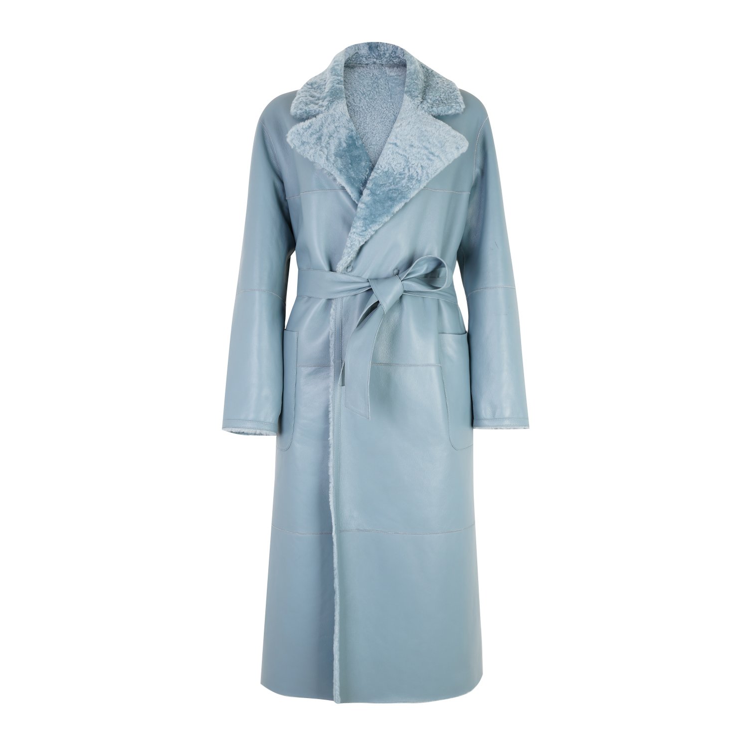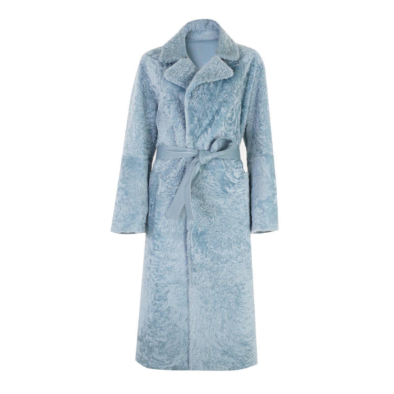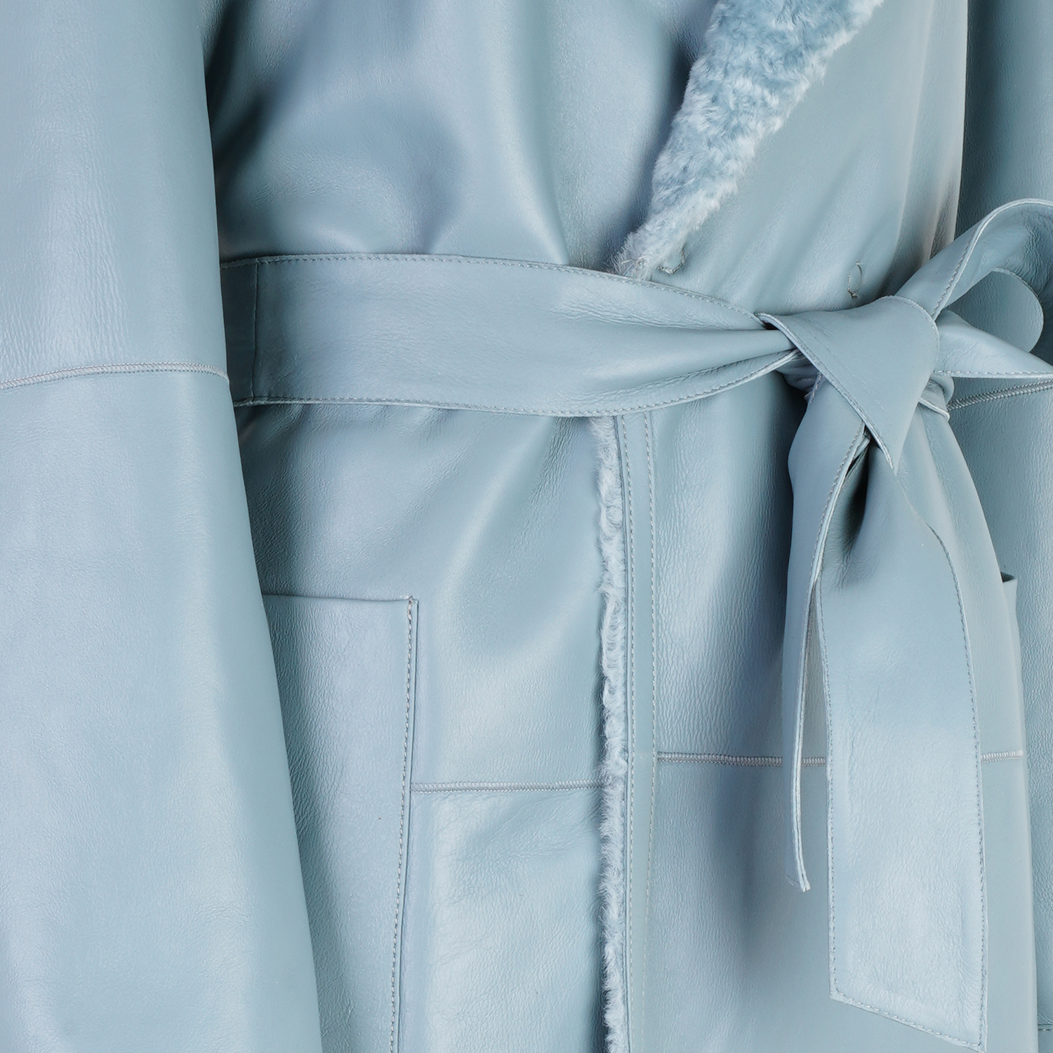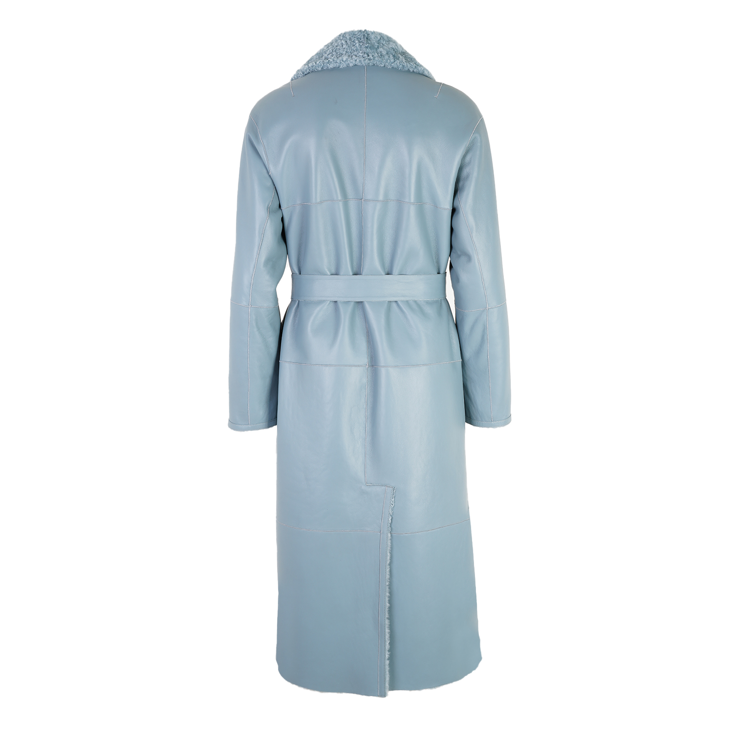 Evalyse Mavi Kadın Çift Taraflı Kürk Kaban