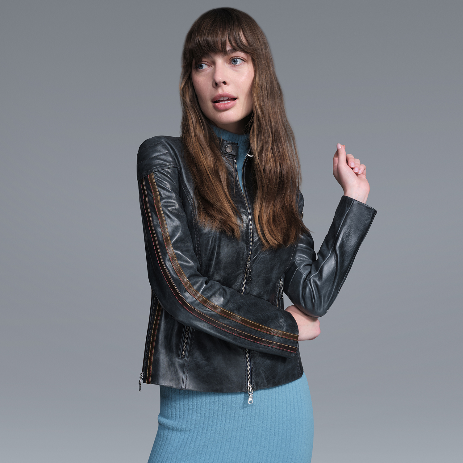 Ewelina Lacivert Kadın Fit Deri Ceket