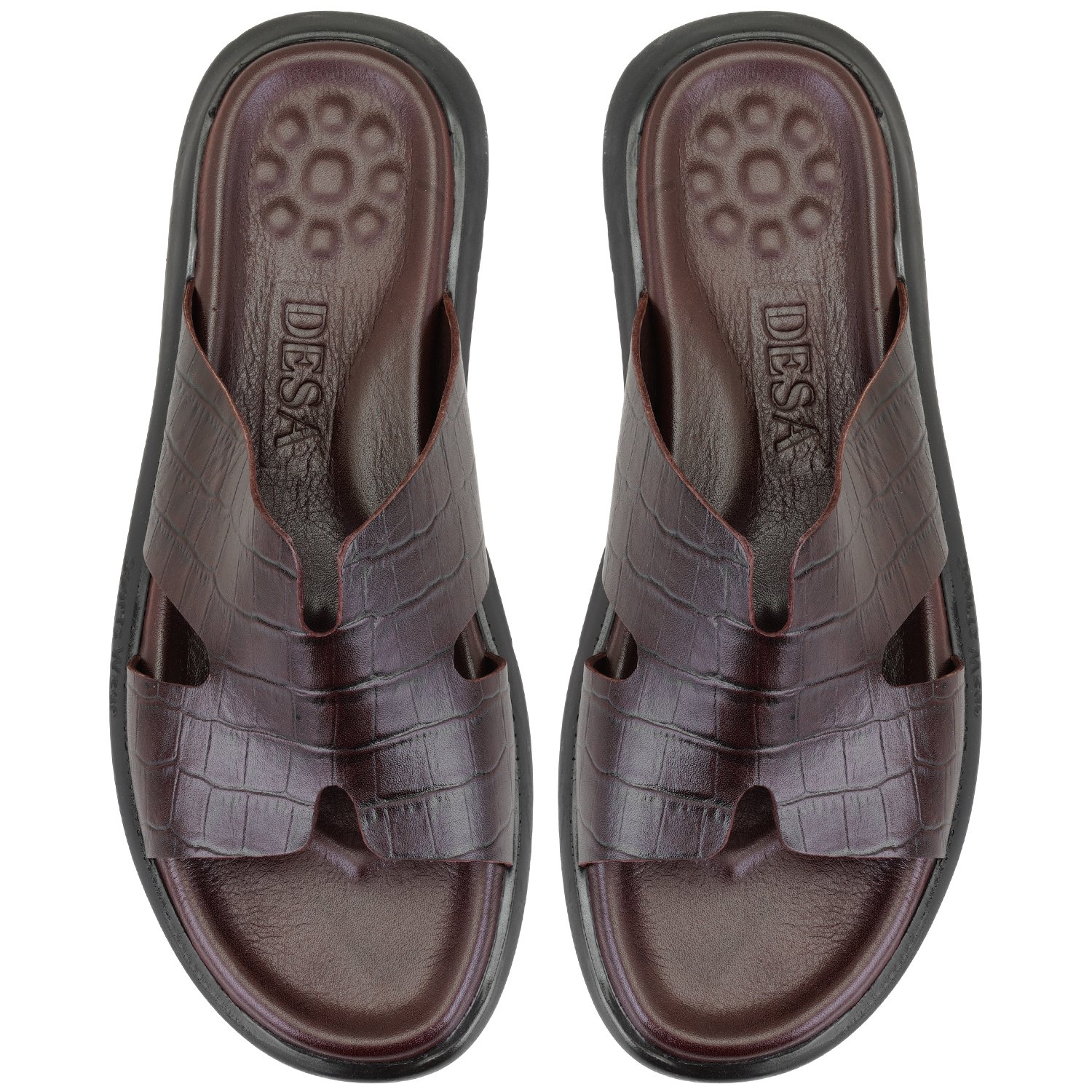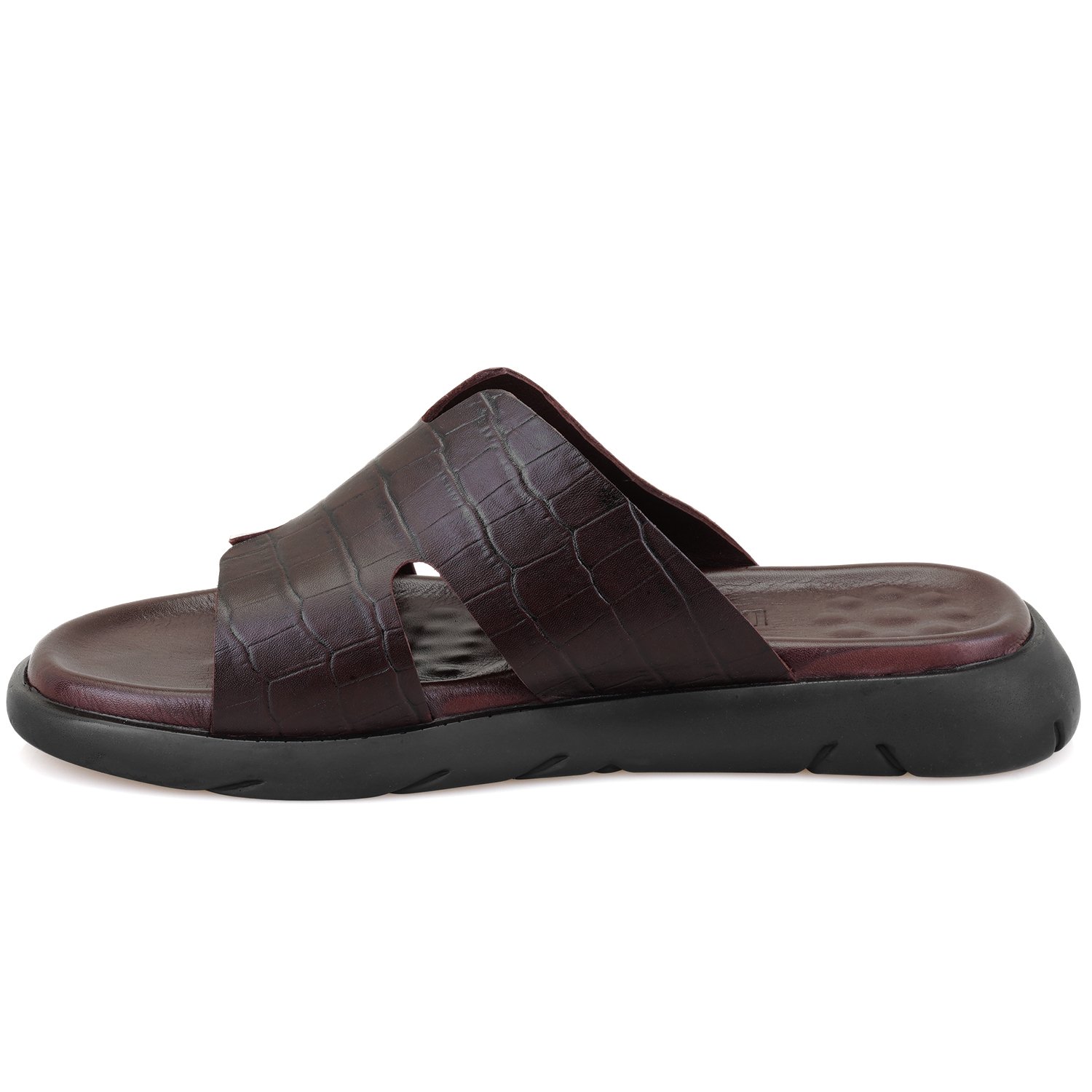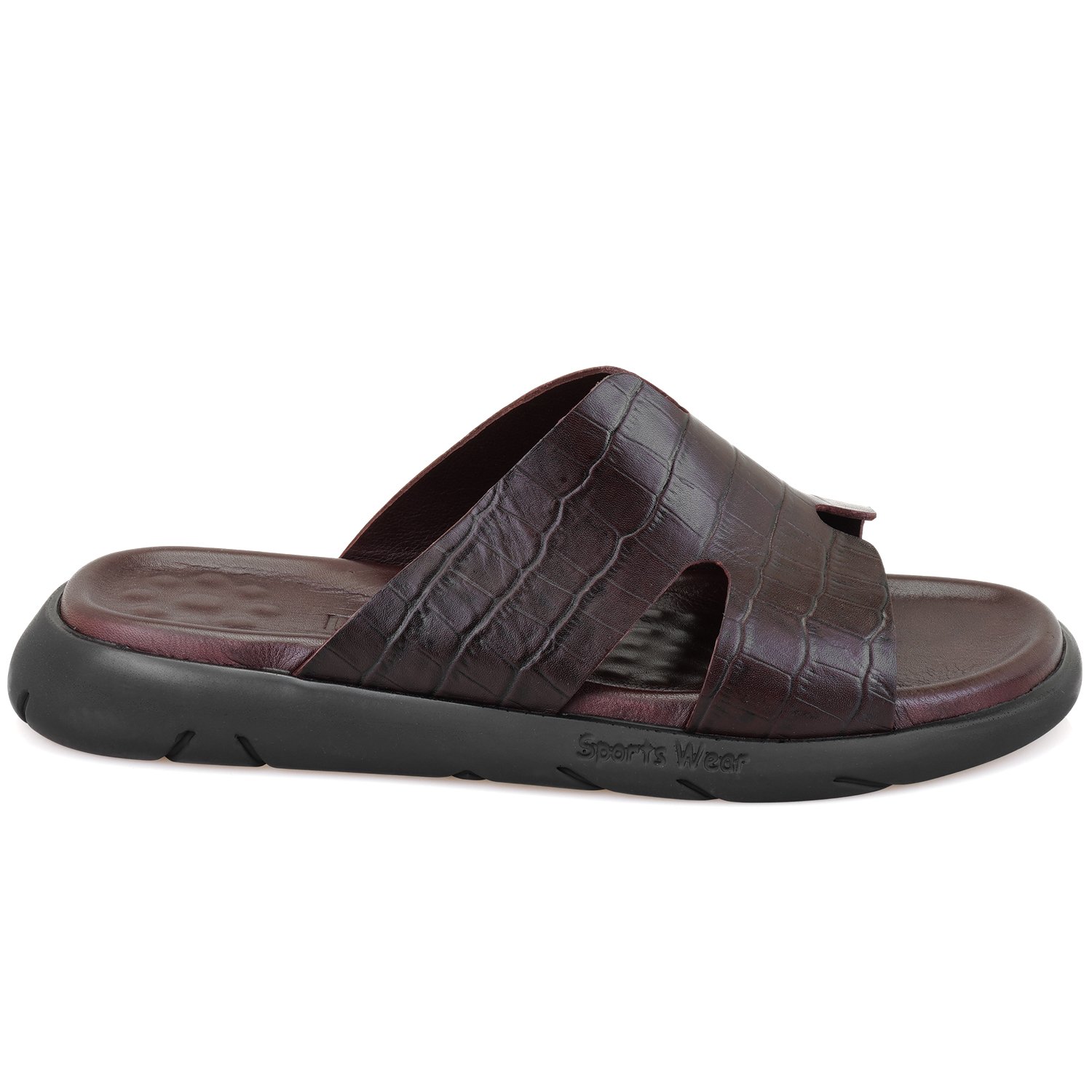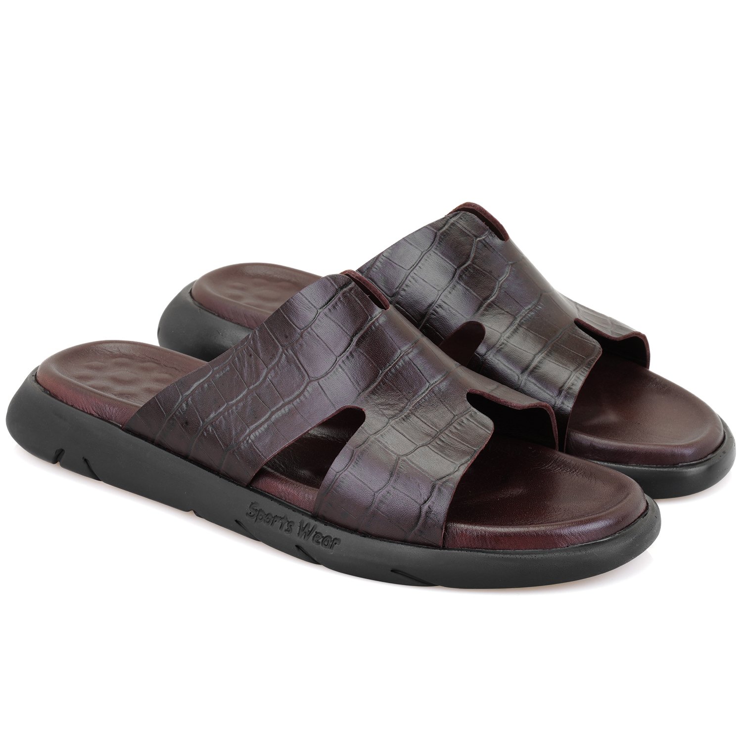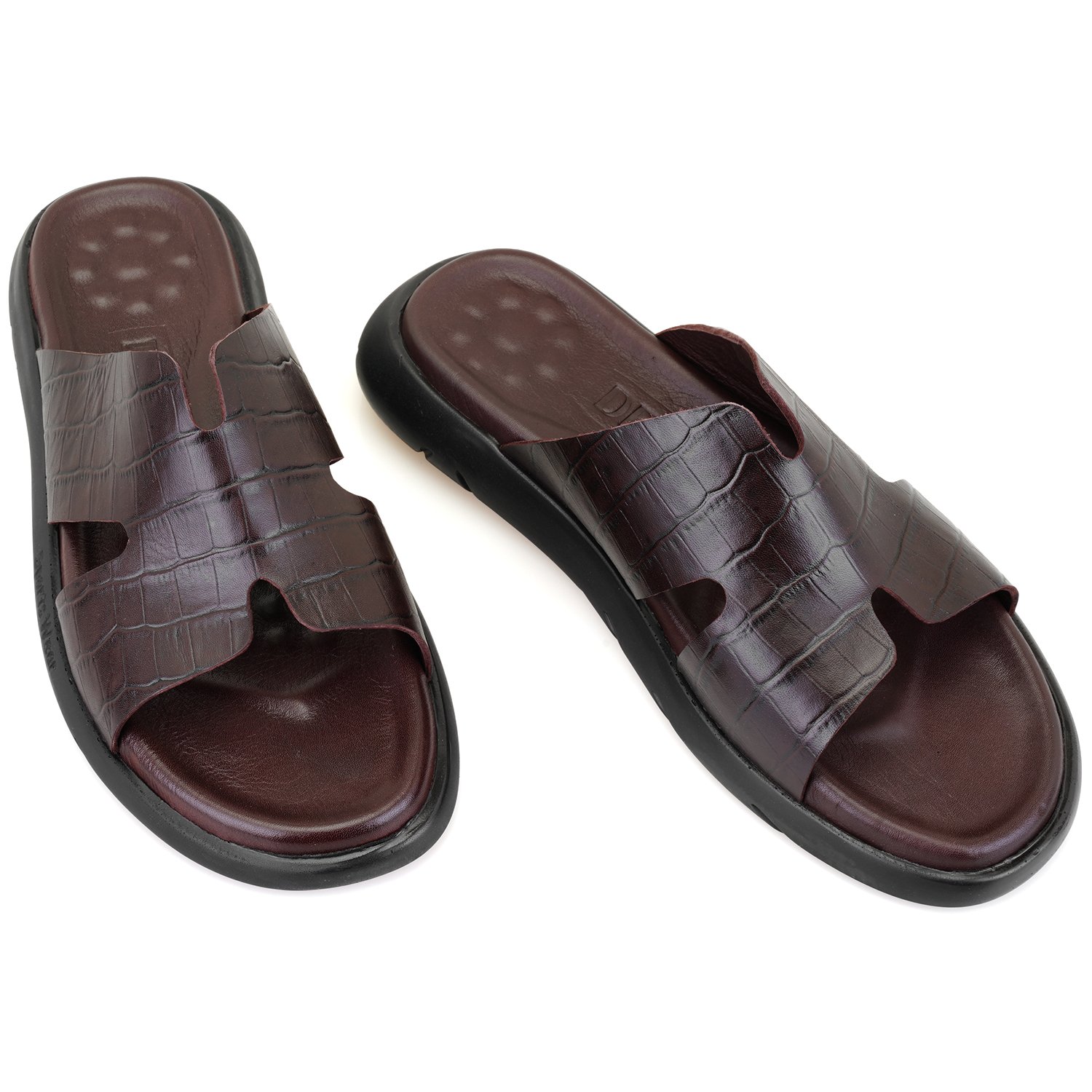 %100 deri, deri iç tabanlı, deri iç astarlı, eva tabanlı, kroko baskılı erkek terlik.