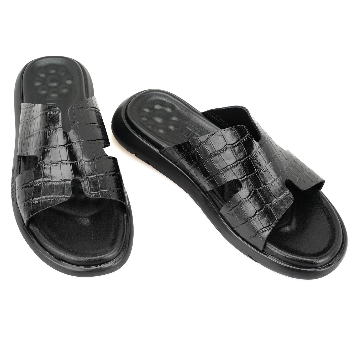 Fabiola Siyah Erkek Kroko Baskılı Deri Terlik