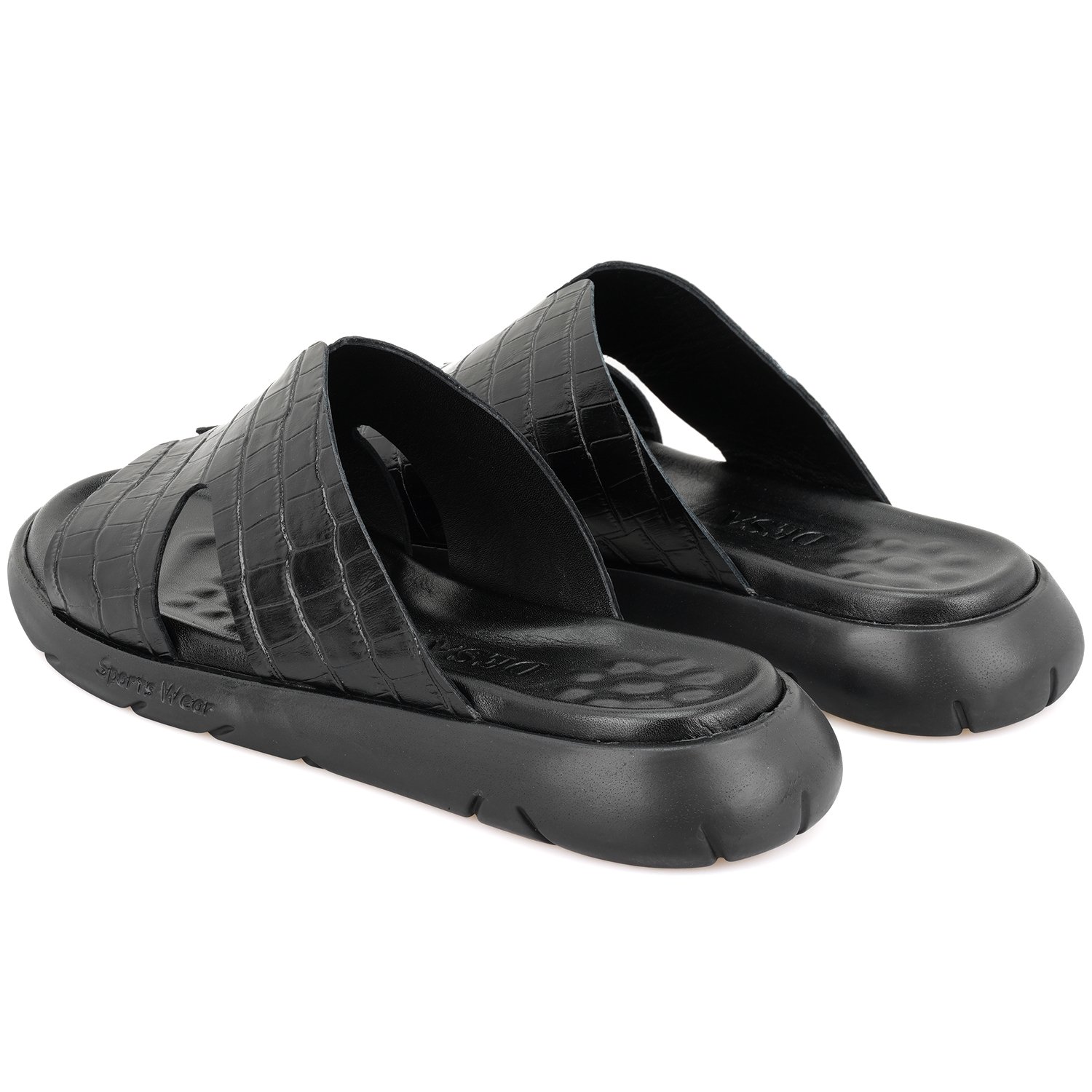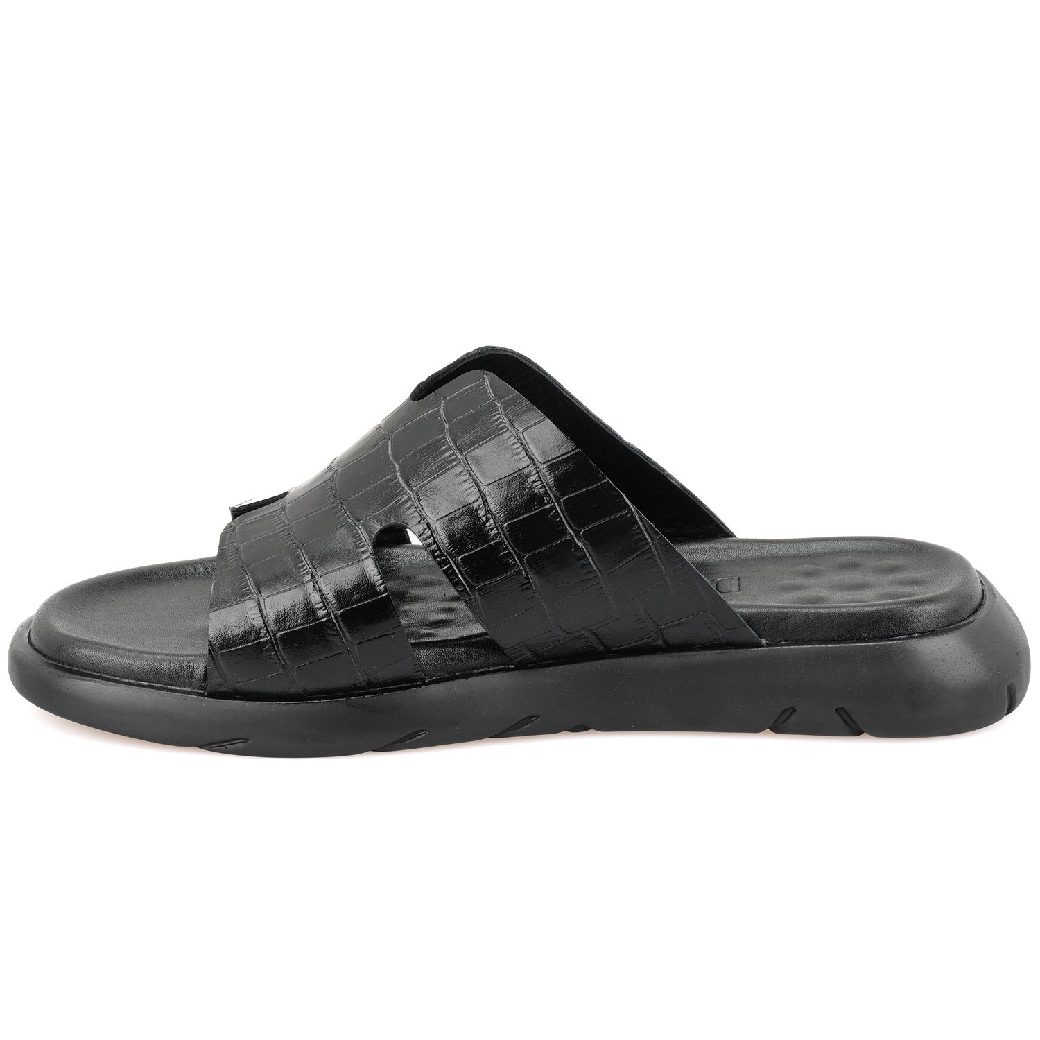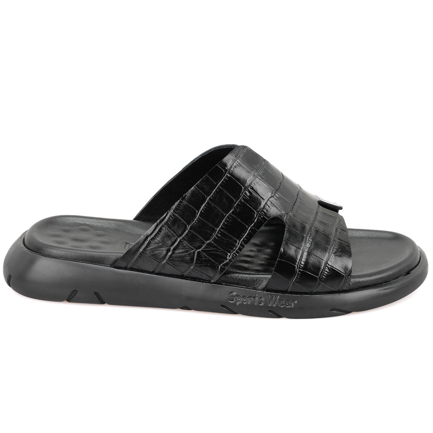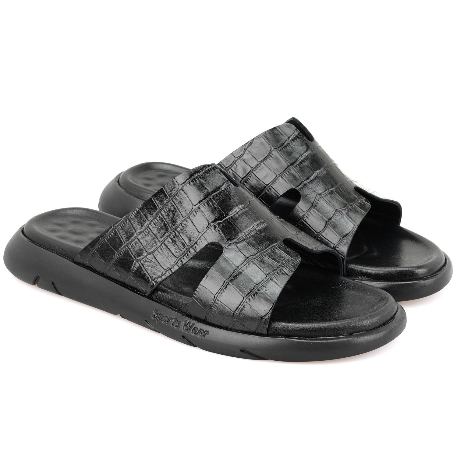 %100 deri, deri iç tabanlı, deri iç astarlı, eva tabanlı, kroko baskılı erkek terlik.