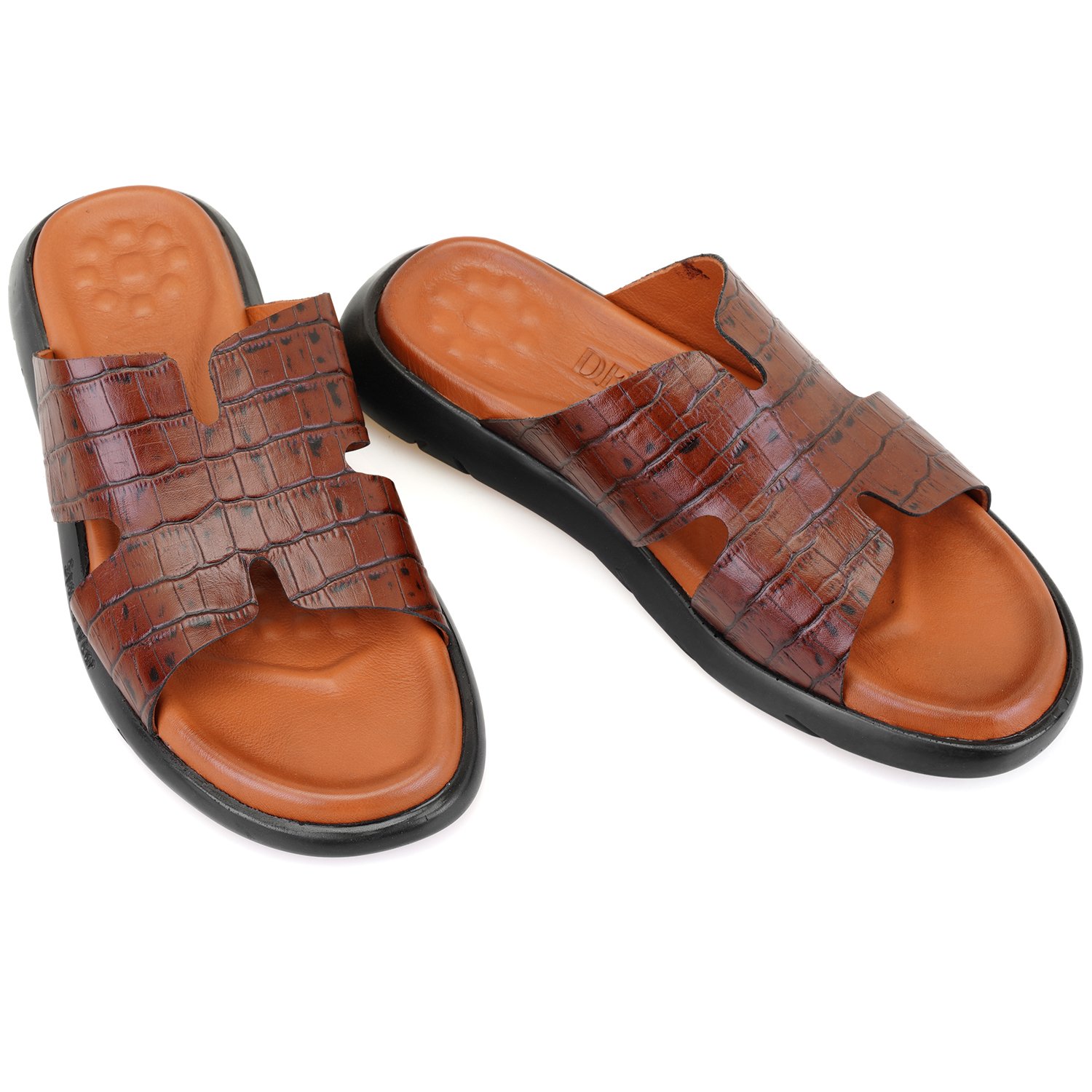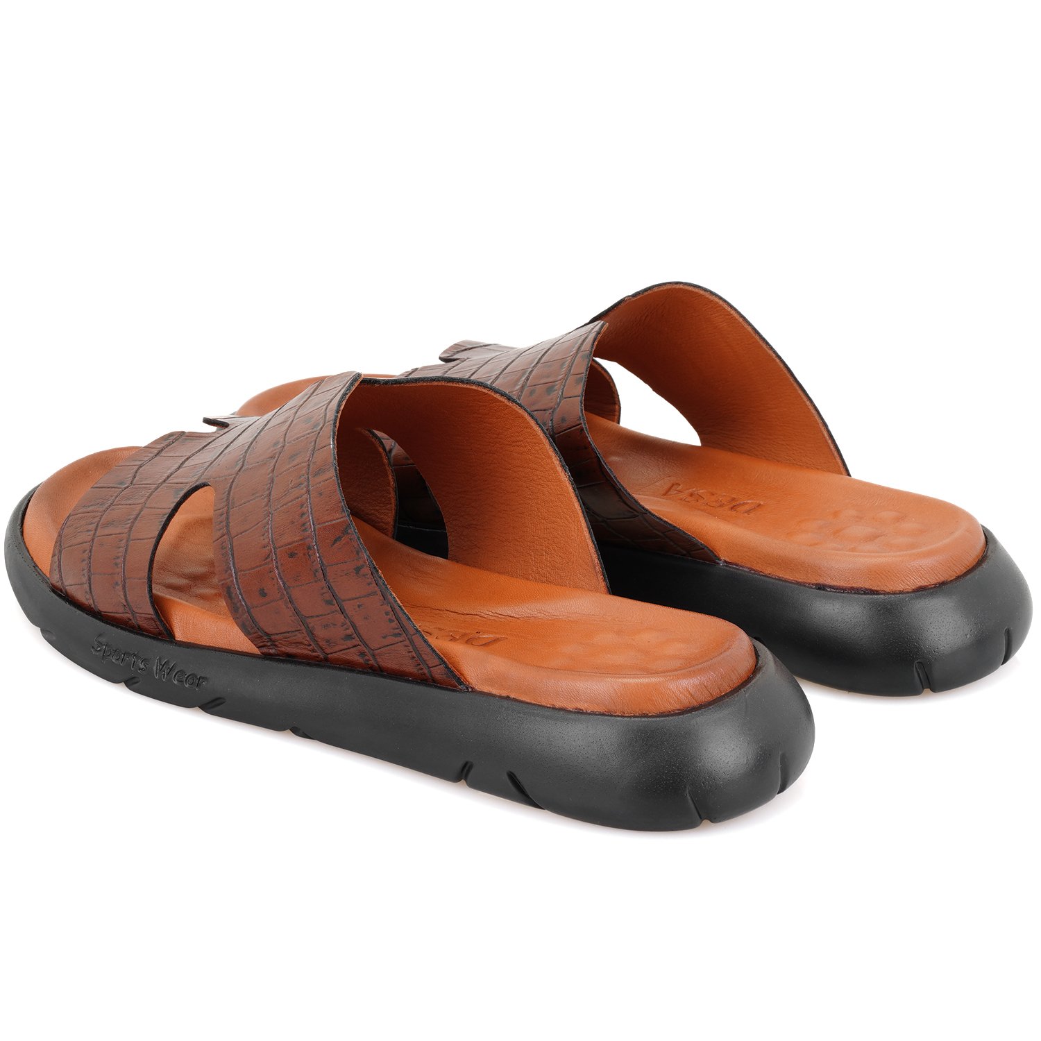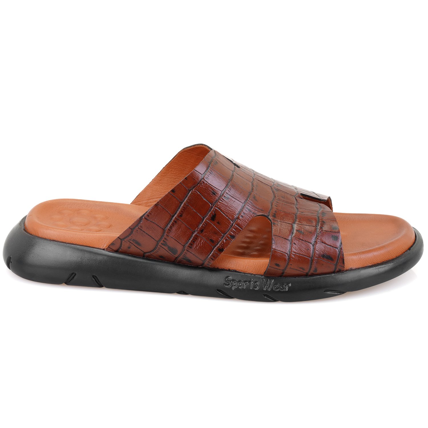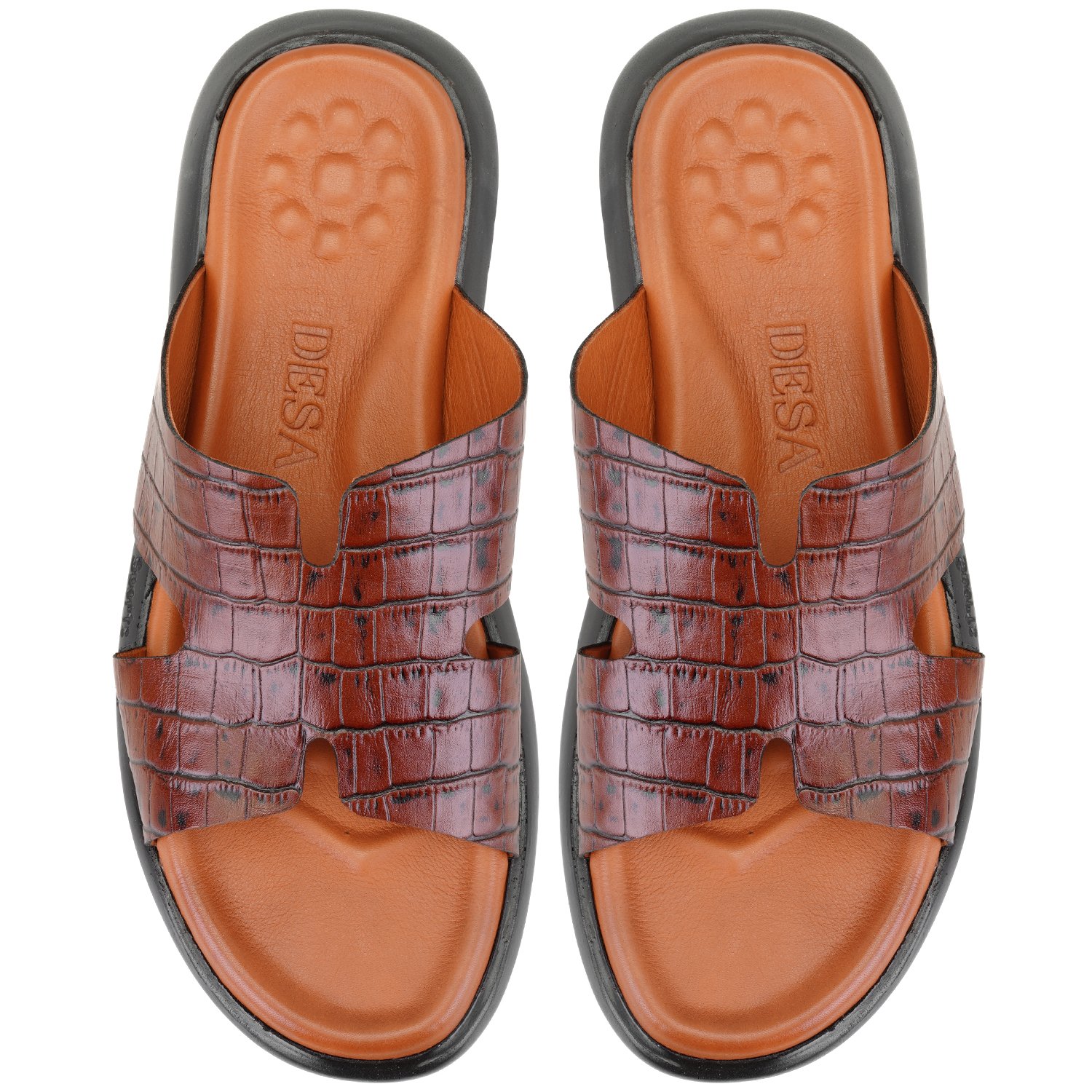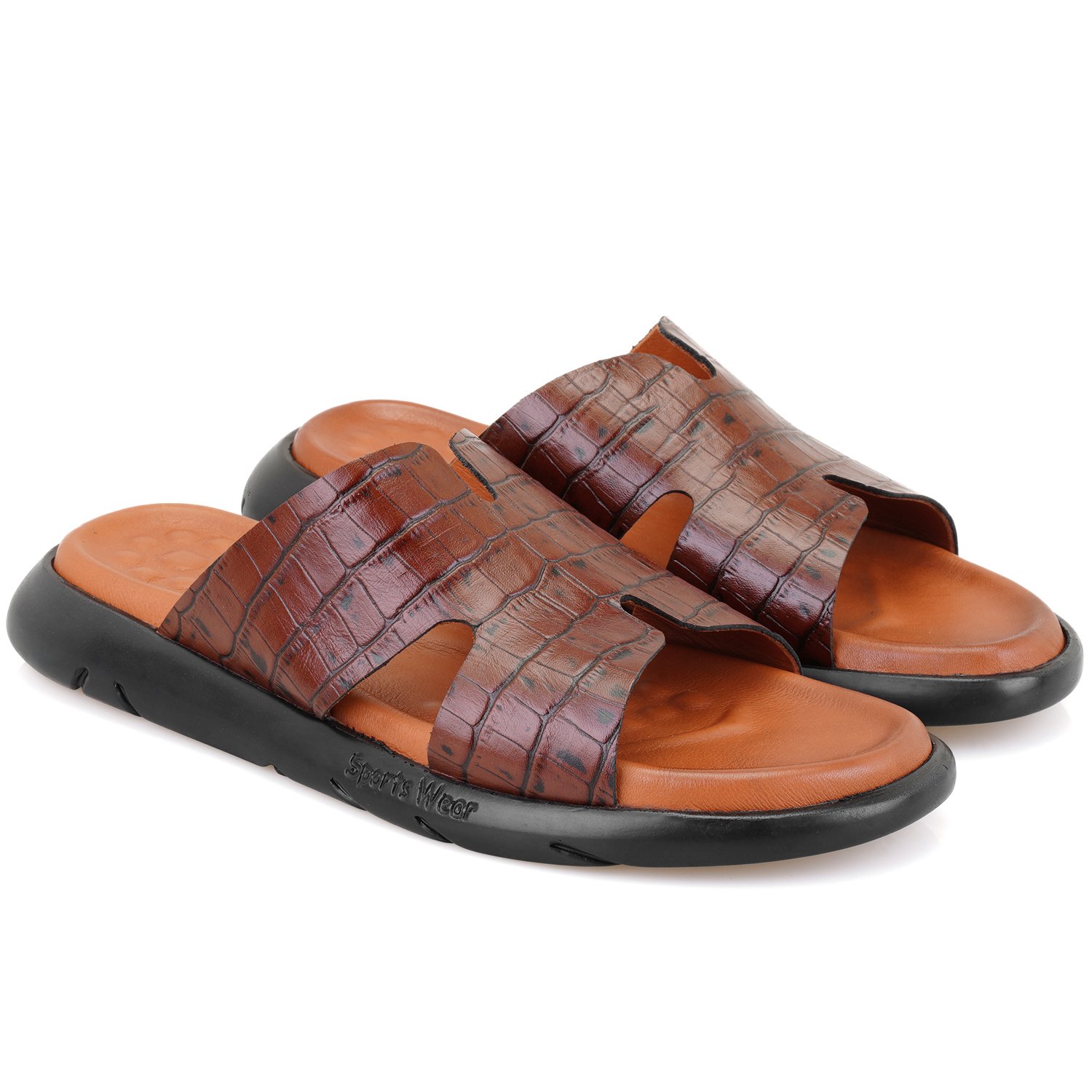 %100 deri, deri iç tabanlı, deri iç astarlı, eva tabanlı, kroko baskılı erkek terlik.