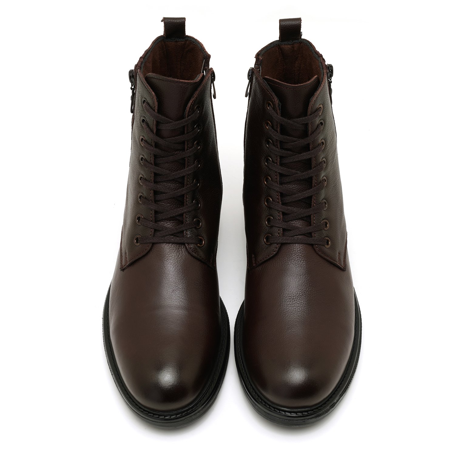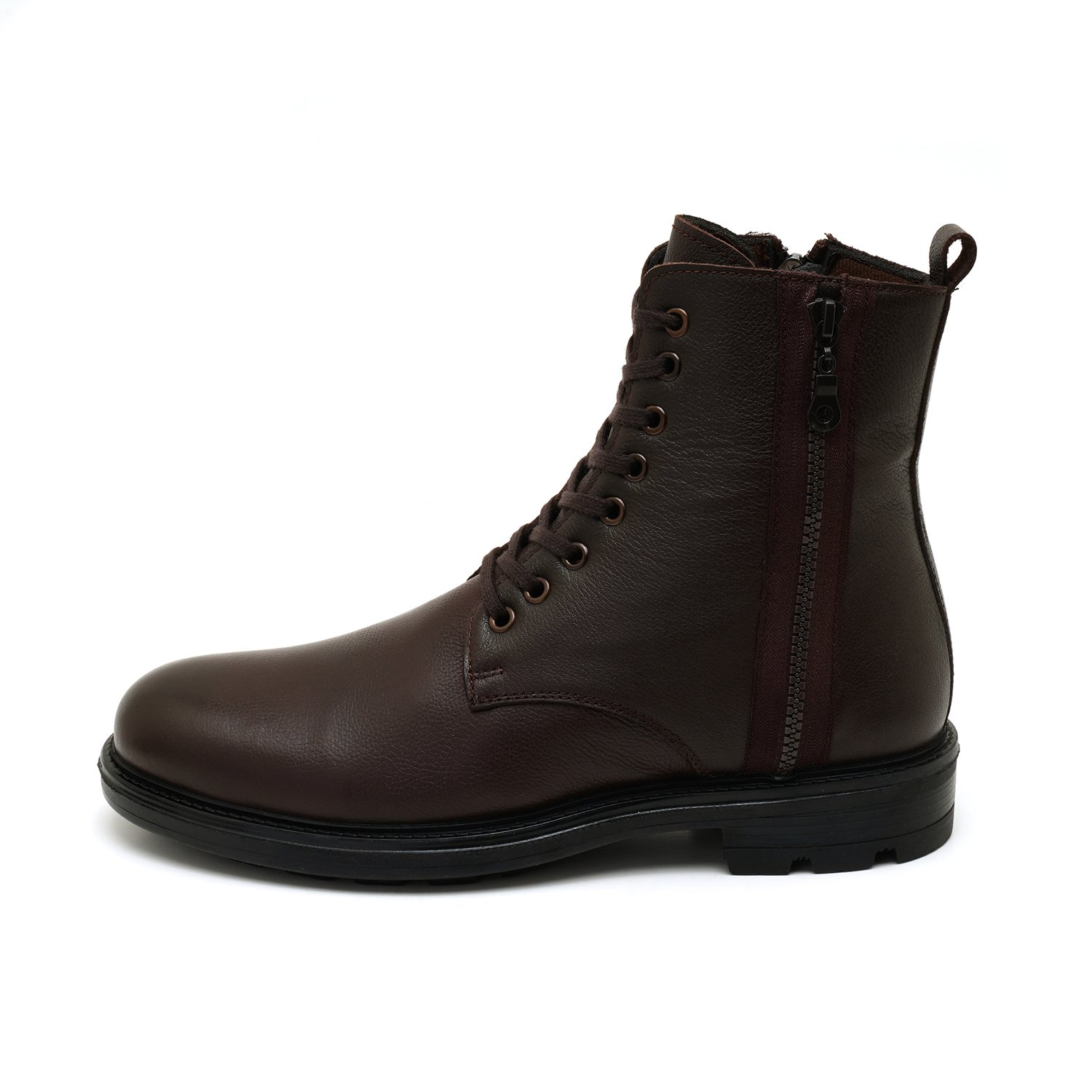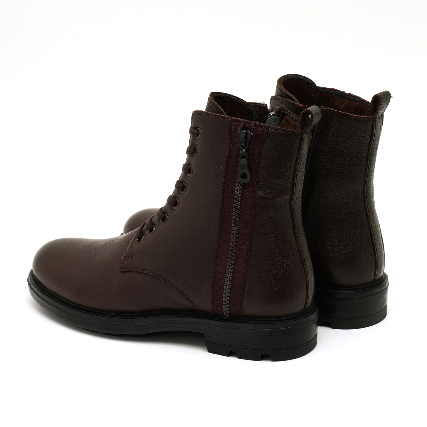 %100 deri, deri iç tabanlı, tekstil astarlı, kauçuk tabanlı bağcıklı erkek bot.