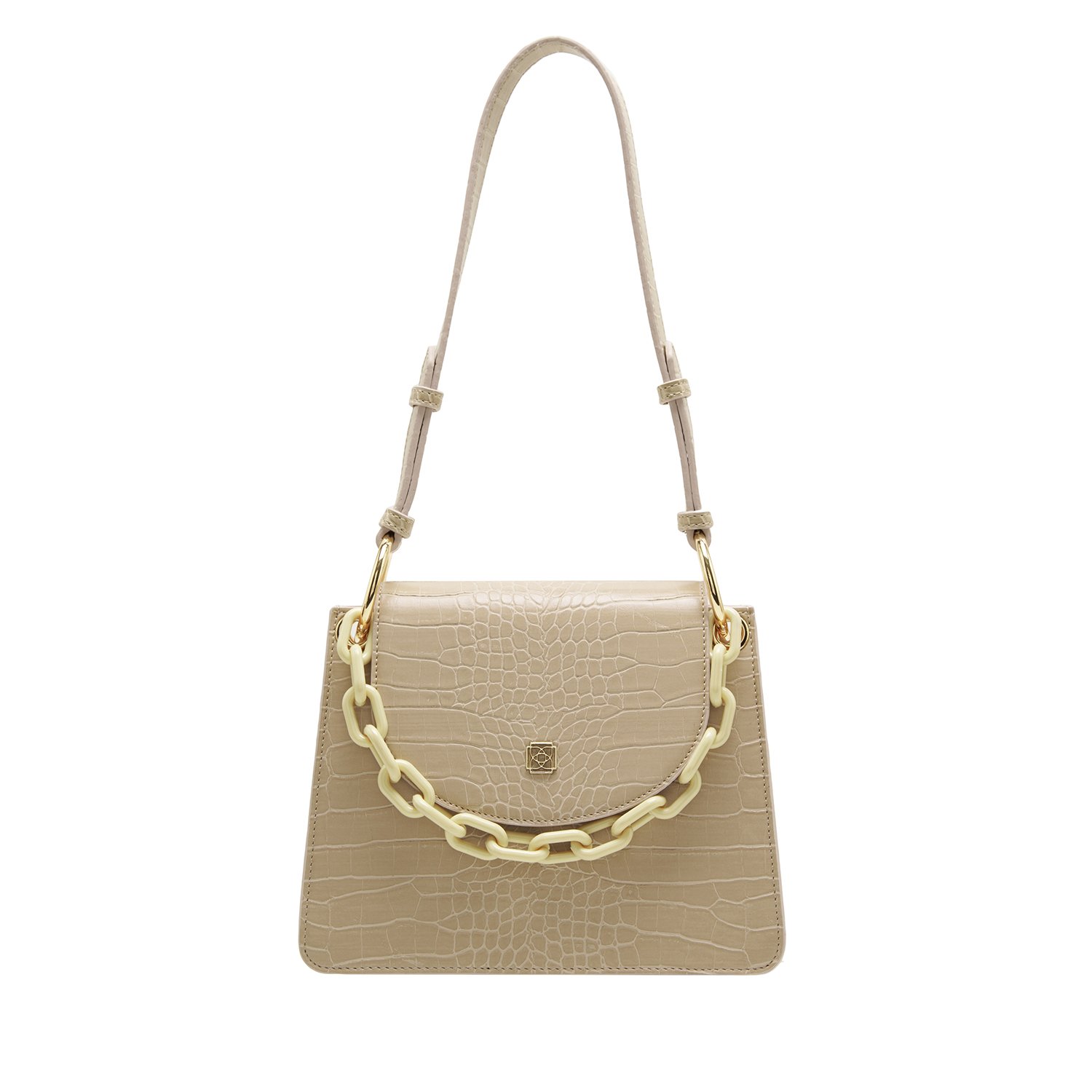 Fayetta Ekru Kadın Zincir Detaylı Omuz Çantası