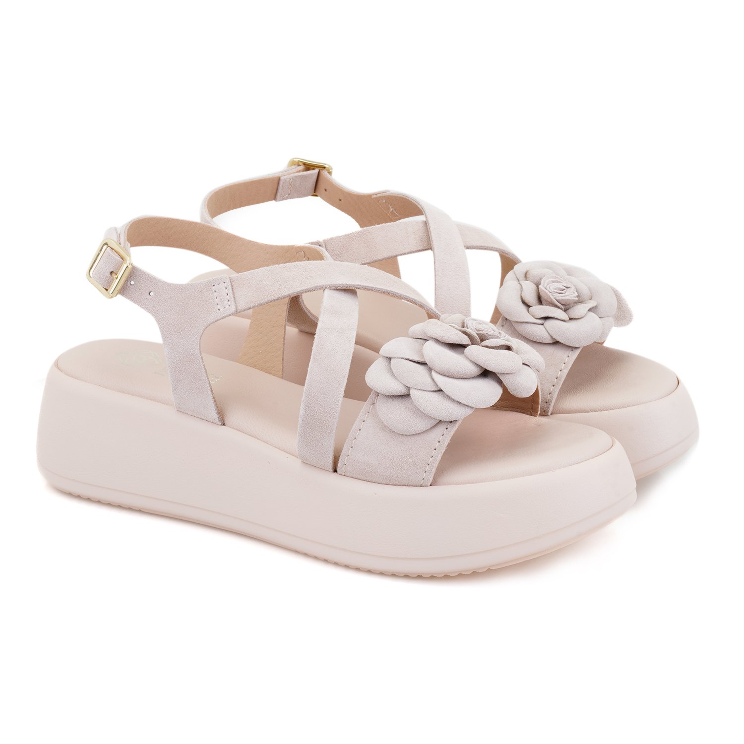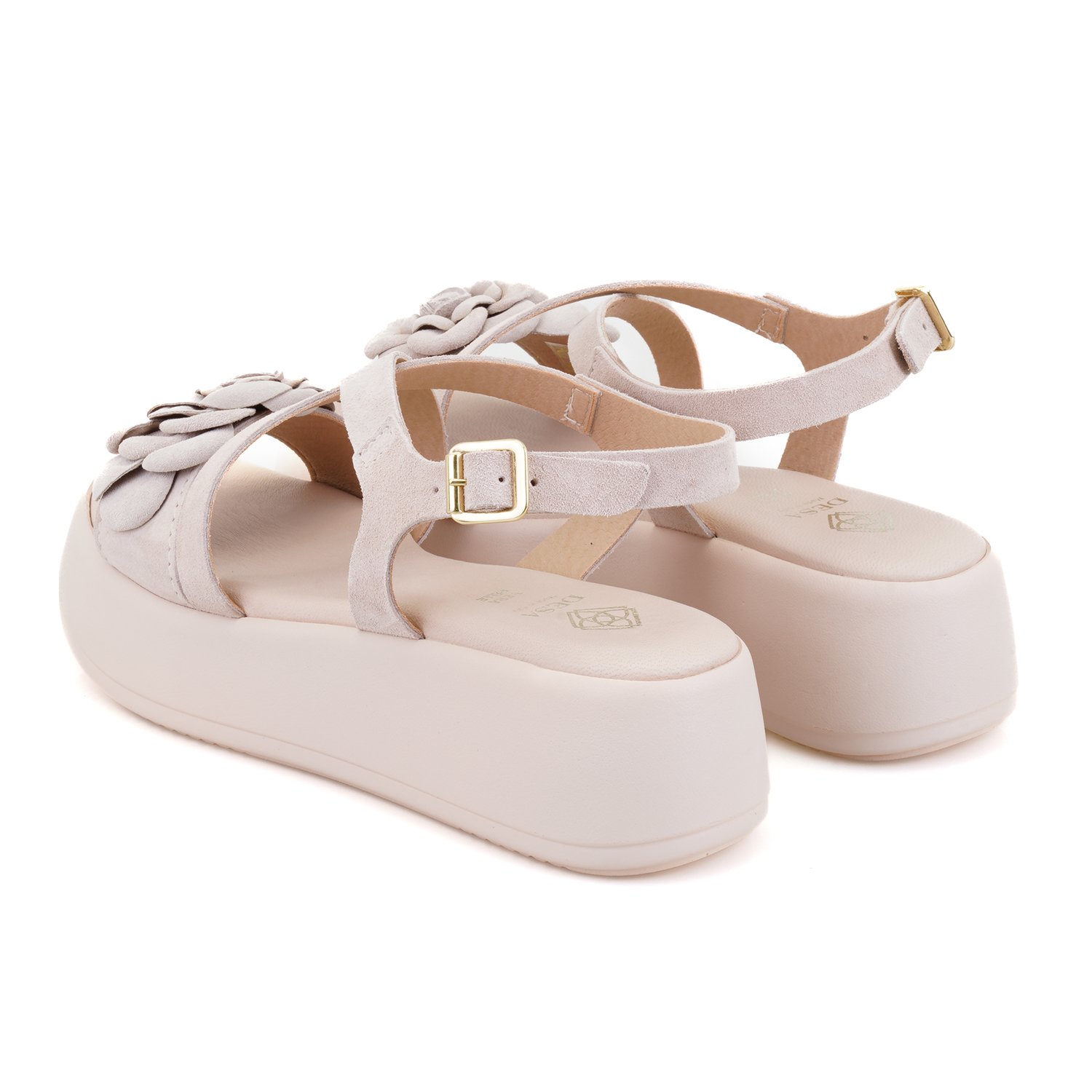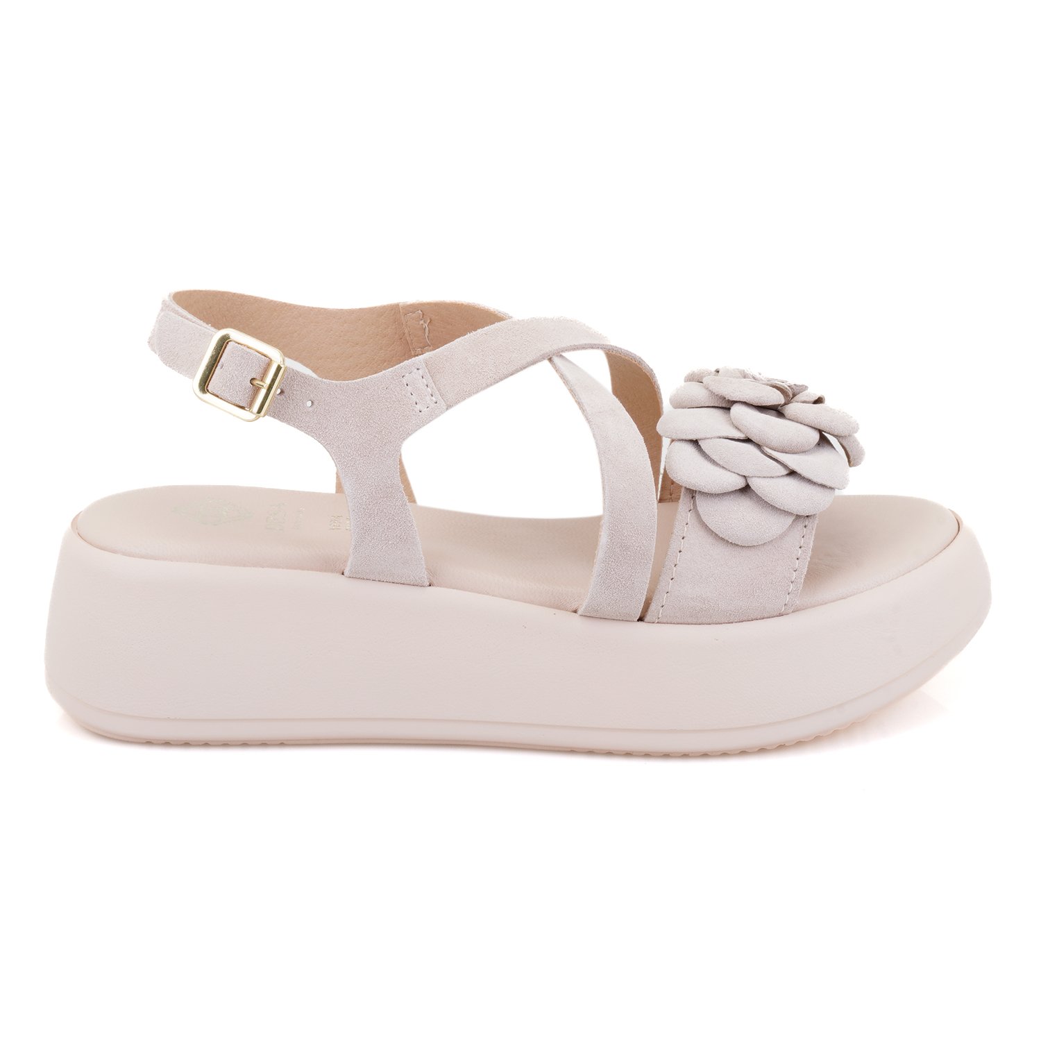 %100 süet deri, deri iç tabanlı, deri iç astarlı, deri çiçek detaylı, pu tabanlı, kadın sandalet.