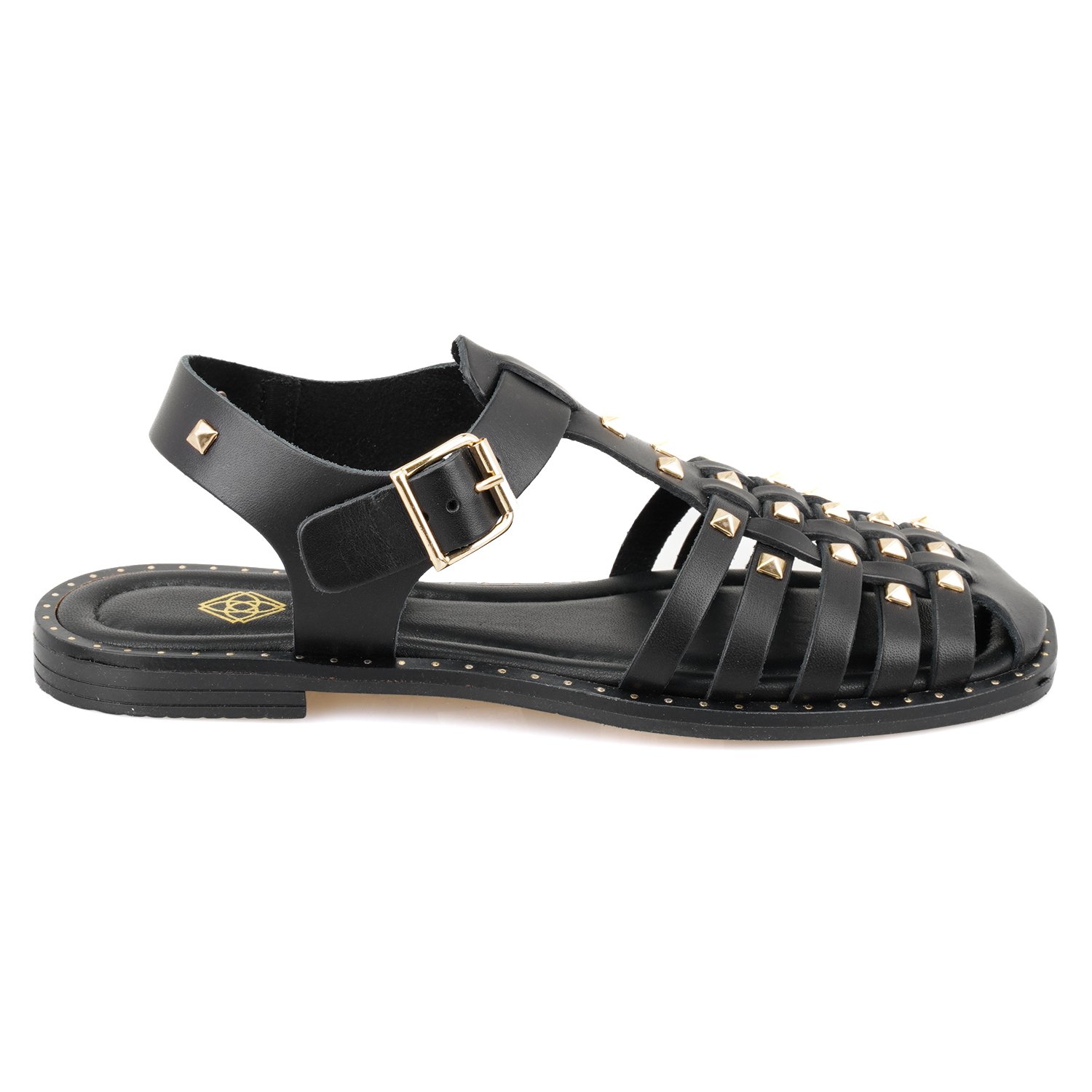 Kadınların yaz aylarında şık ve rahat bir tercihleri olan sandaletler arasında yer alan bu ürün, %100 deri malzemeden üretilmiştir. Hem iç astar hem de iç tabanı deriyle kaplanmış olan sandalet, ayak sağlığına katkı sağlar. Ayarlanabilir metal tokası ve metal pim detayları ile sandaletin tasarımı oldukça dikkat çekicidir. TPU tabanı sayesinde ayakkabı, ayaklarınızın gün boyu rahat etmesini sağlar. 1.5 cm yüksekliğindeki tabanı ile sandalet, hem şık hem de konforlu bir kullanım sunar. Bu ürün, hem günlük kullanıma hem de özel günlerde kullanıma uygun bir seçenektir.