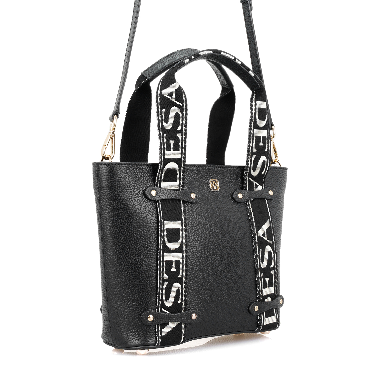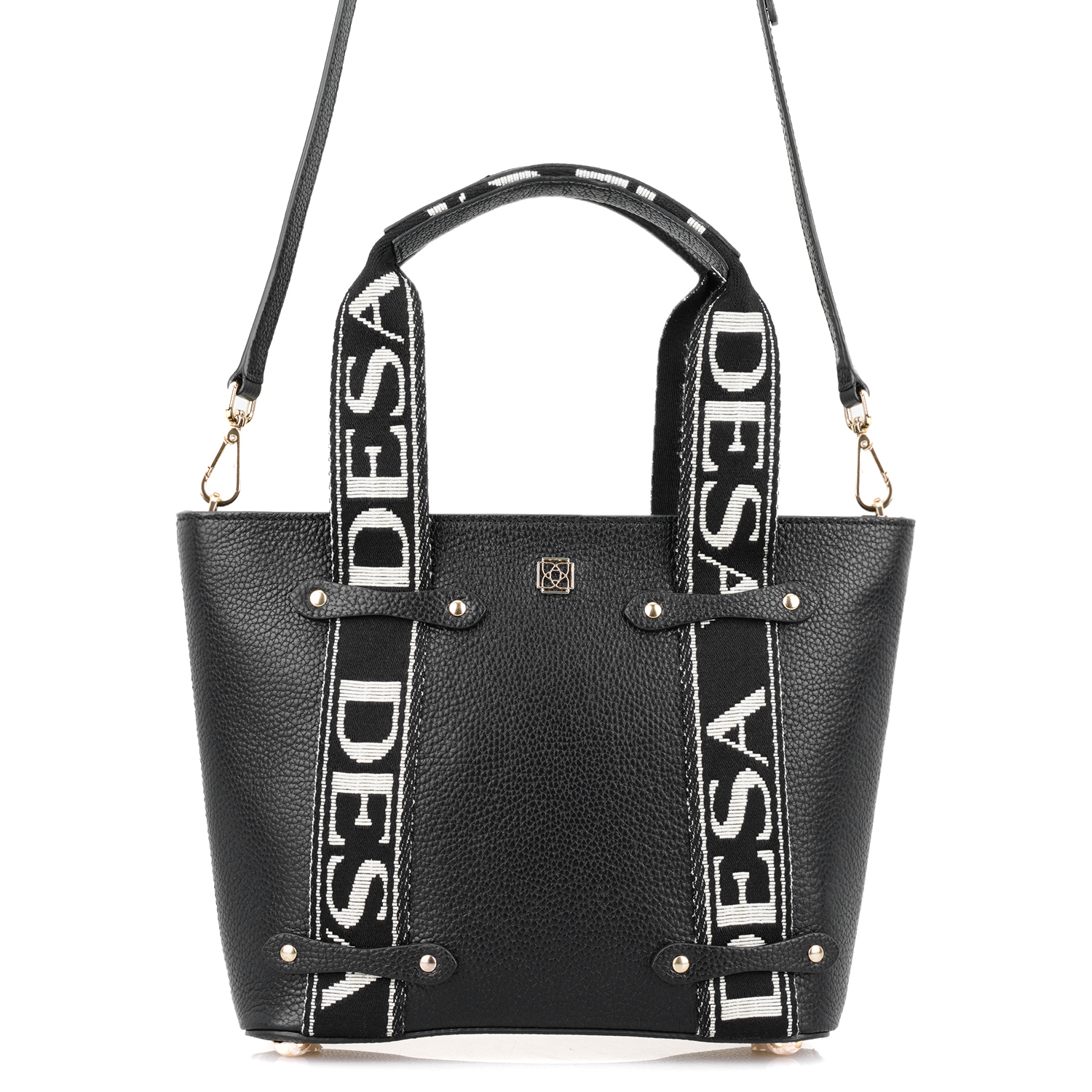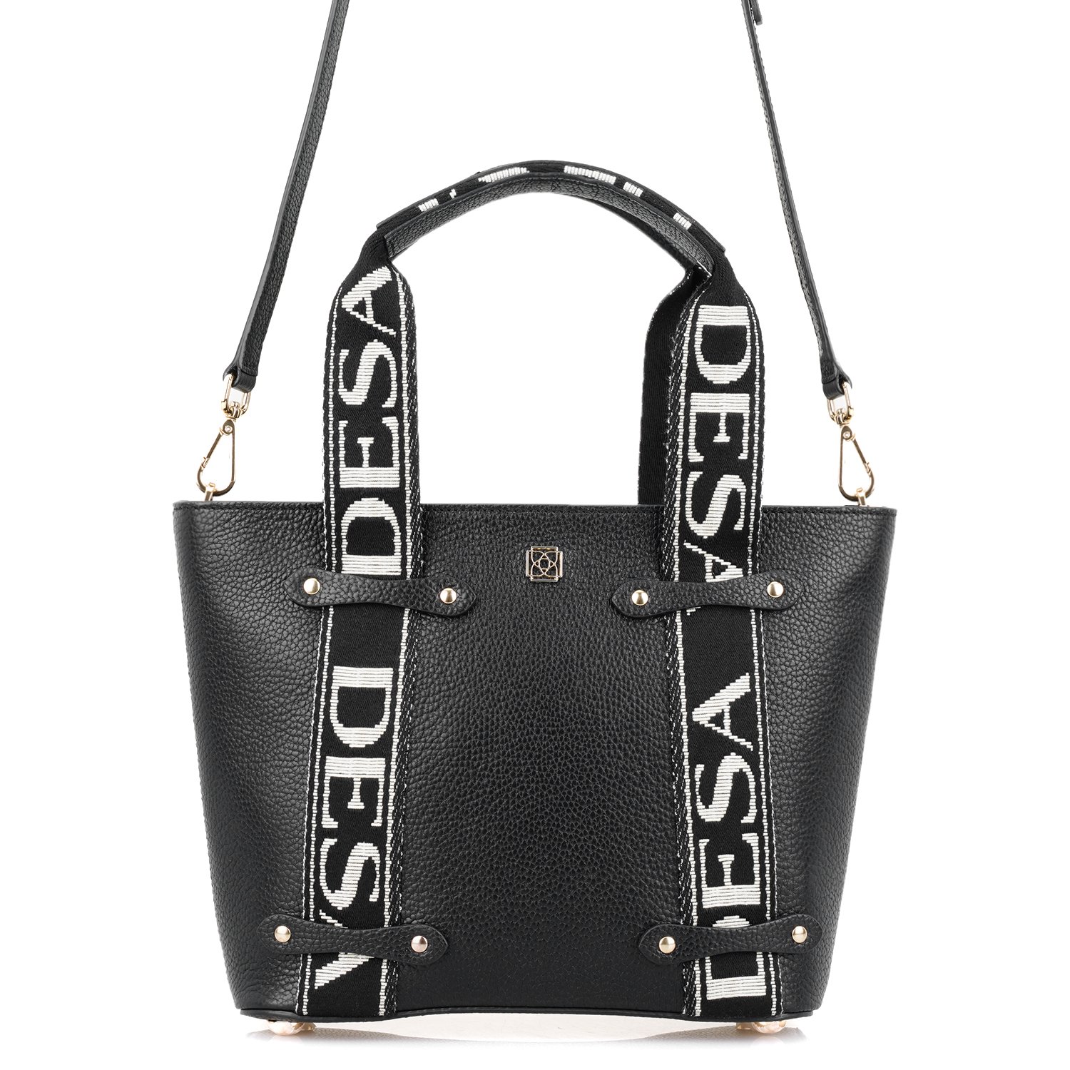 Flieder Siyah Kadın Desa Logo Askılı Deri El Çantası