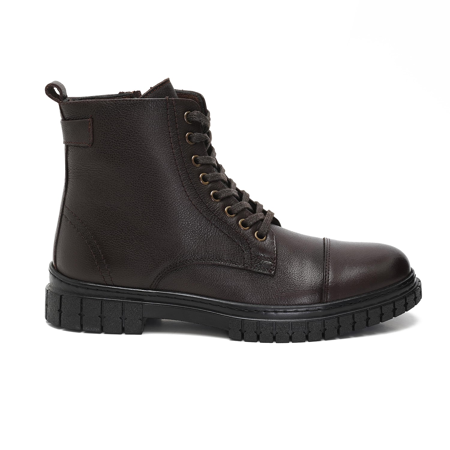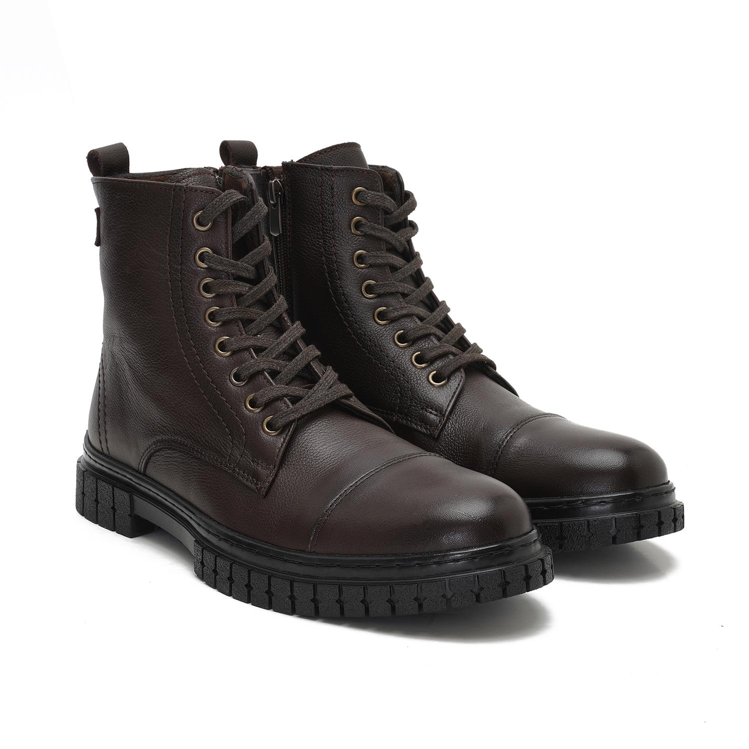 %100 deri, deri iç tabanlı, tekstil astarlı, kauçuk tabanlı bağcıklı erkek bot.