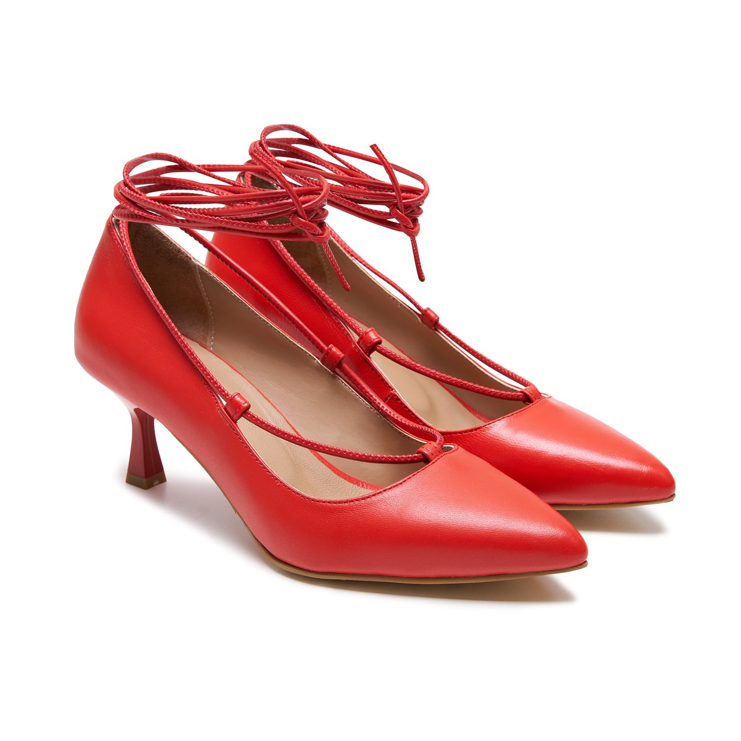 Napa deri,deri iç tabanlı, bilekten bağlama detaylı, neolit tabanlı kadın klasik ayakkabı.