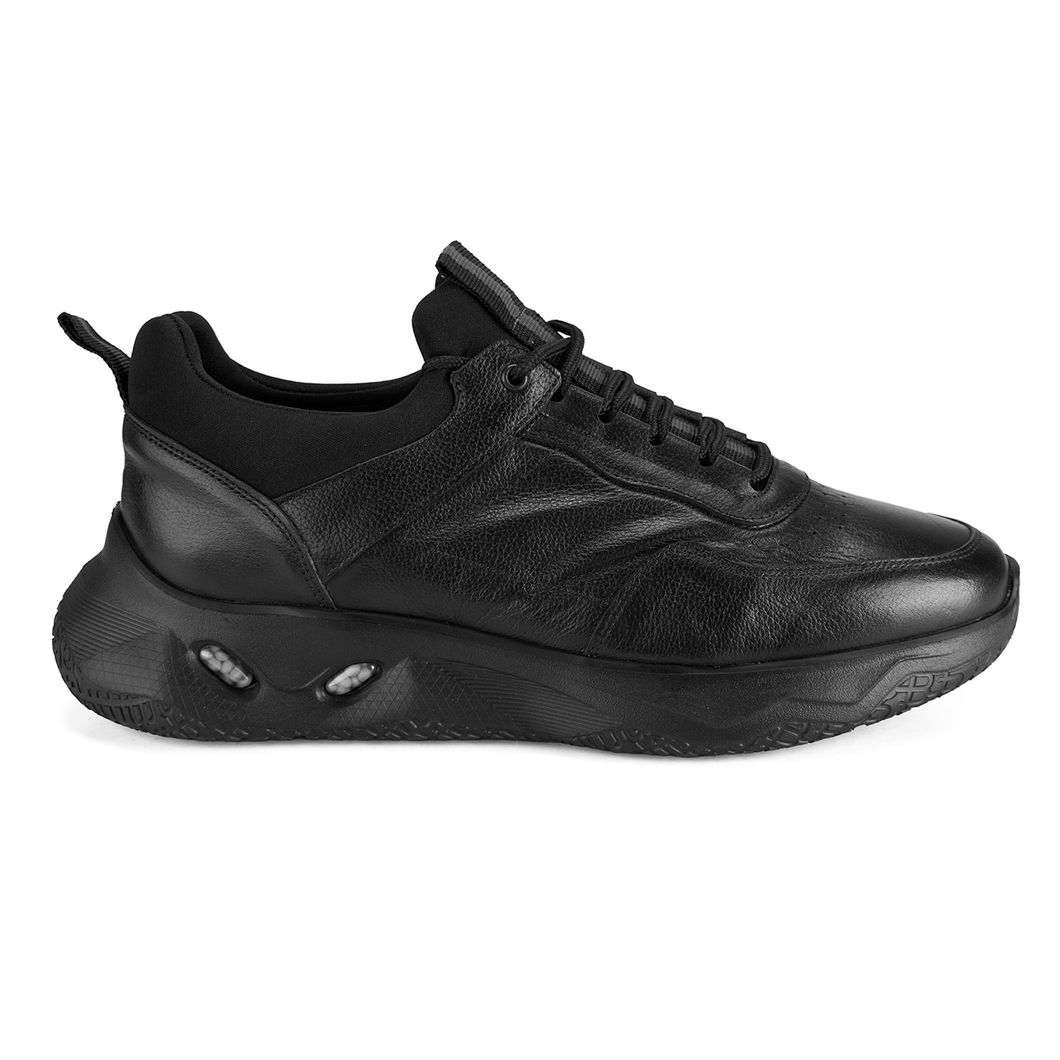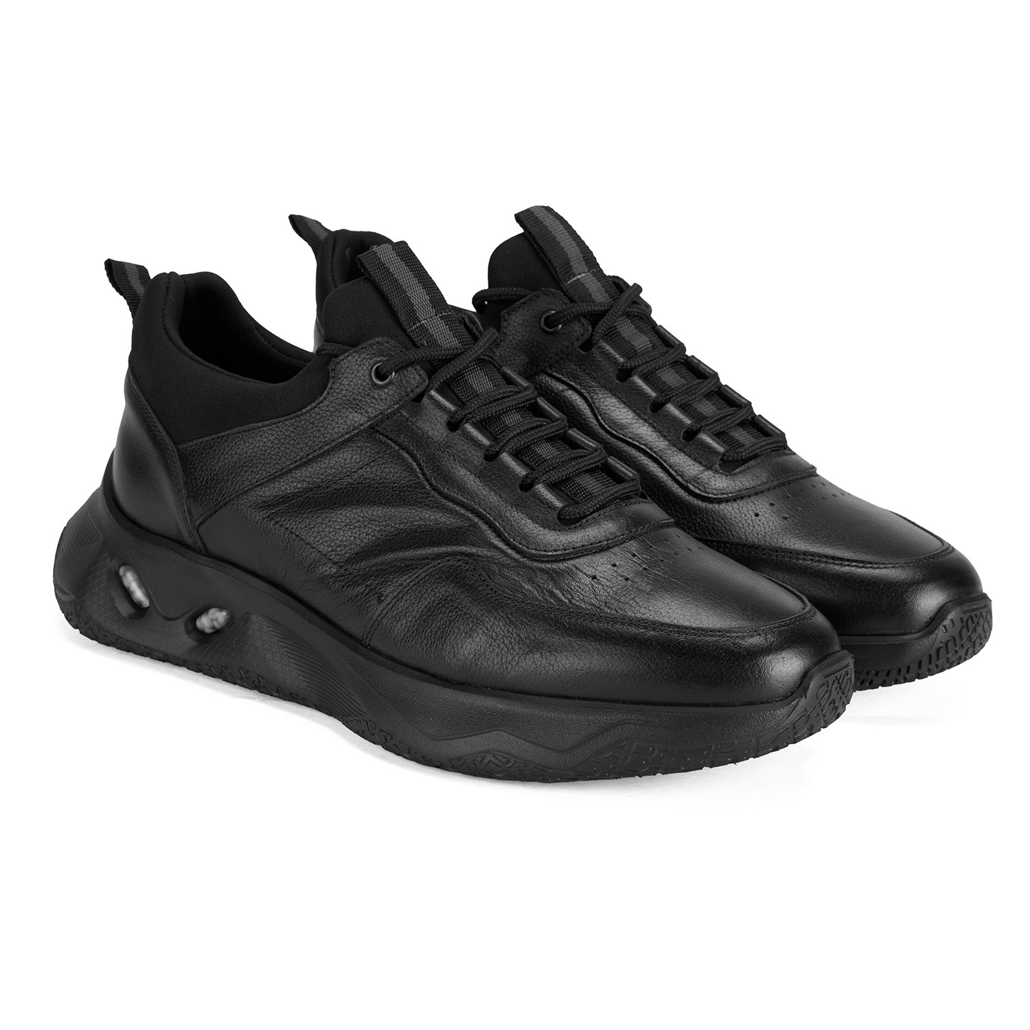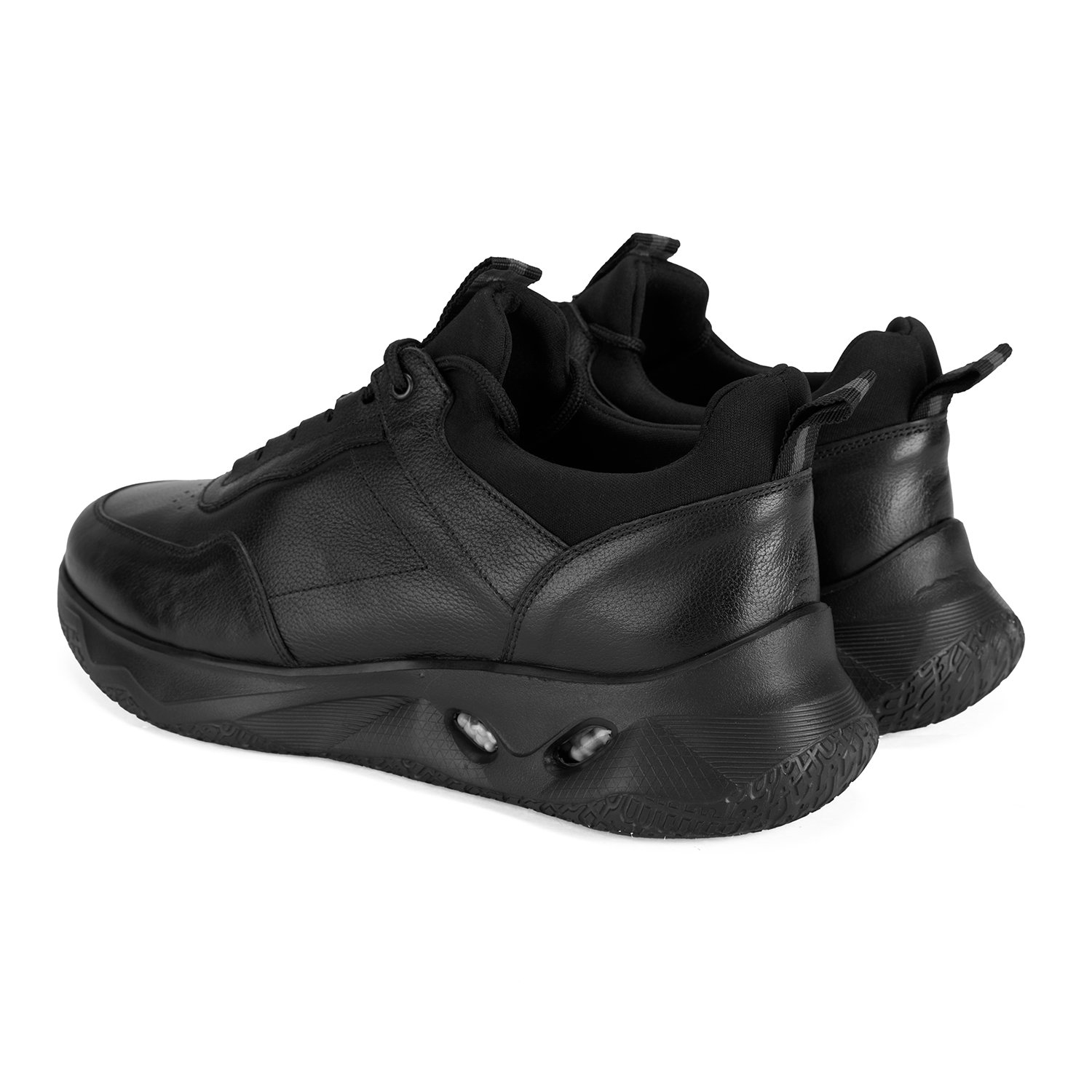 %100 deri, deri iç tabanlı, deri astarlı, eva tabanlı, stretch detaylı, bağcıklı erkek spor ayakkabı.