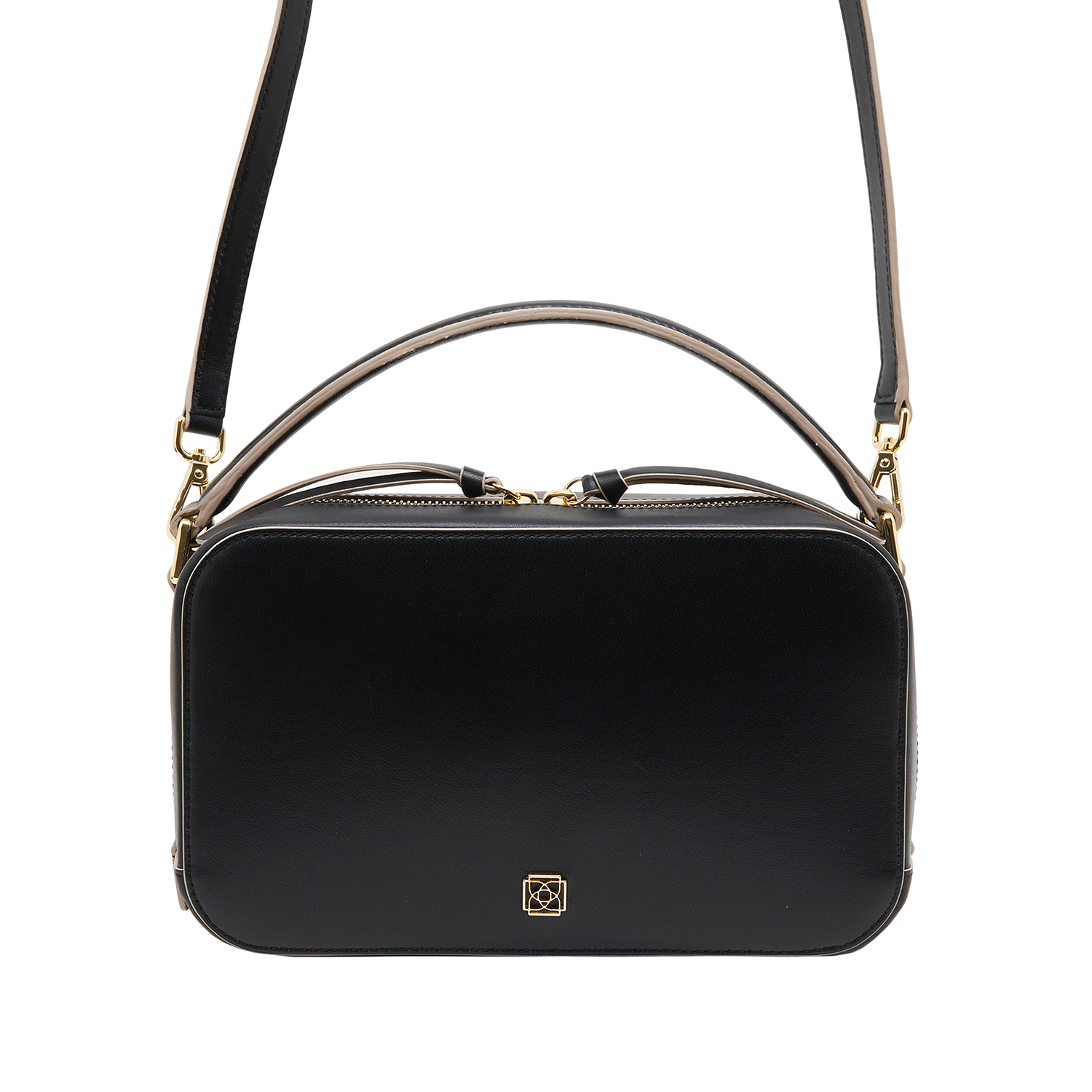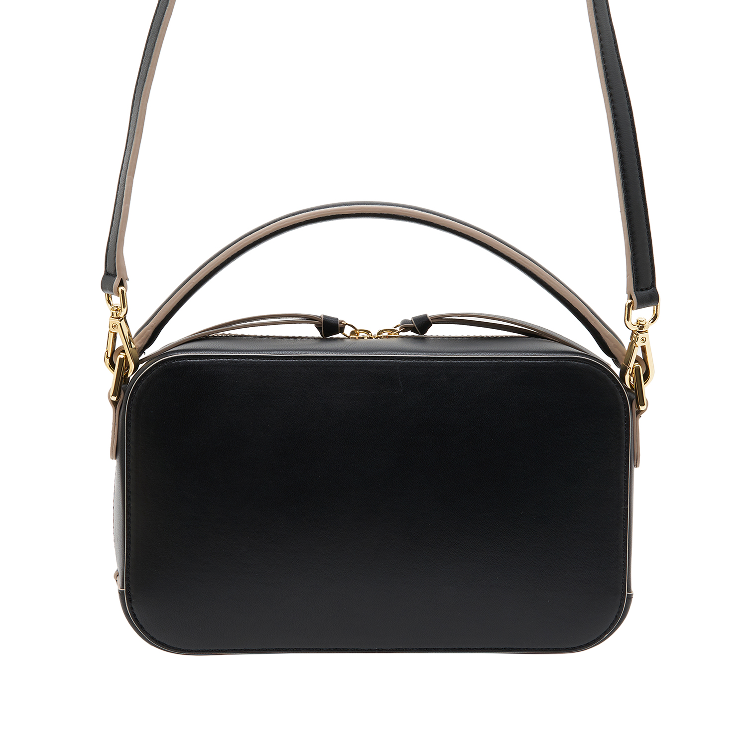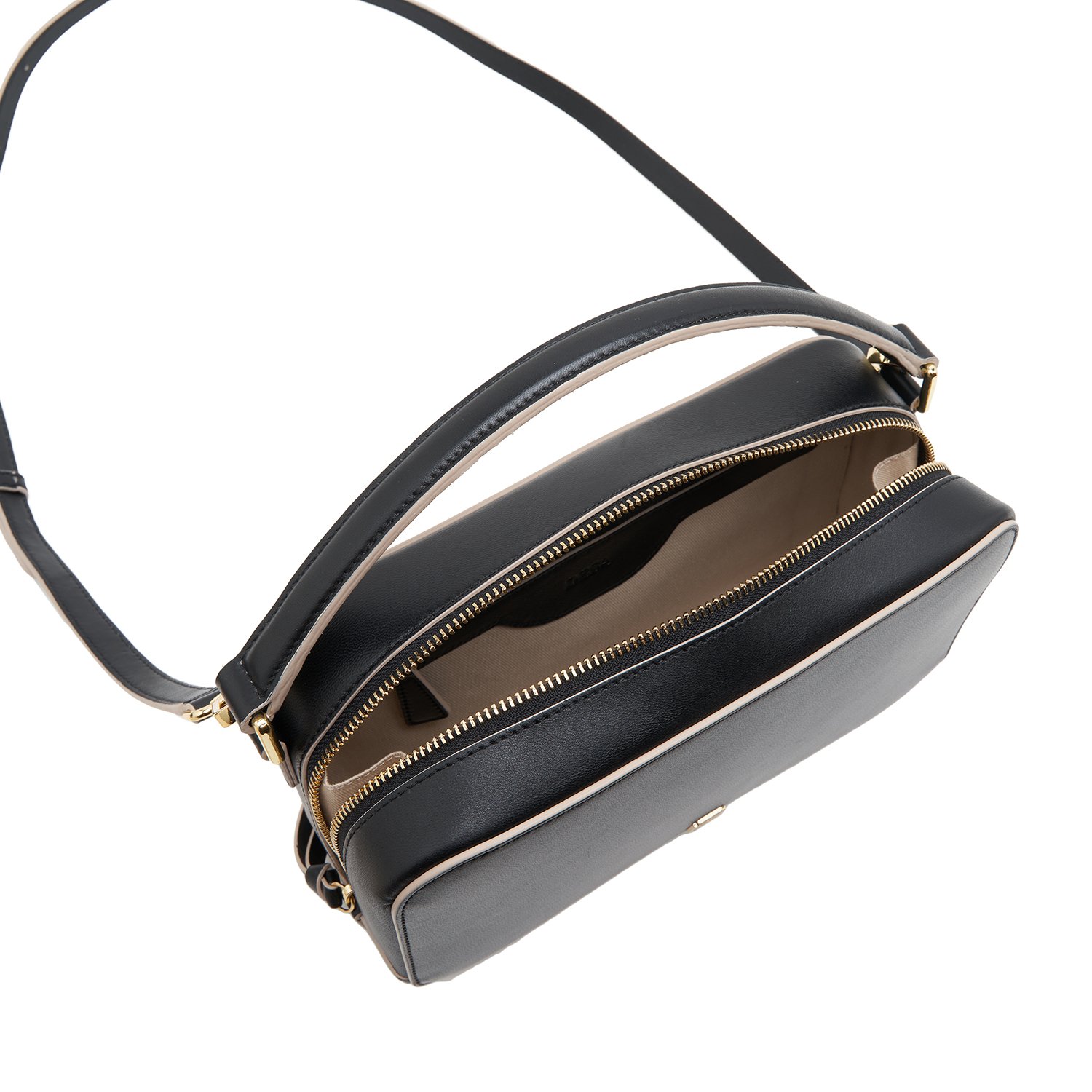 Kadın çantasının içinde fermuarlı cep, kartlık ve omuz askısı da mevcuttur.