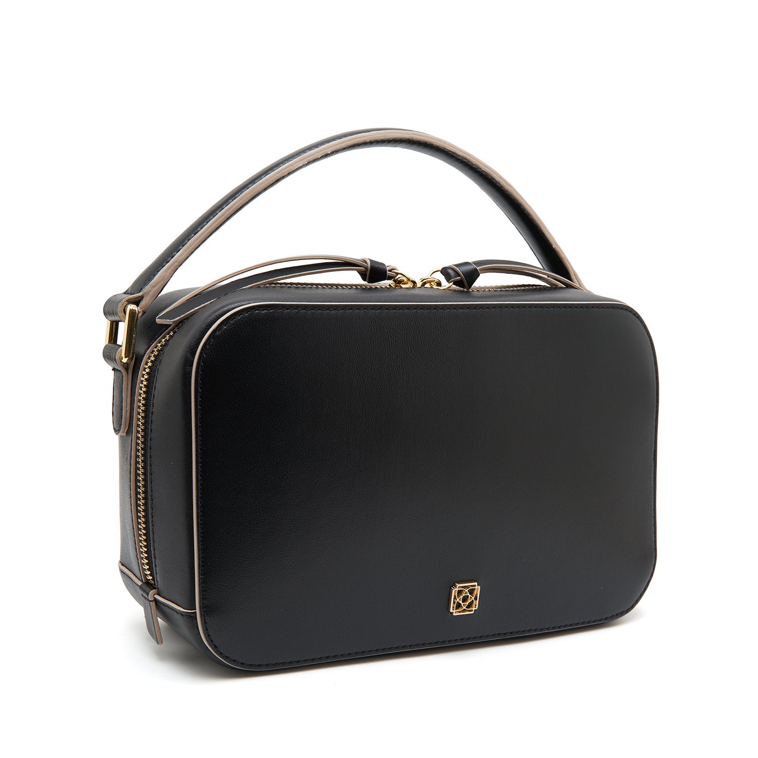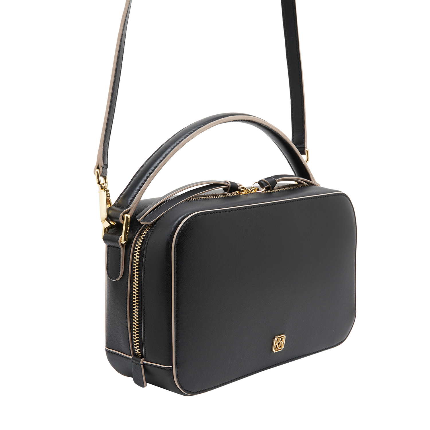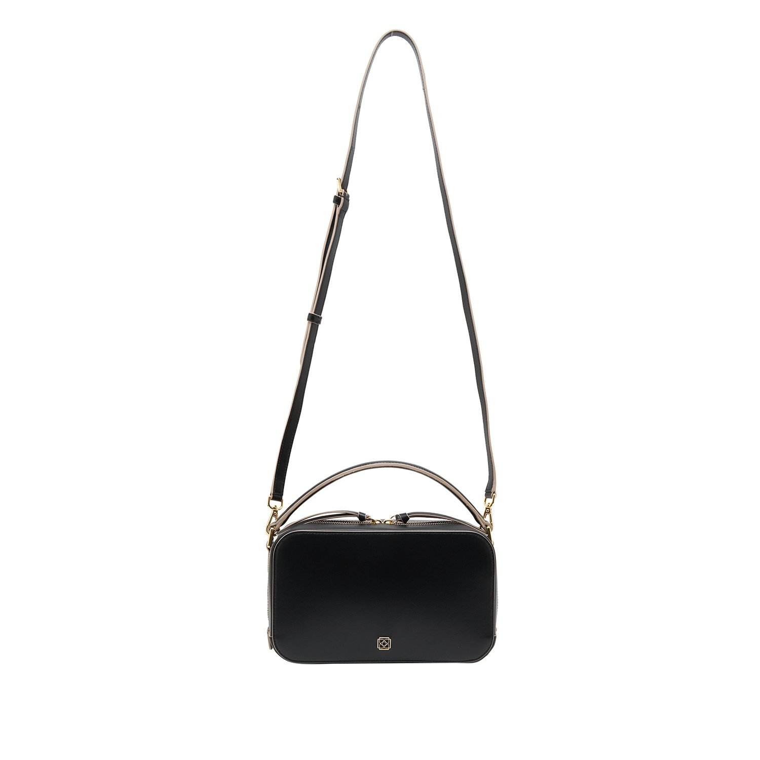 Kadın çantasının içinde fermuarlı cep, kartlık ve omuz askısı da mevcuttur.