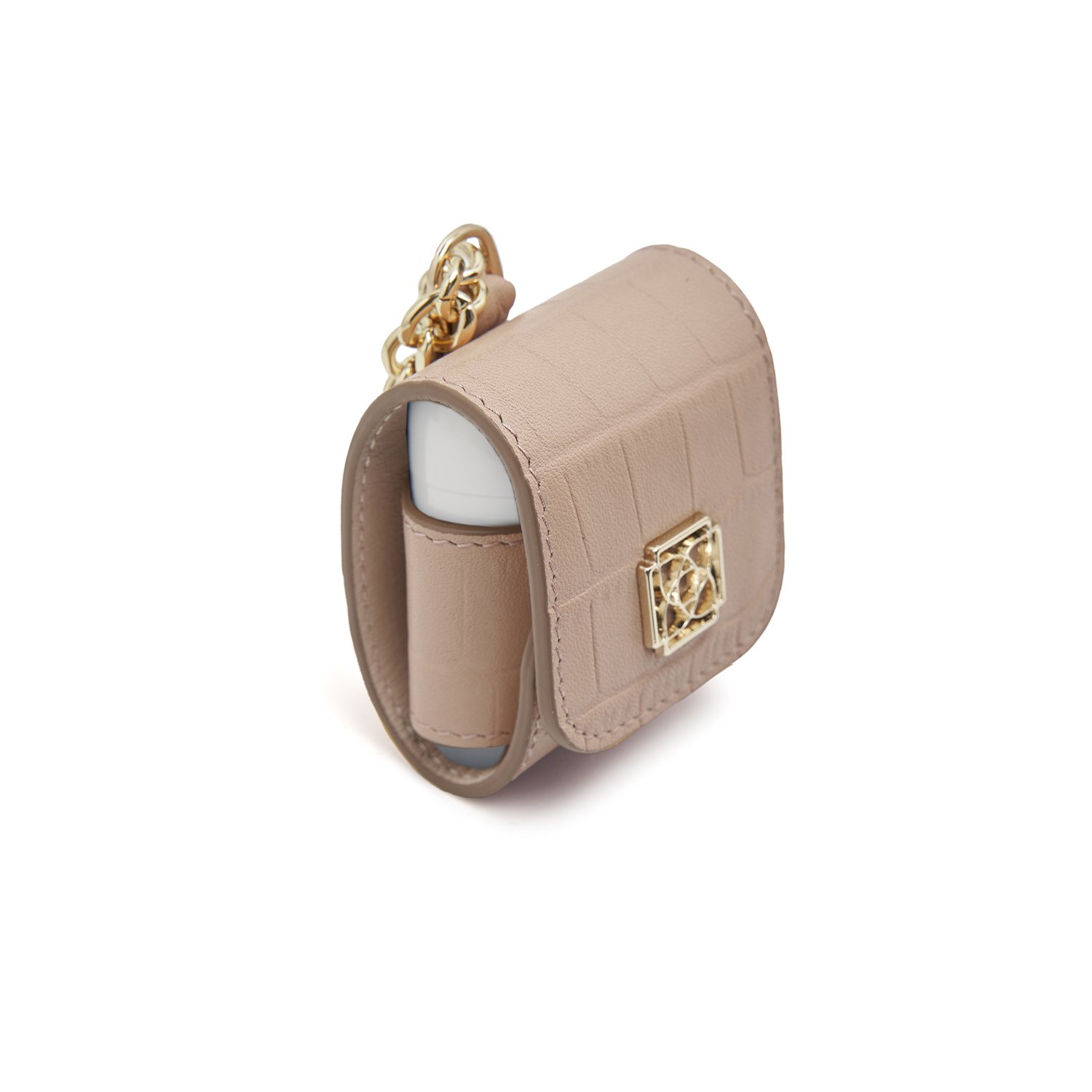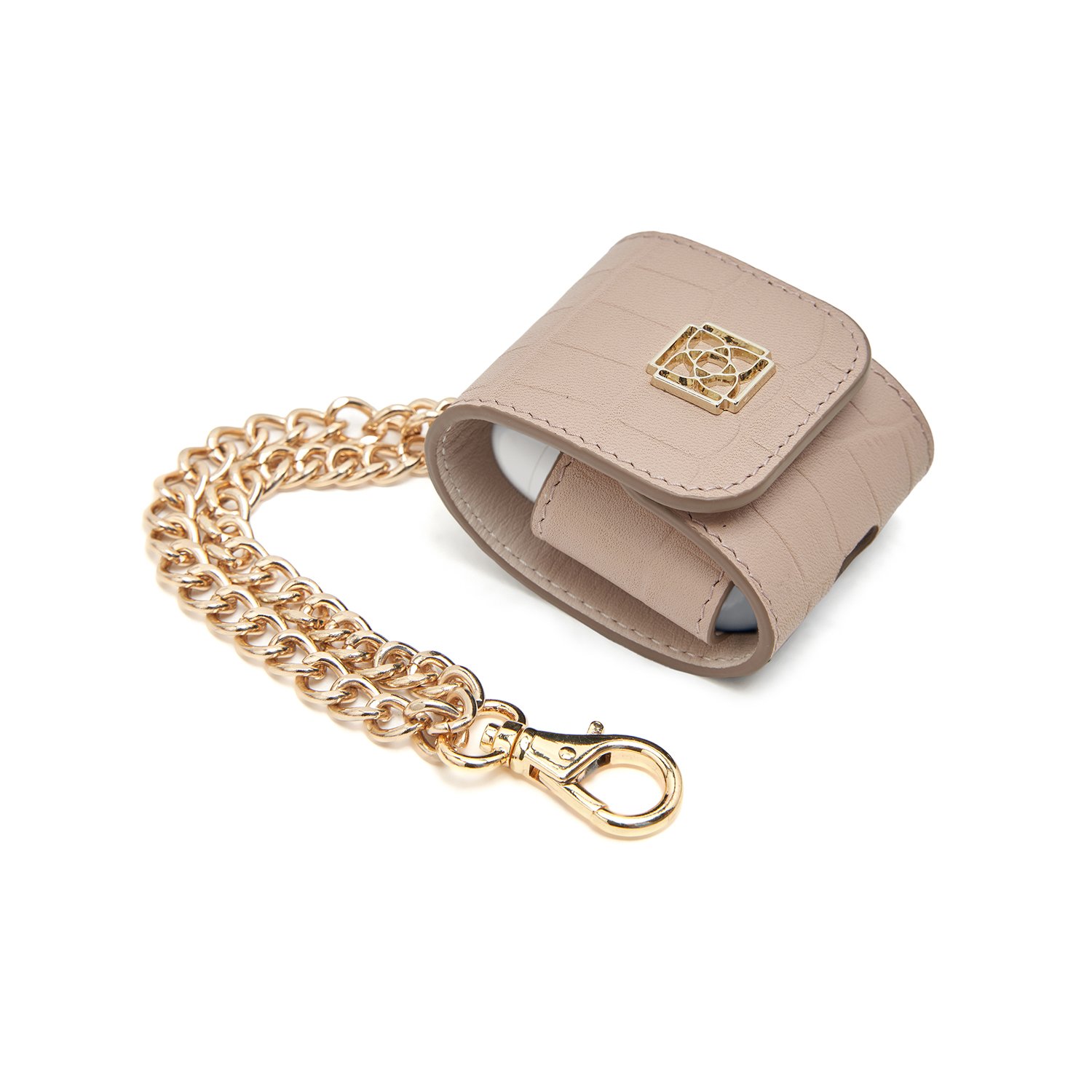 Bej Zincir Detaylı Deri Airpods Kılıfı