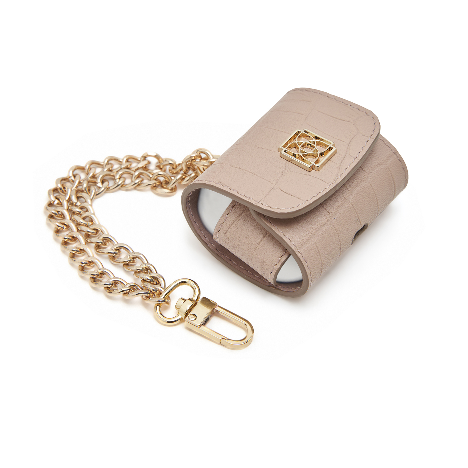 Bej Zincir Detaylı Deri Airpods Pro Kılıfı
