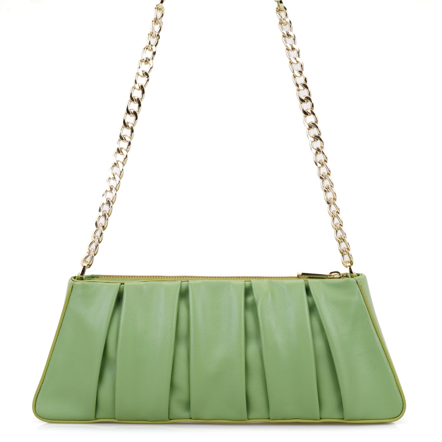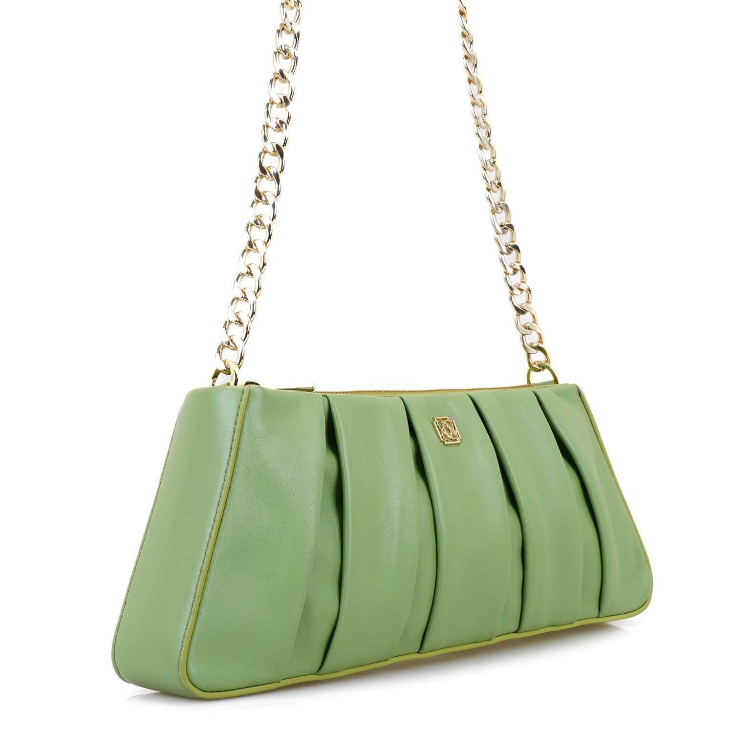 Geranie Yeşil Kadın Zincir Detaylı Deri Omuz Çantası