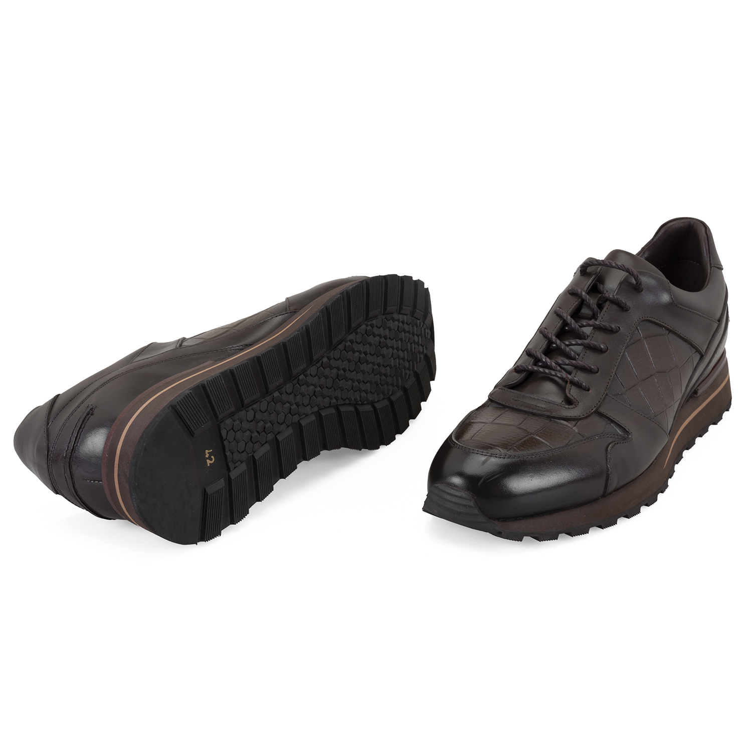 %60 deri,%40 kroko baskılı deri, deri iç atbanlı, deri astarlı, eva tabanlı, bağcıklı erkek spor ayakkabı.