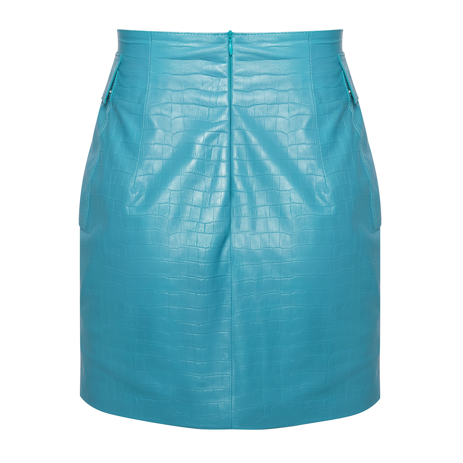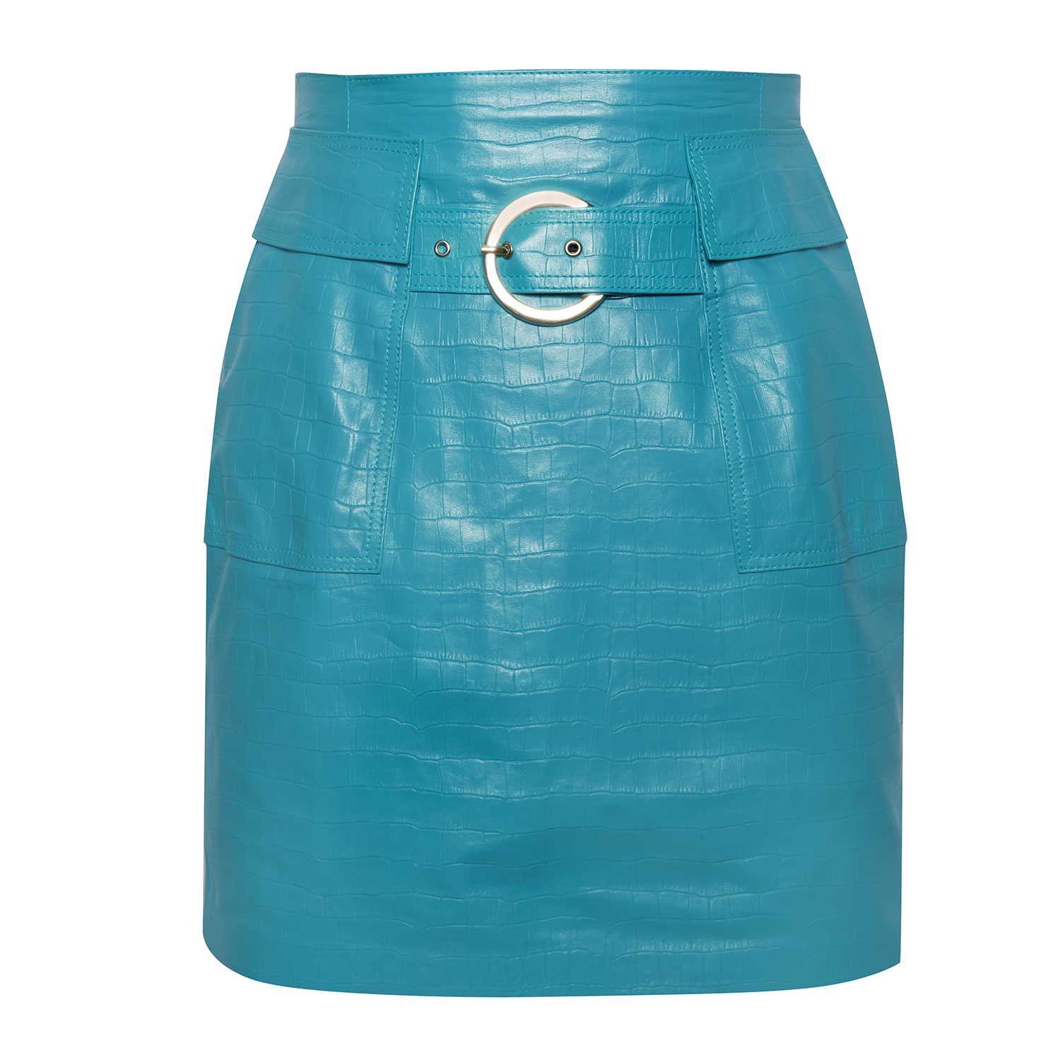 Gulielma Turkuaz Kadın Kroko Baskılı Deri Mini Etek