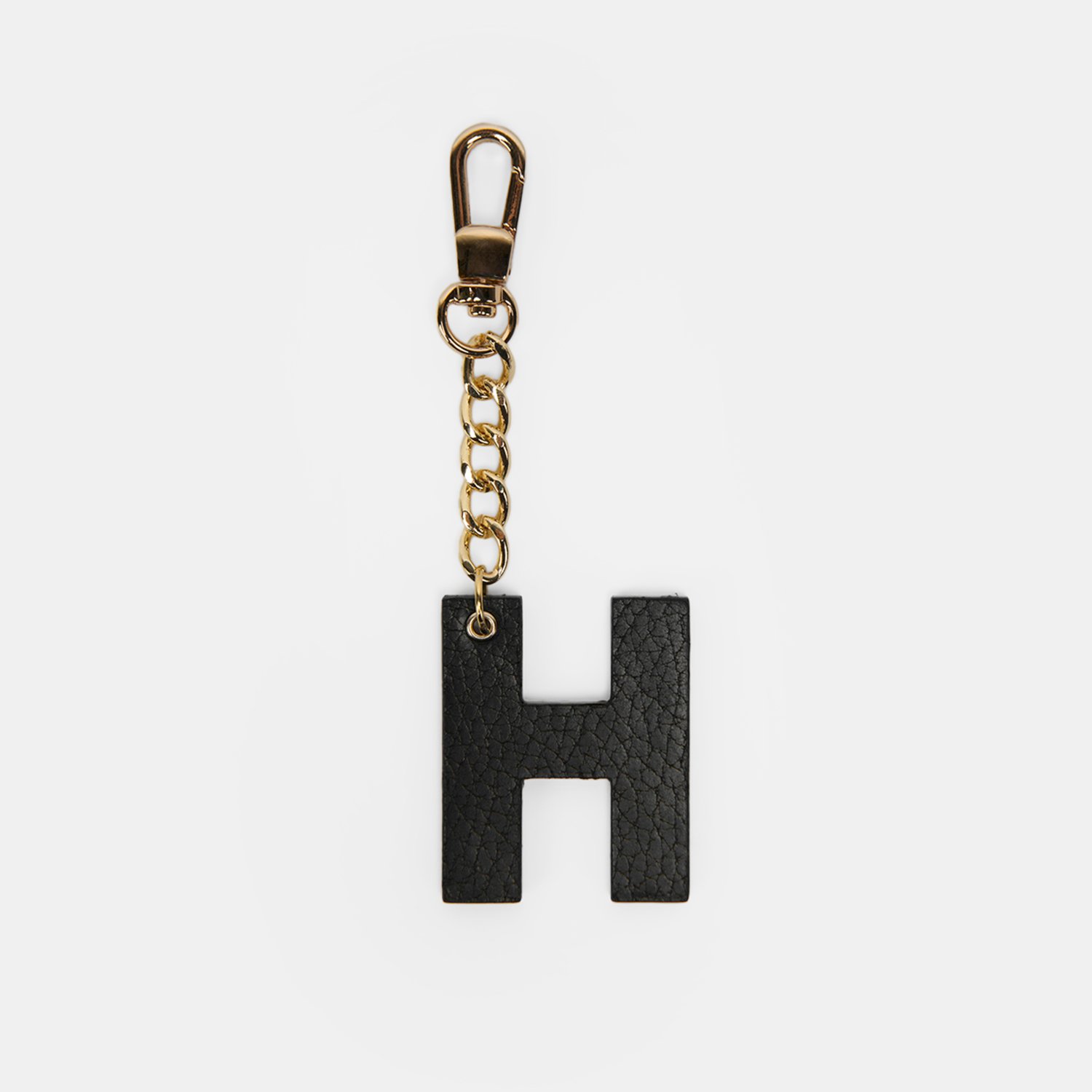 H Harfi Siyah Hakiki Deri Charm Anahtarlık