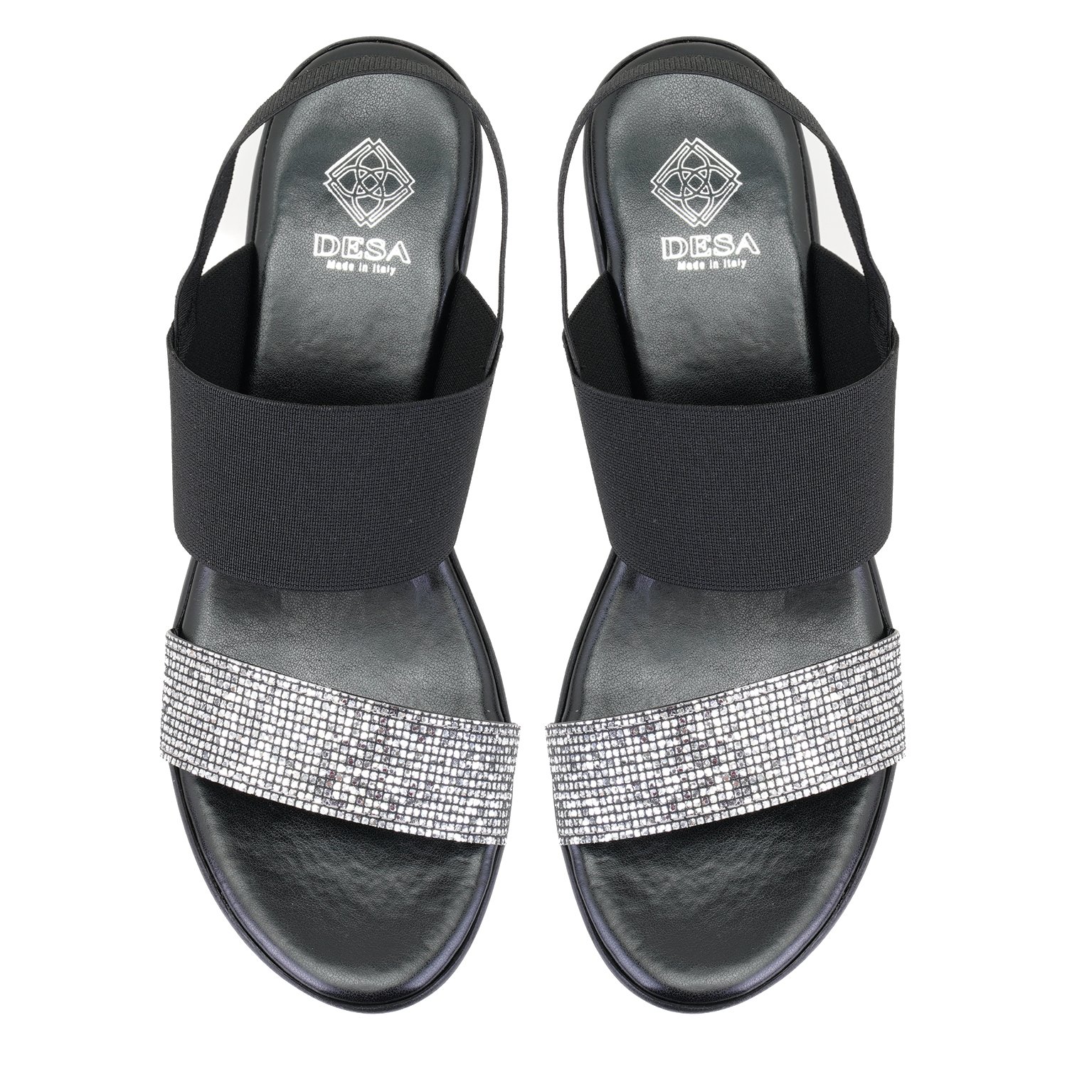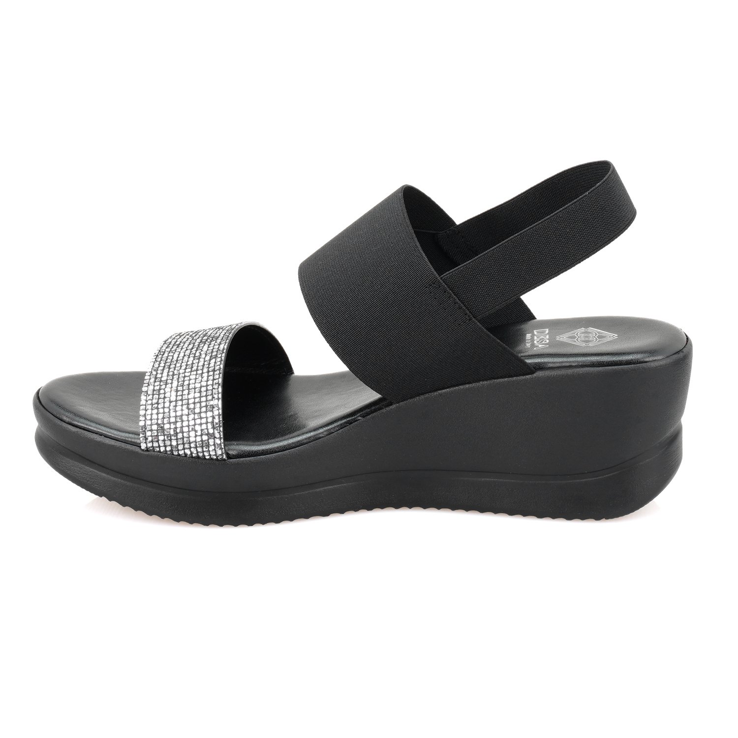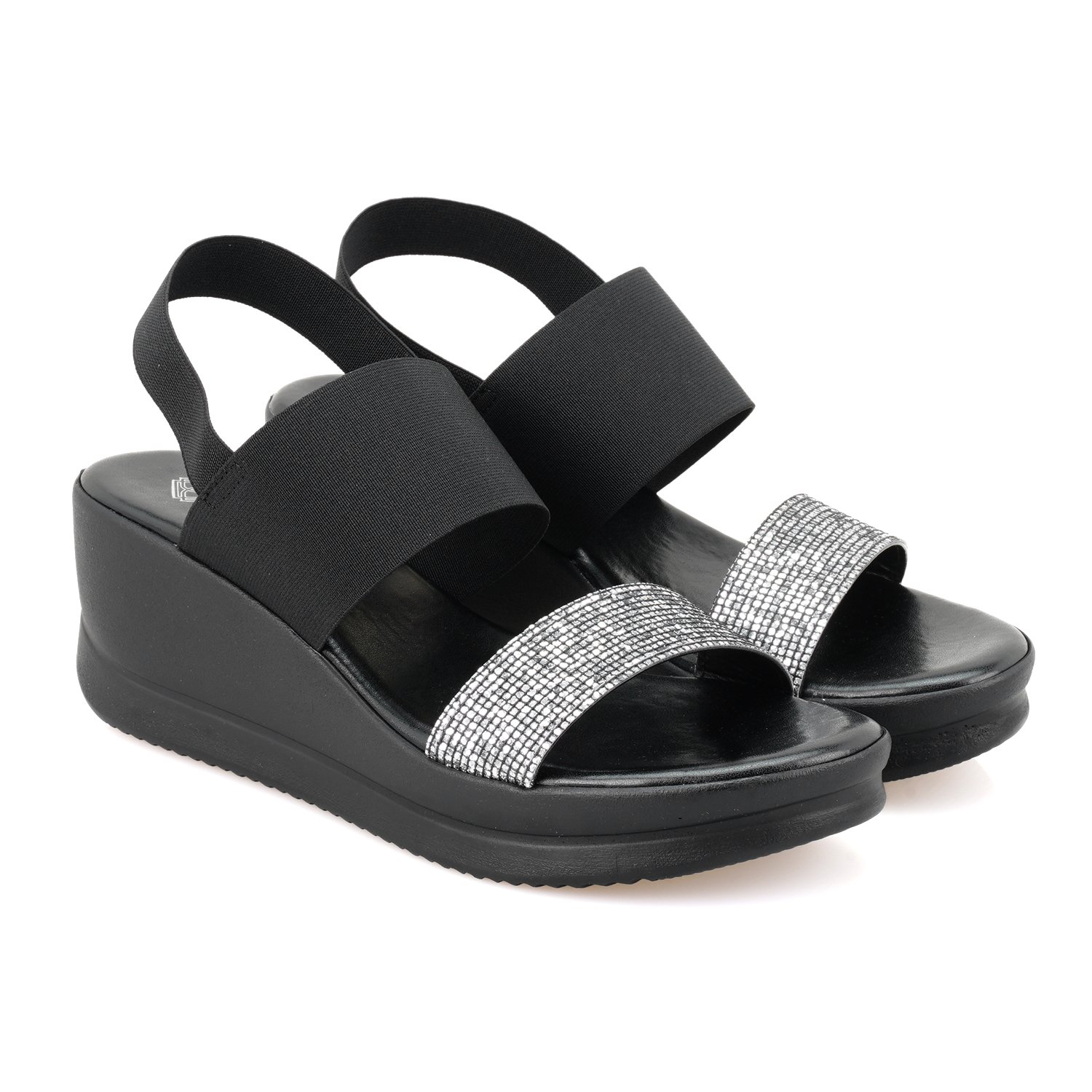Pu iç astarlı, deri iç tabanlı, lastik detaylı, pu tabanlı, kadın dolgu topuk sandalet.