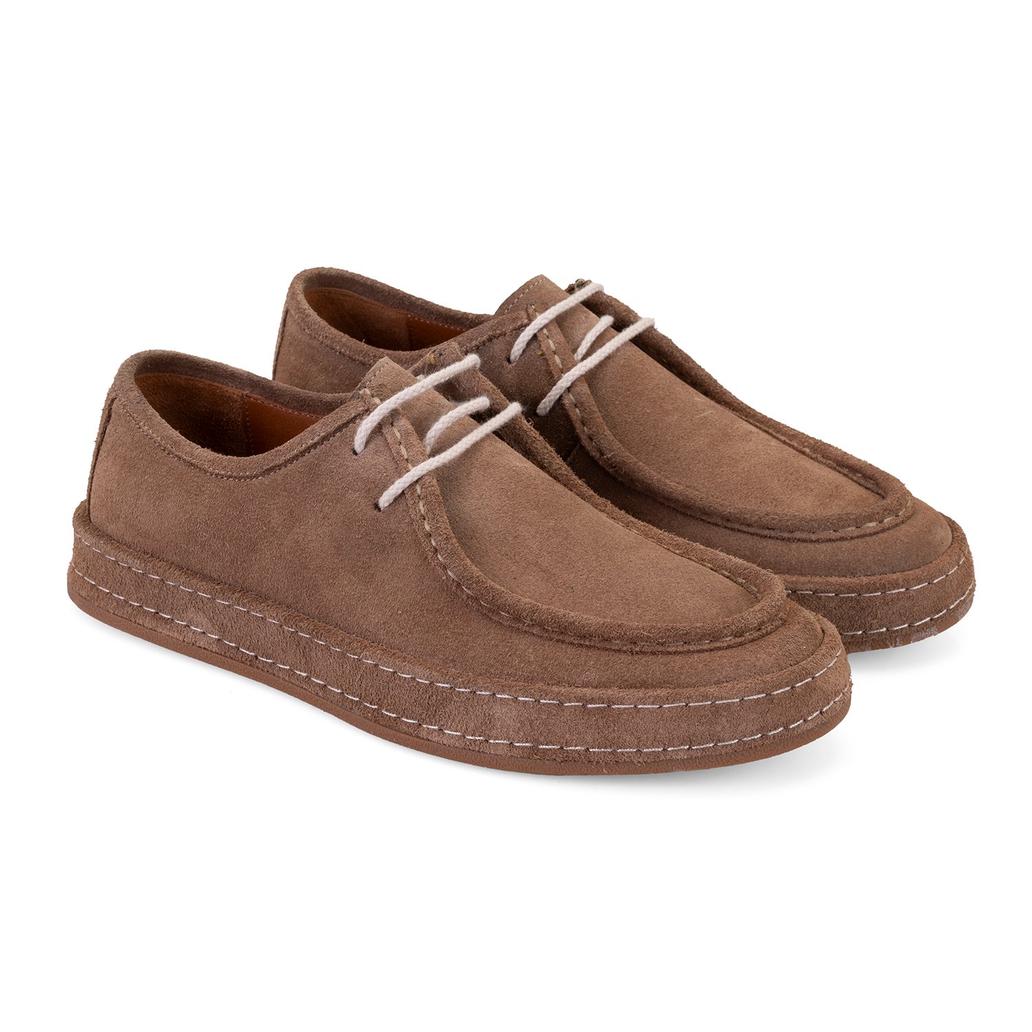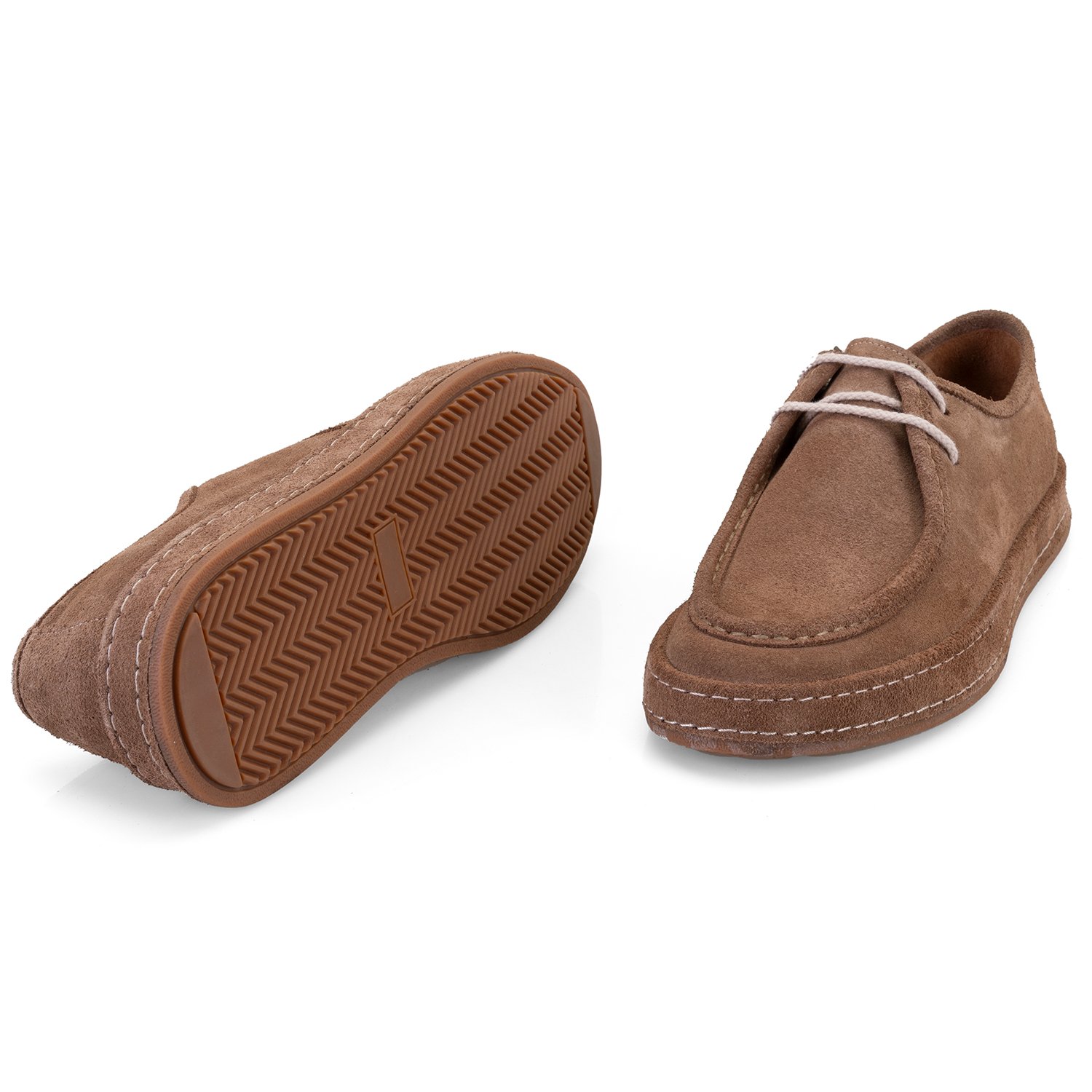 %100 süet deri, deri iç tabanlı, deri astarlı, süet deri sargılı kauçuk tabanlı, erkek bağcıklı sisley ayakkabı.